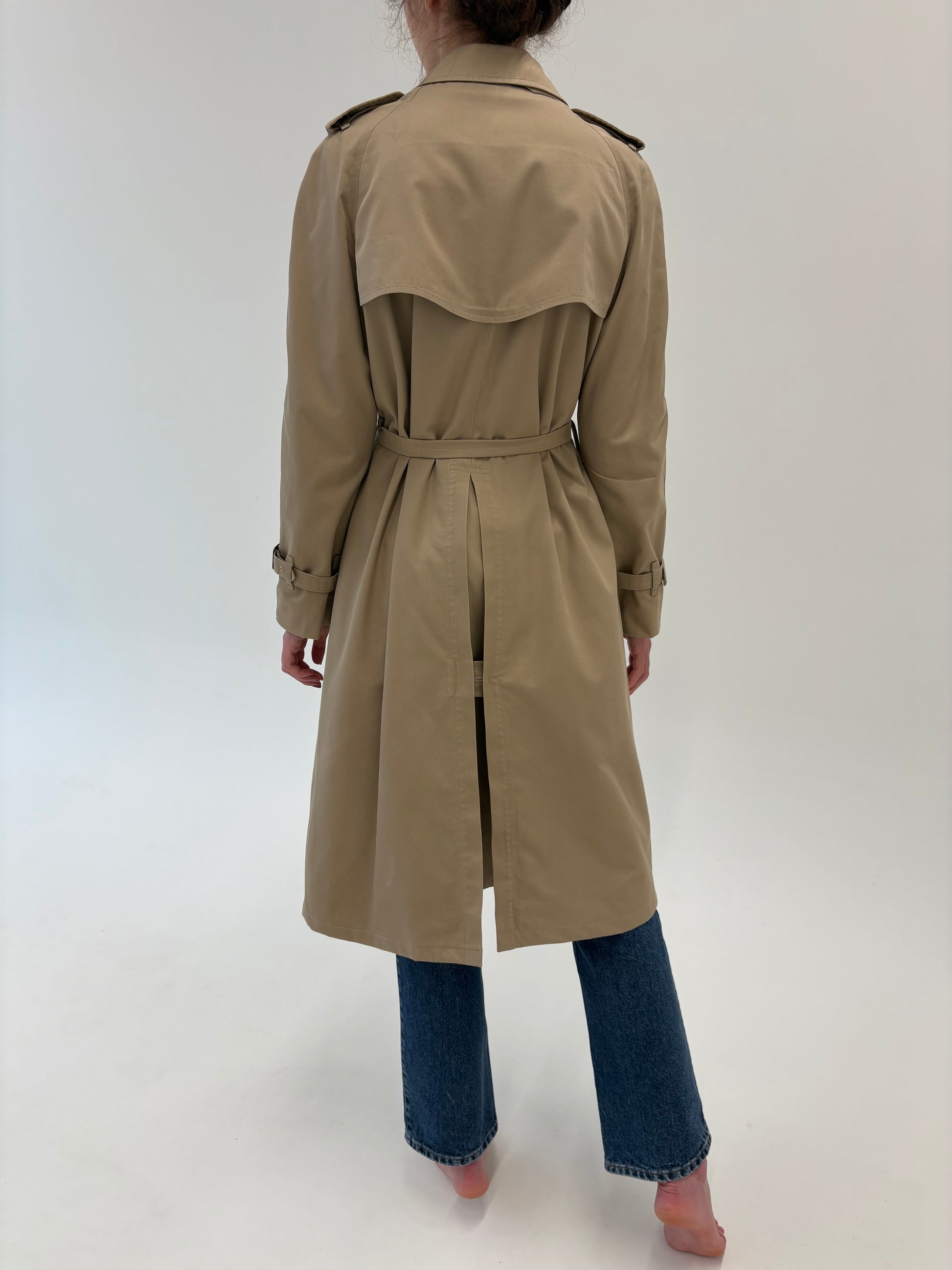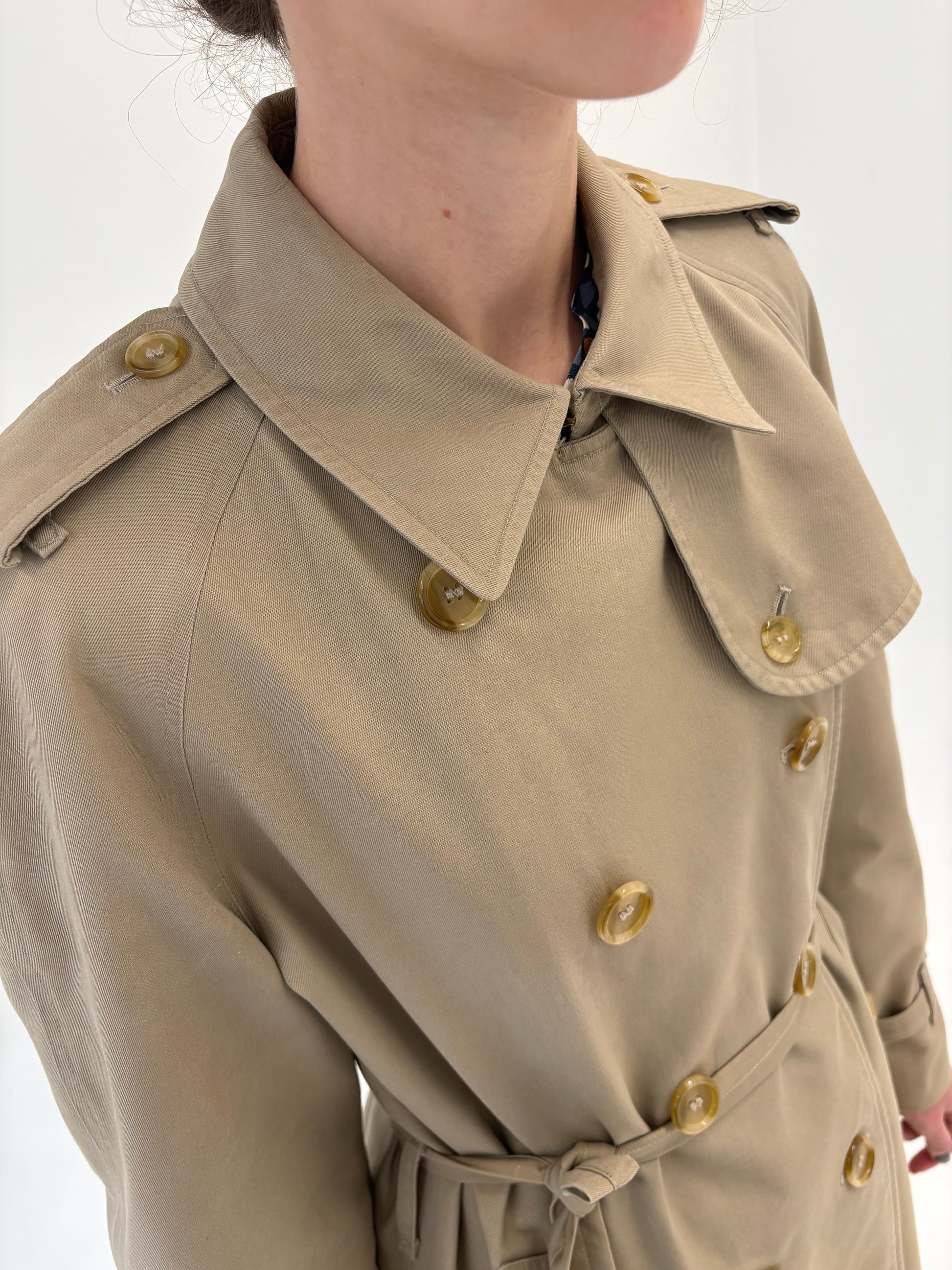 Trench vintage Burberry camel cu talie marcată reglabilă din gabardină