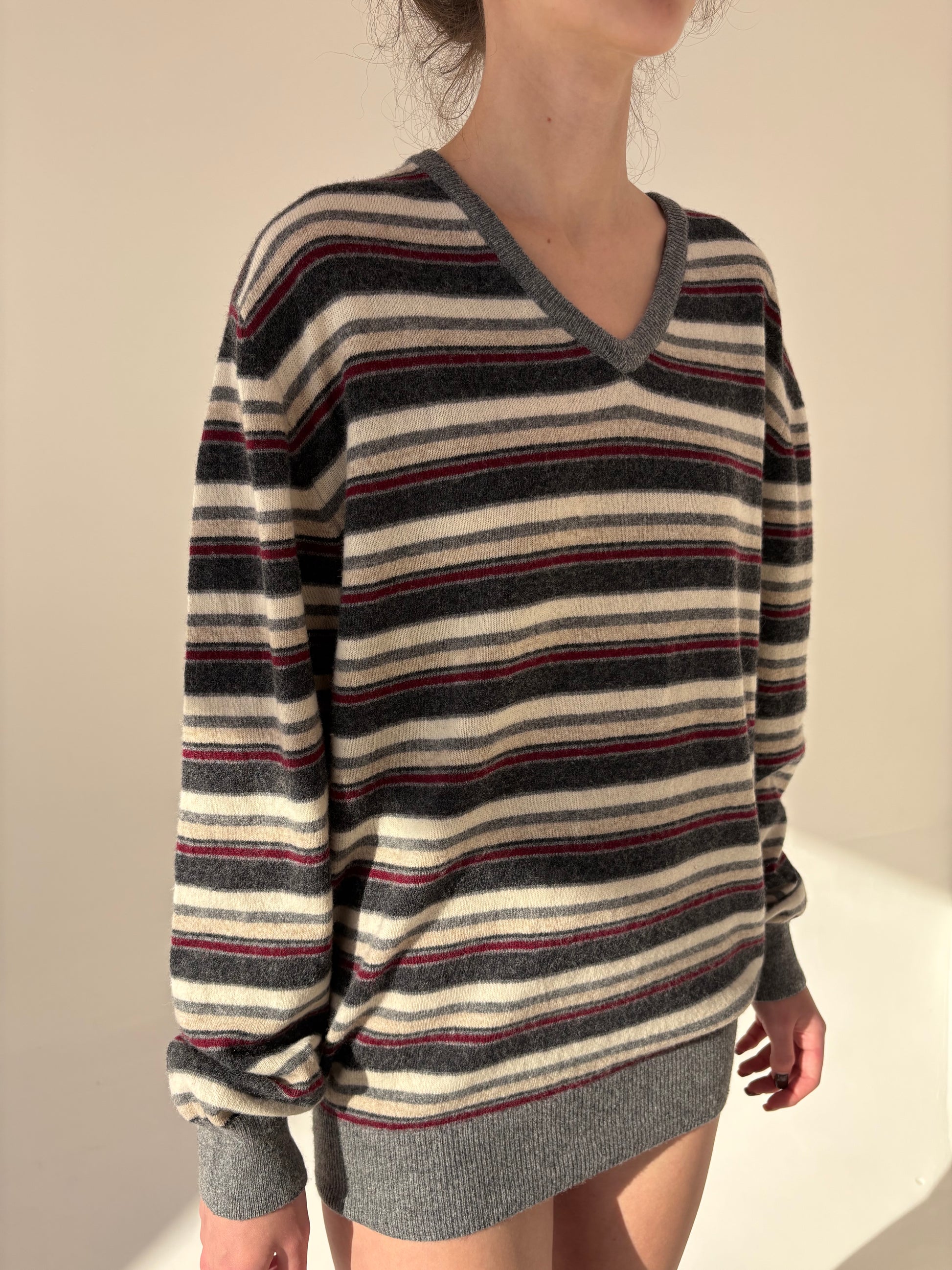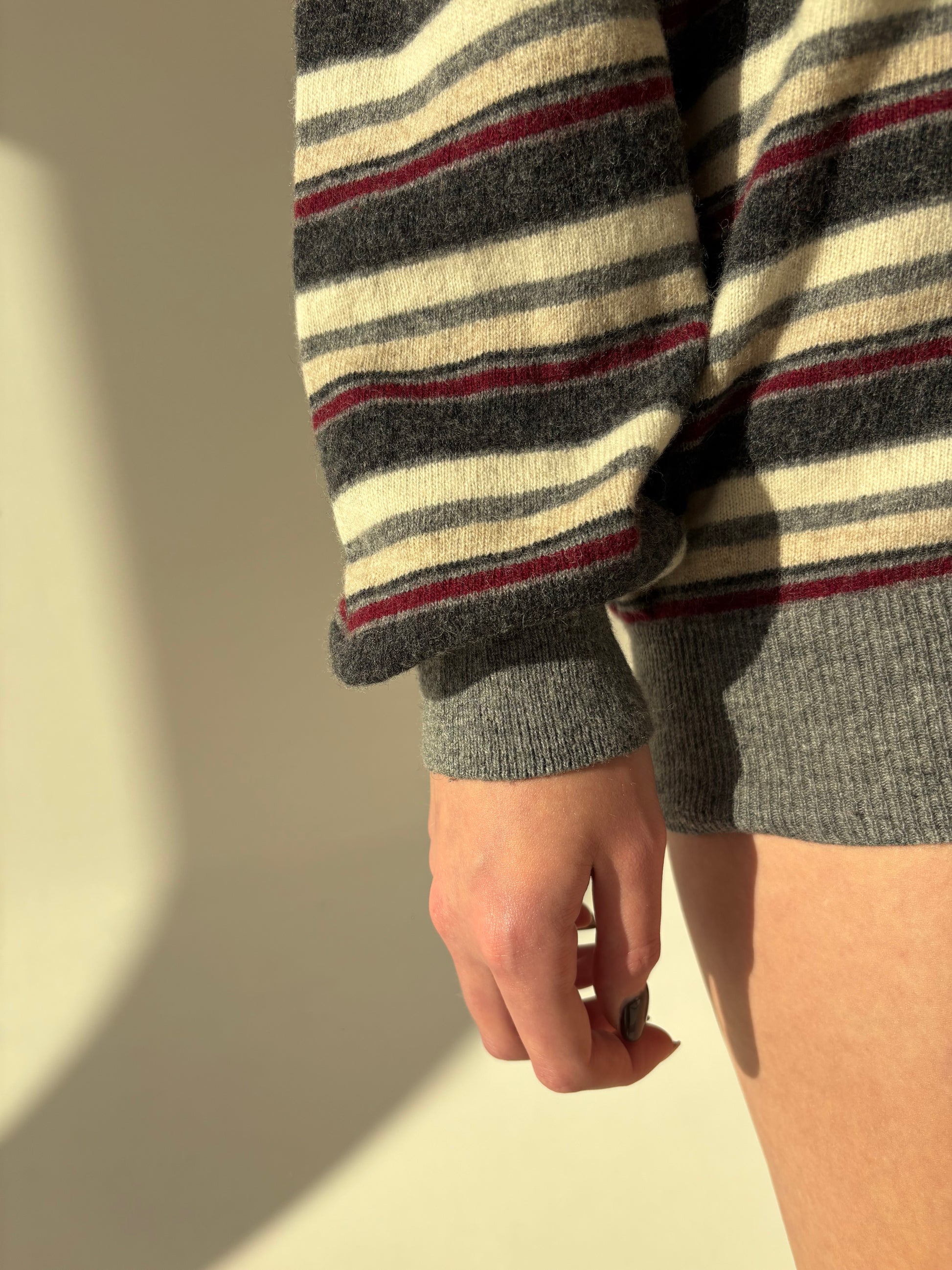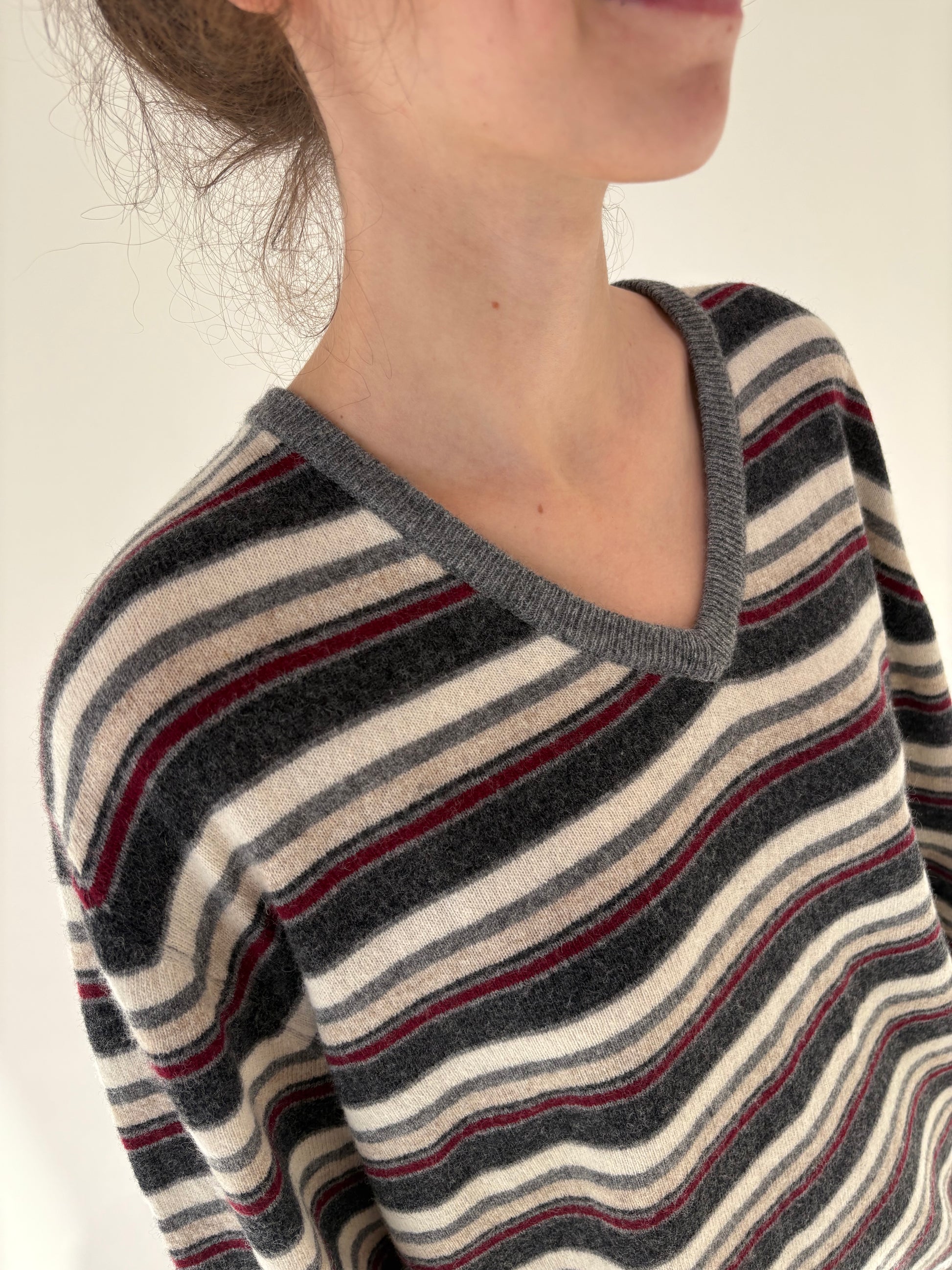 Pulover în anchior 80% Lana is extrafina cu dungi burgundy
