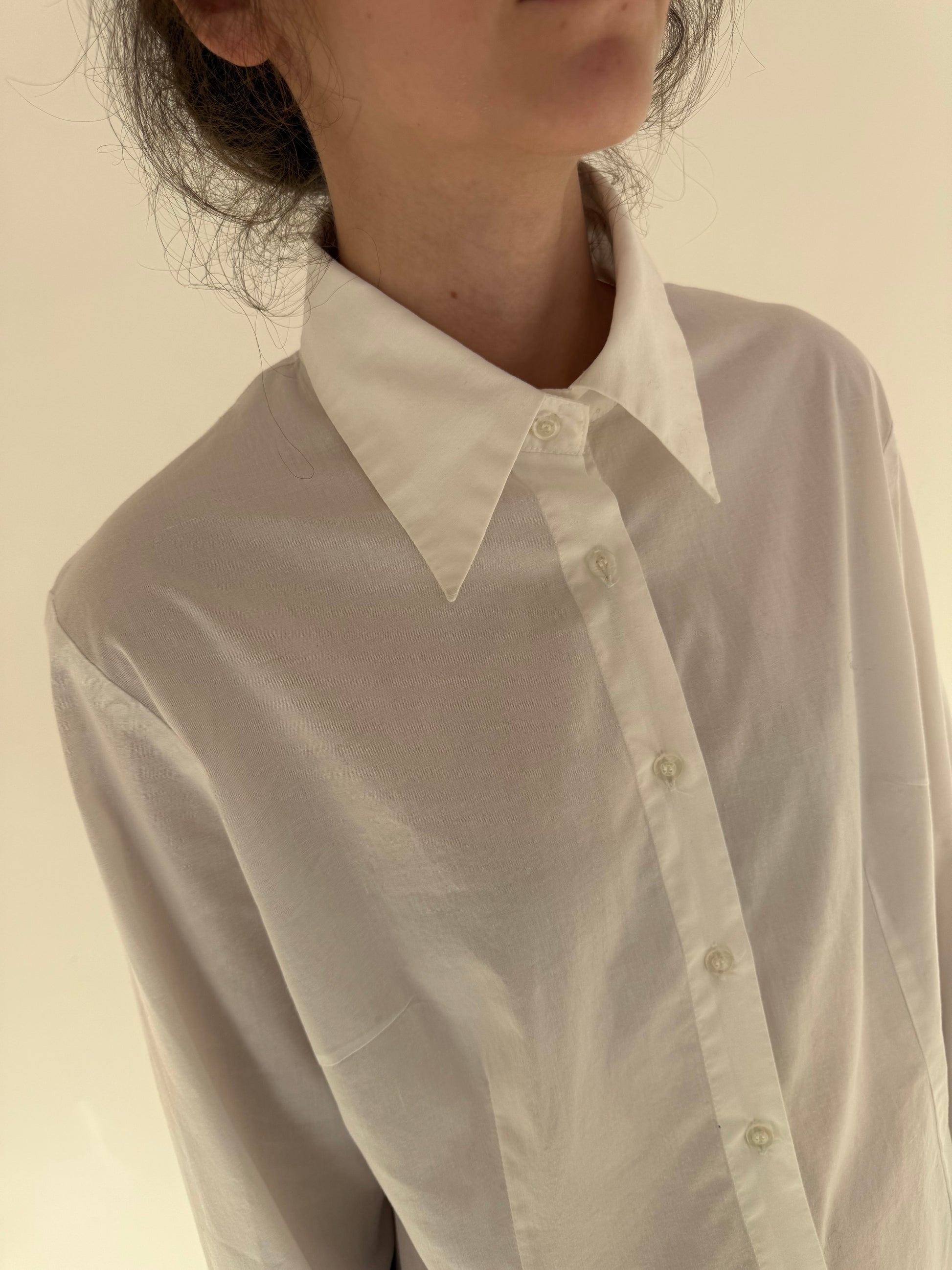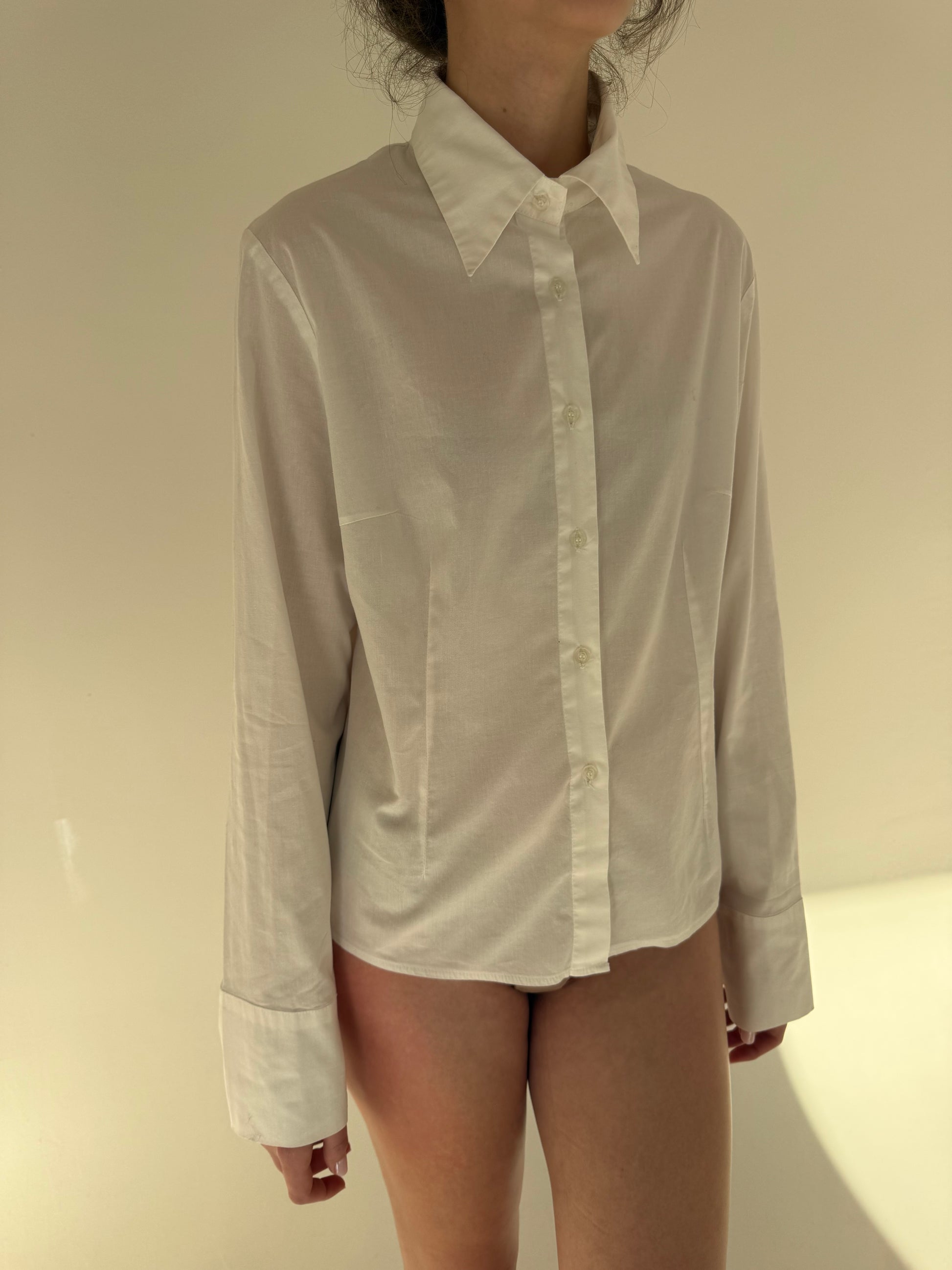 Cămașa premium din poplin alb ușor strech de bumbac în croi ușor cambrat