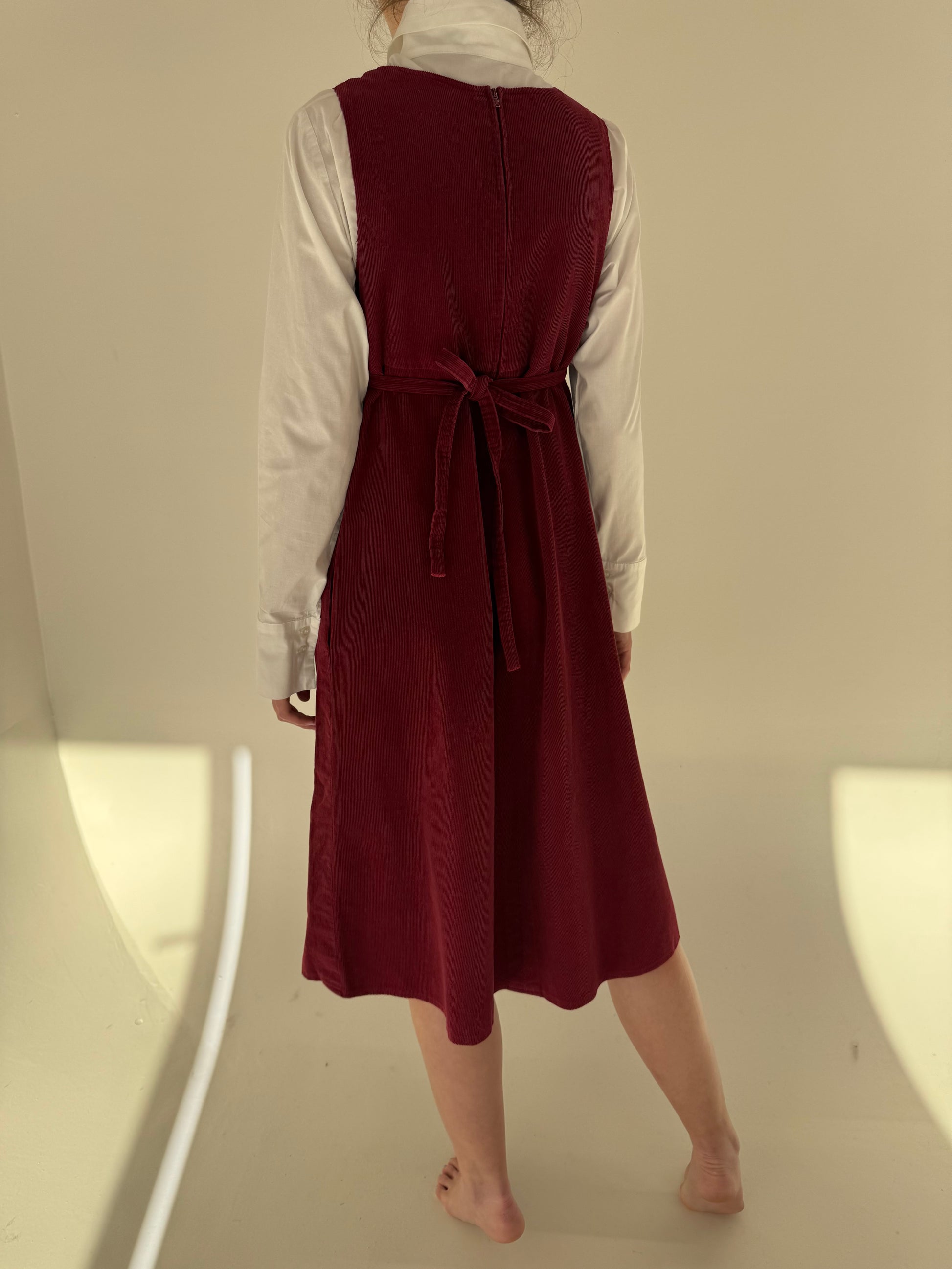 Rochie dark red din corduroy cu talie ultra înaltă reglabilă
