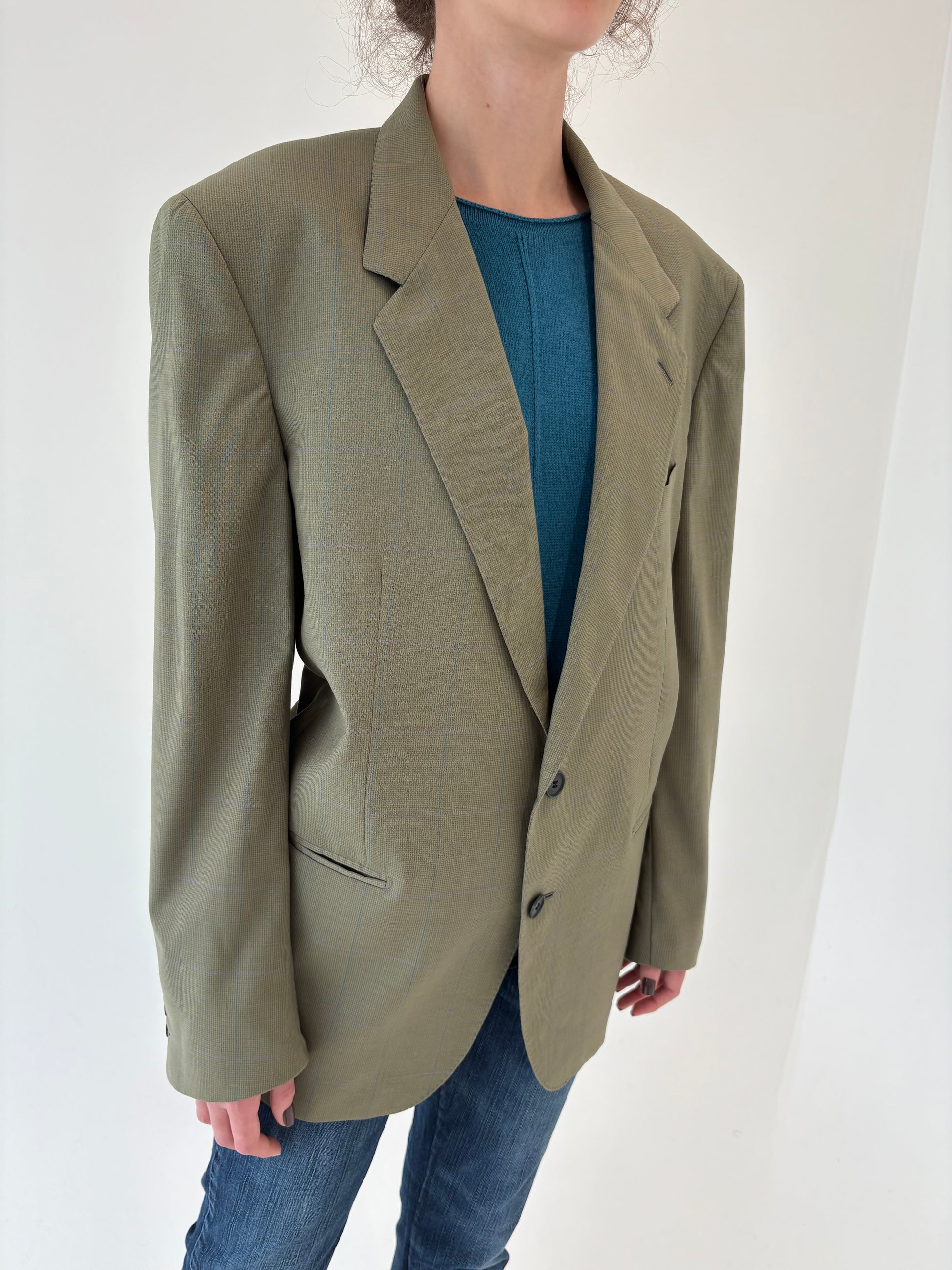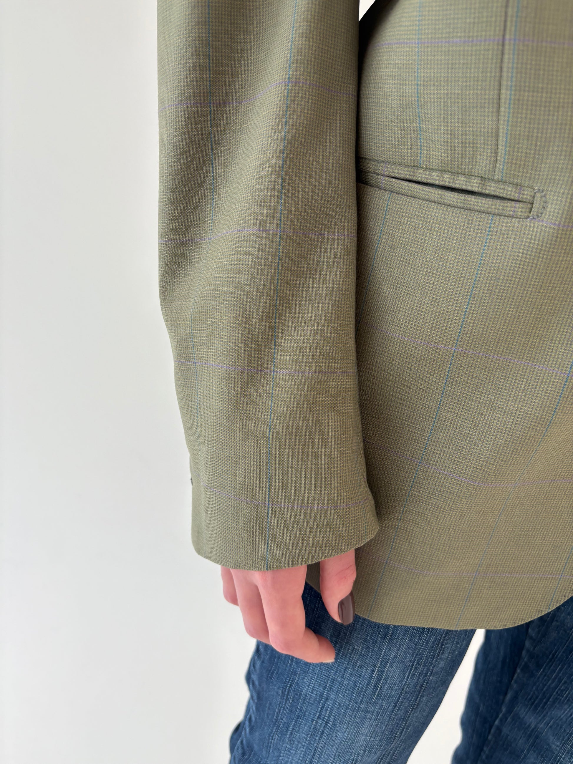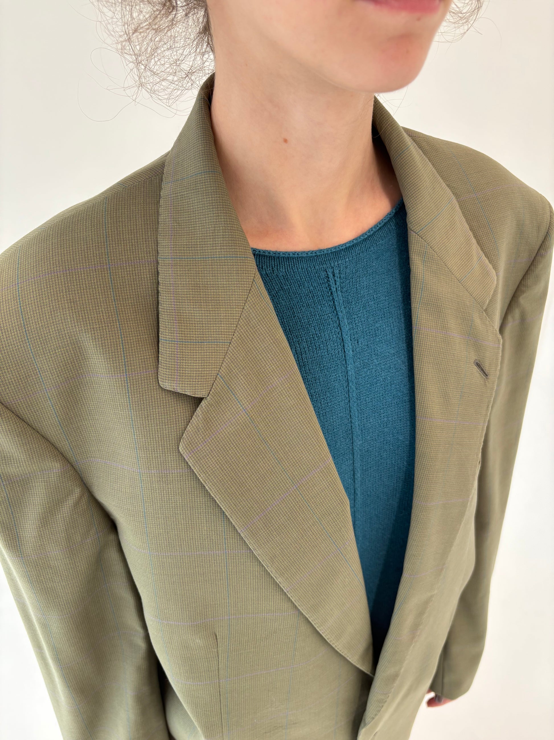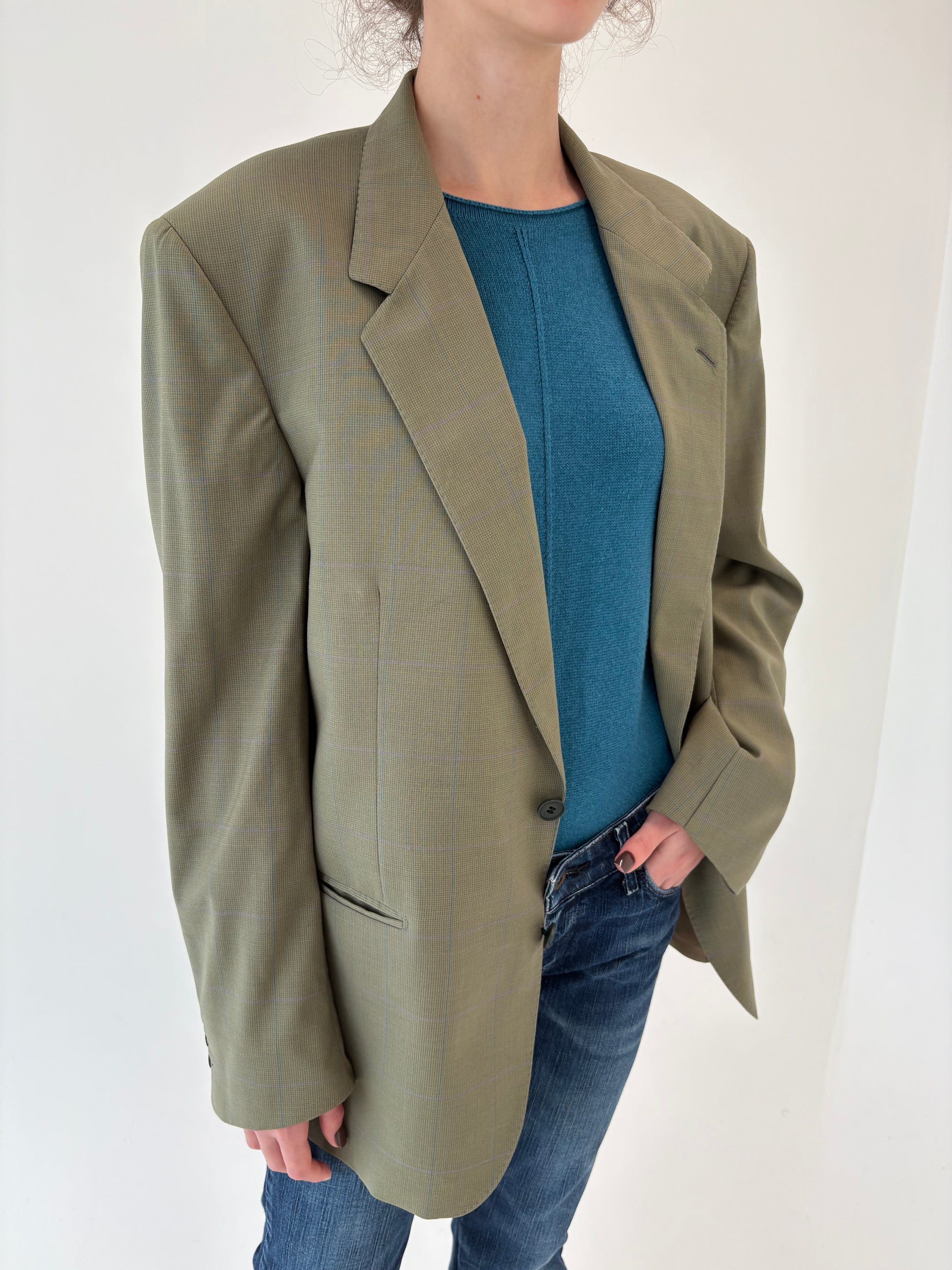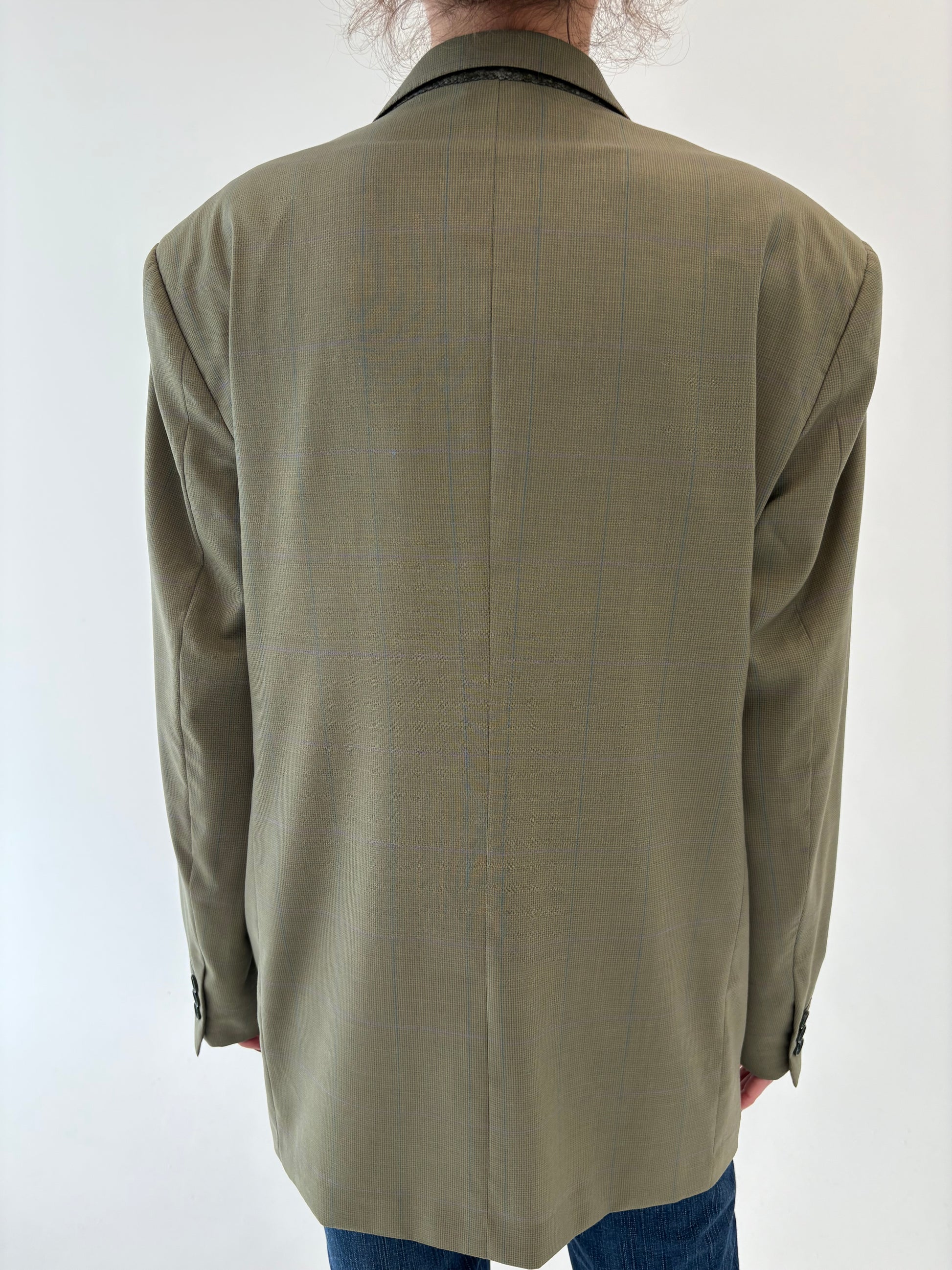 Sacou italian kaki din lana pura extrafina certificată în croi actual
