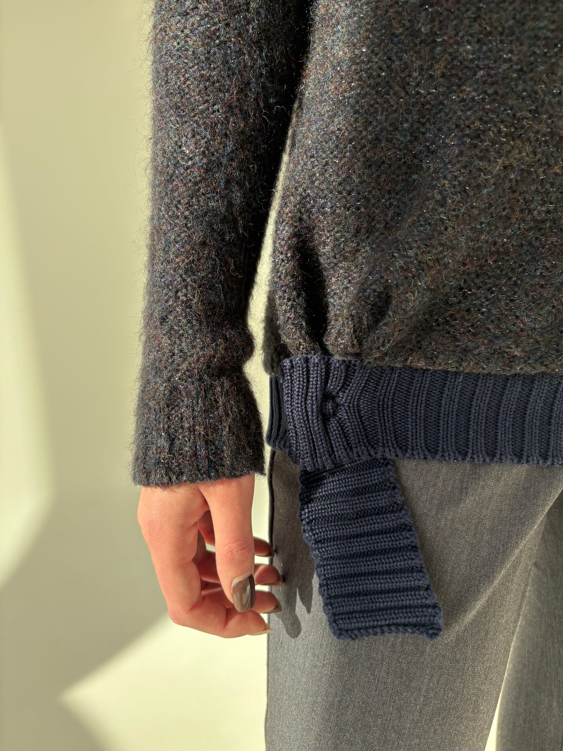Pulover tall în croi chic modern ușor deconstruit din baby mohair