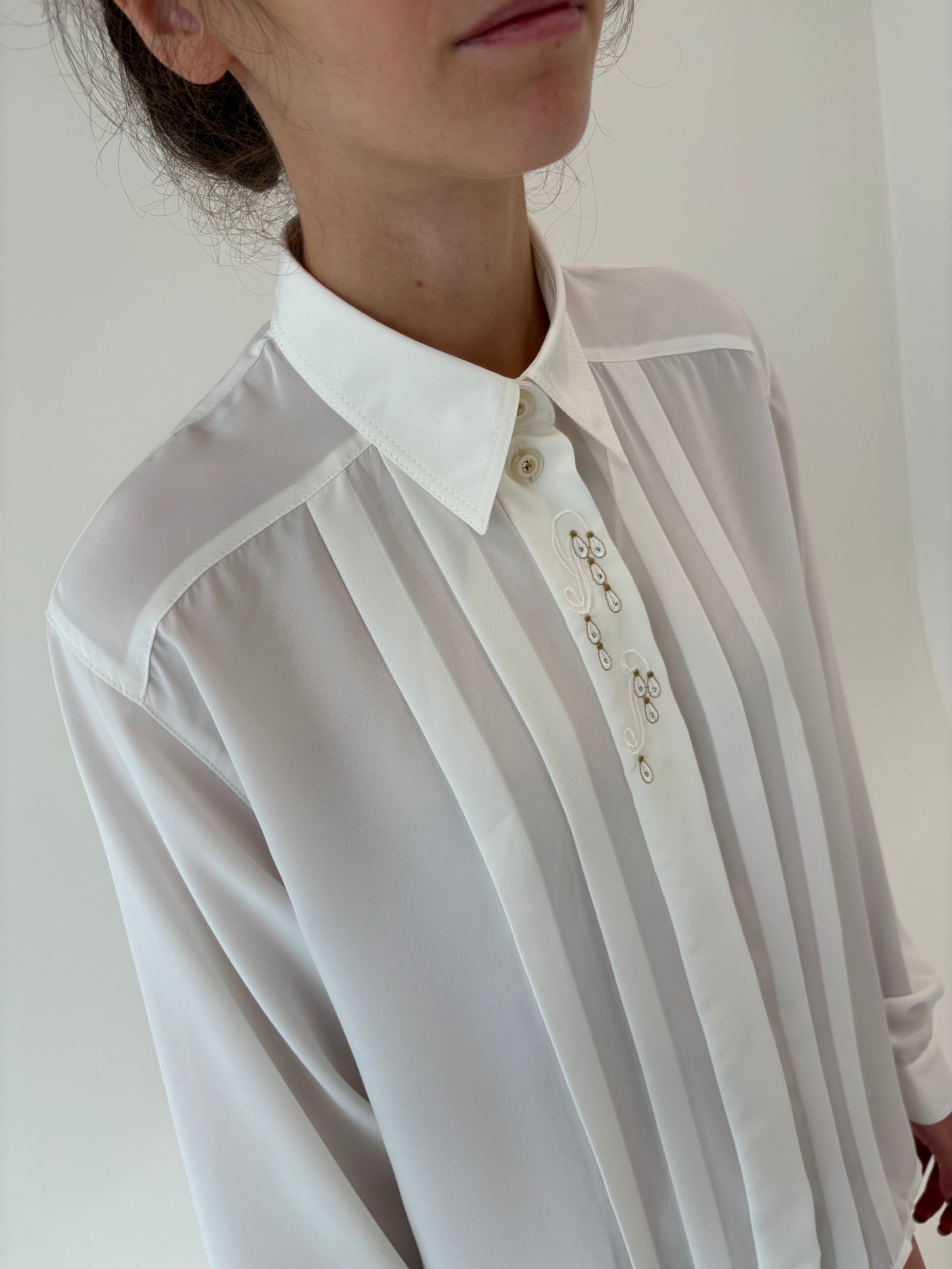 Cămașa vintage cu pliseuri decorative și broderie delicată