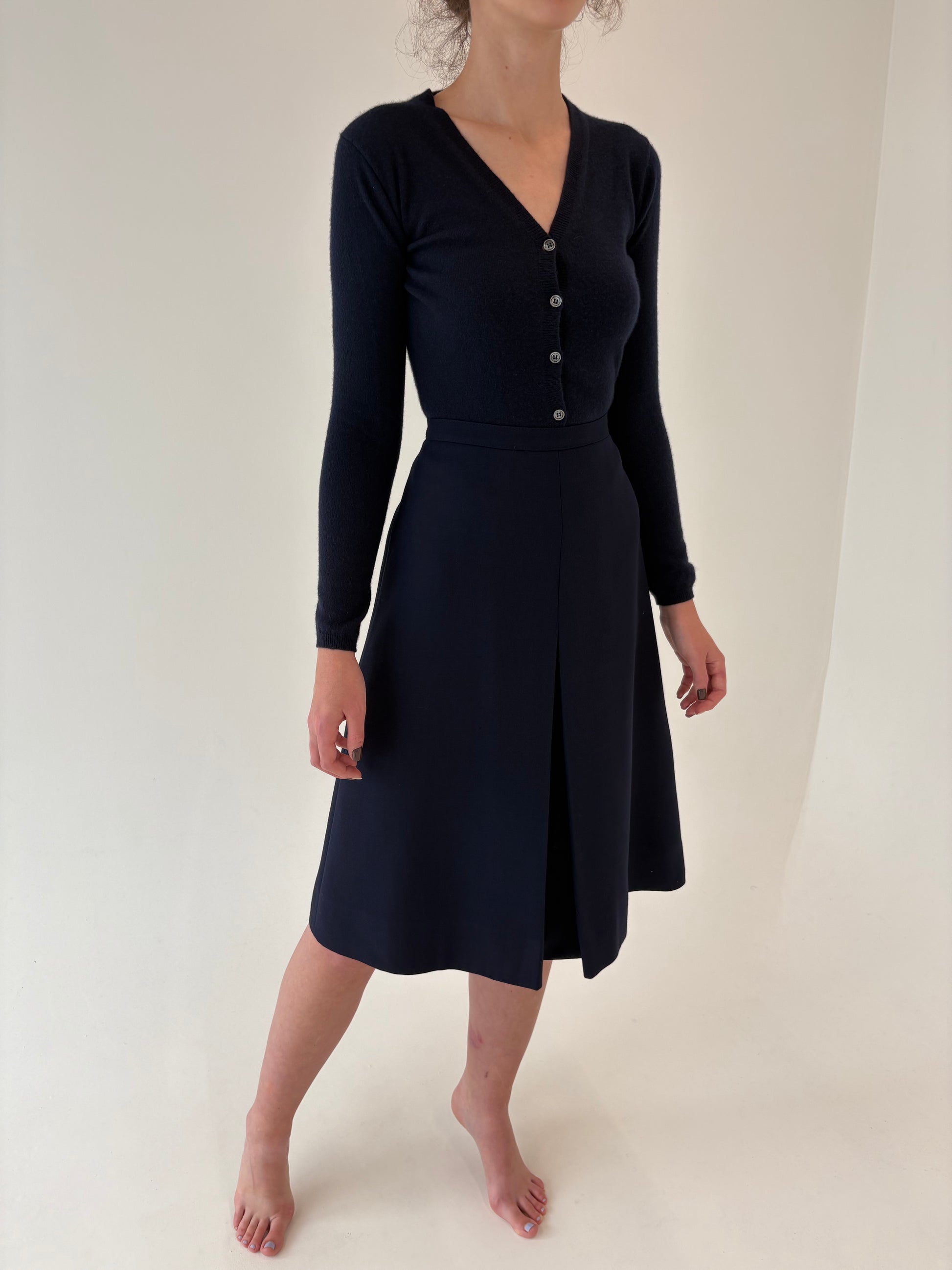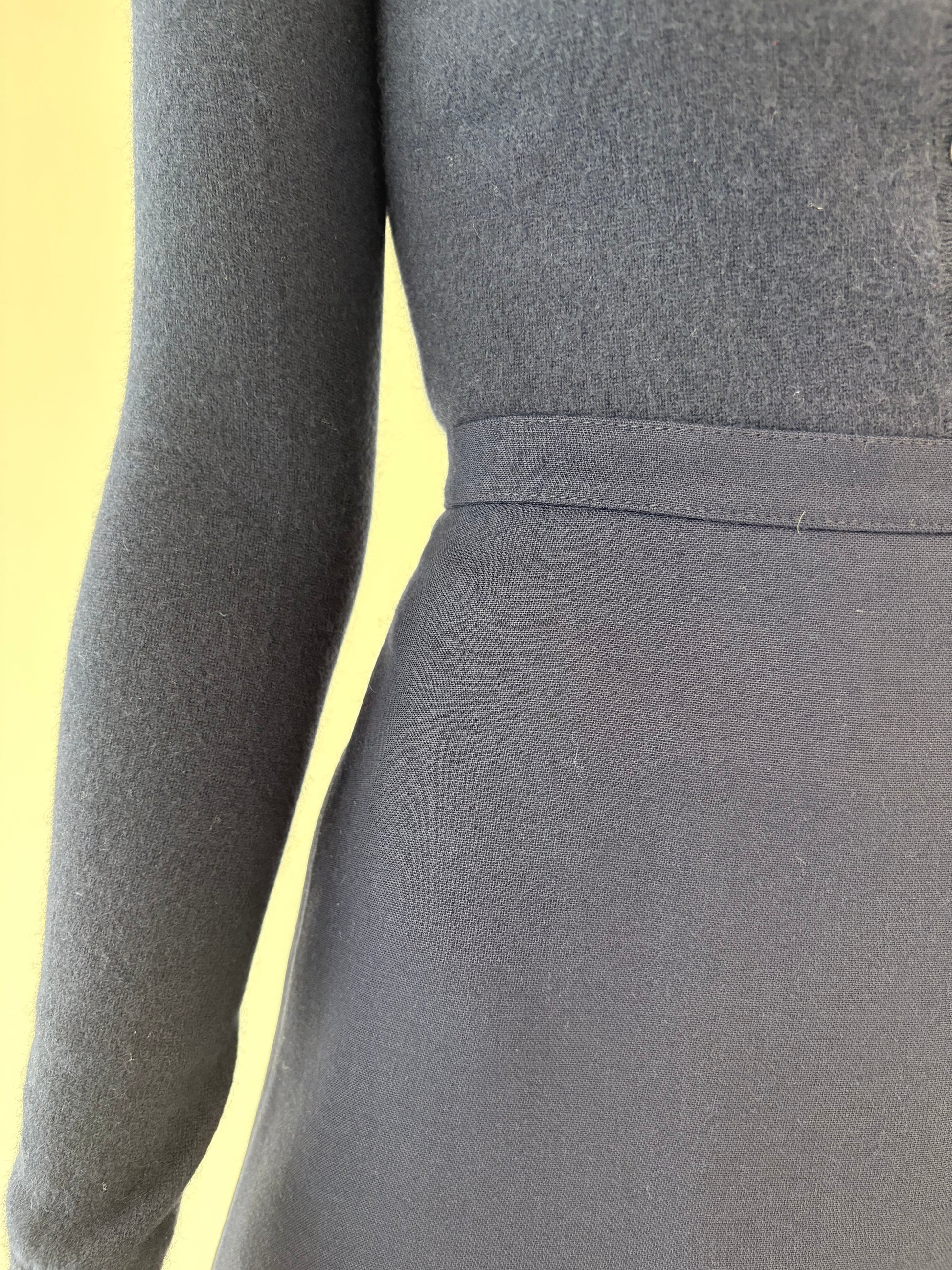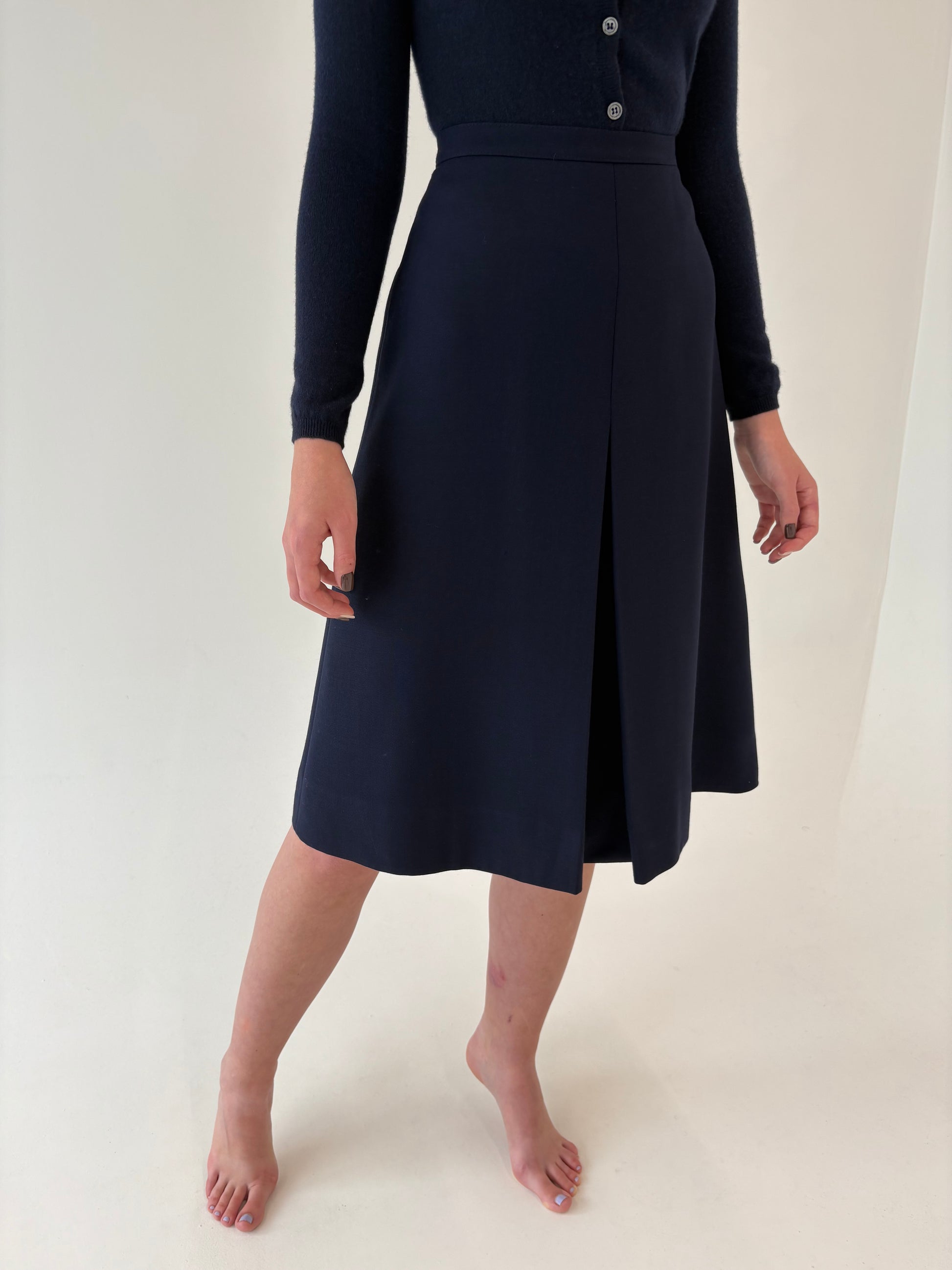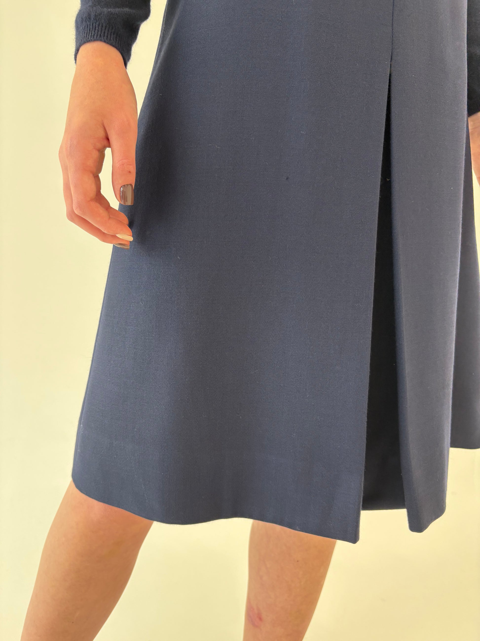 Fustă Navy din lana extrafina cu talie ultra înaltă marcată A-line