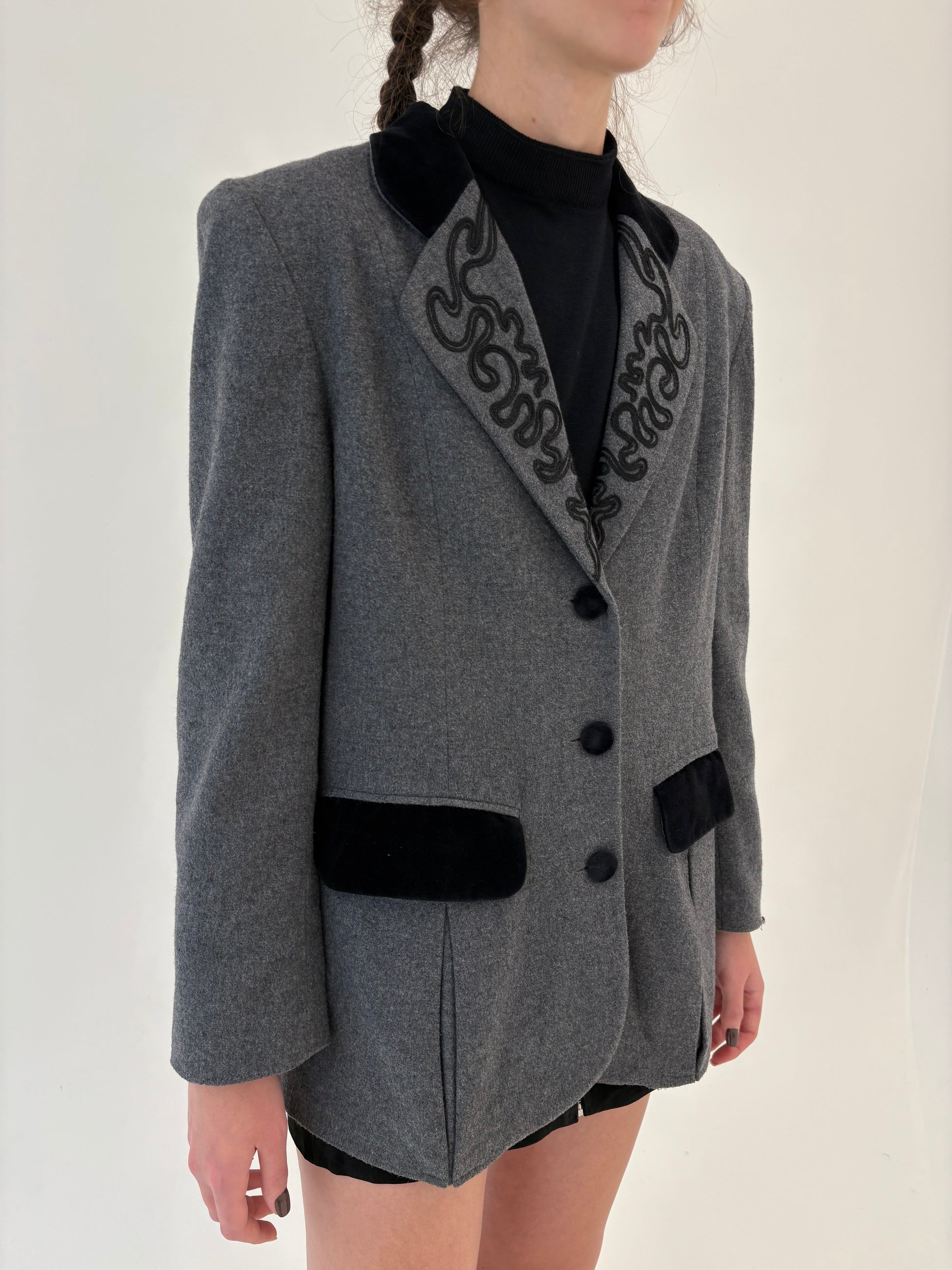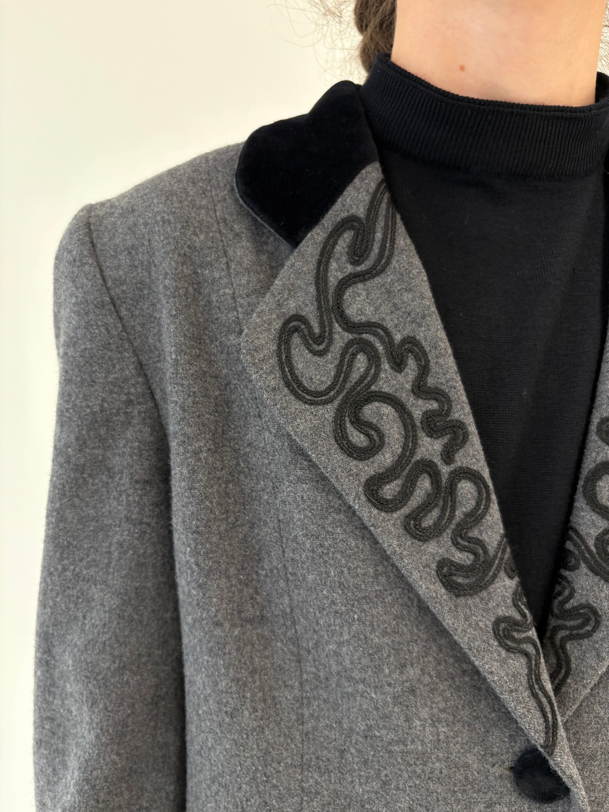 Sacou vintage cu din lana plină extrafina cu inserții de catifea neagră