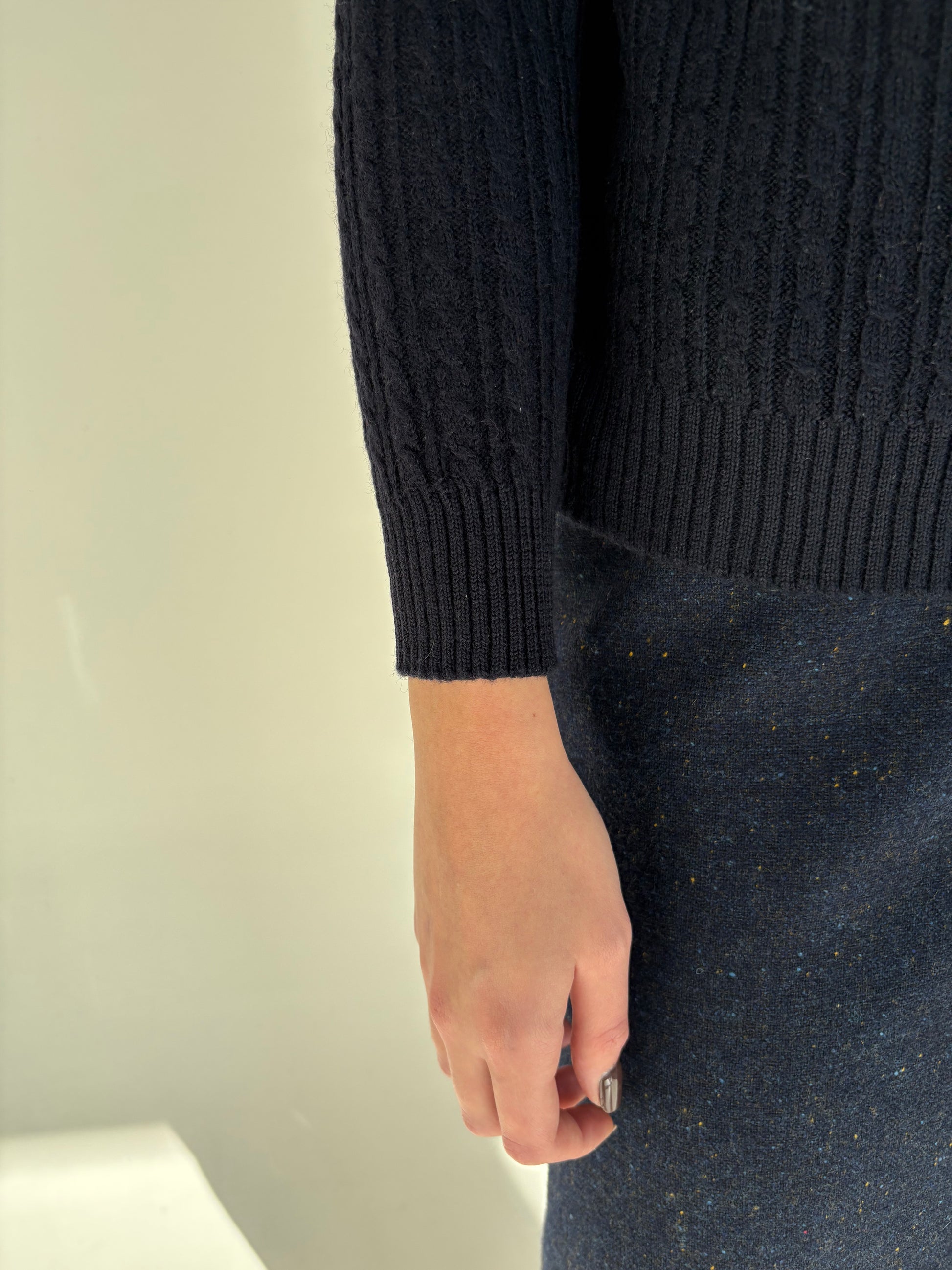 Cardigan cu torsade Navy blue din lana extrafina plină de gramaj mare