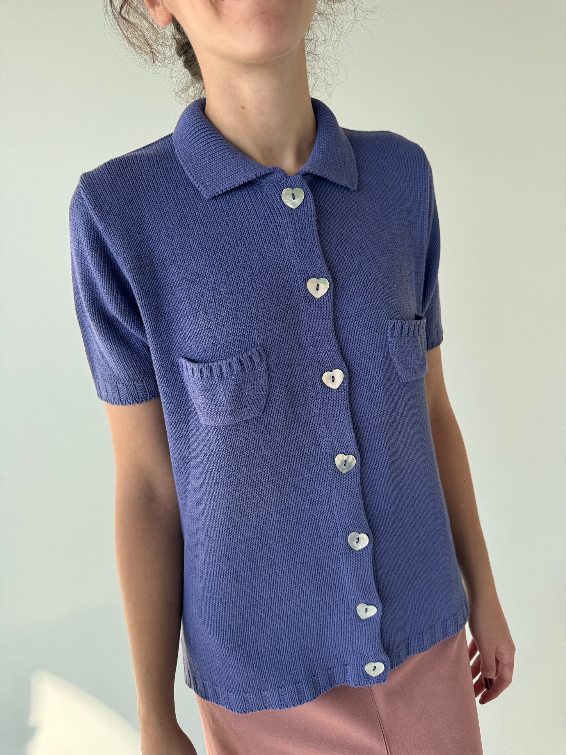 Top italian polo lavandă din vascoza cu mătase naturală