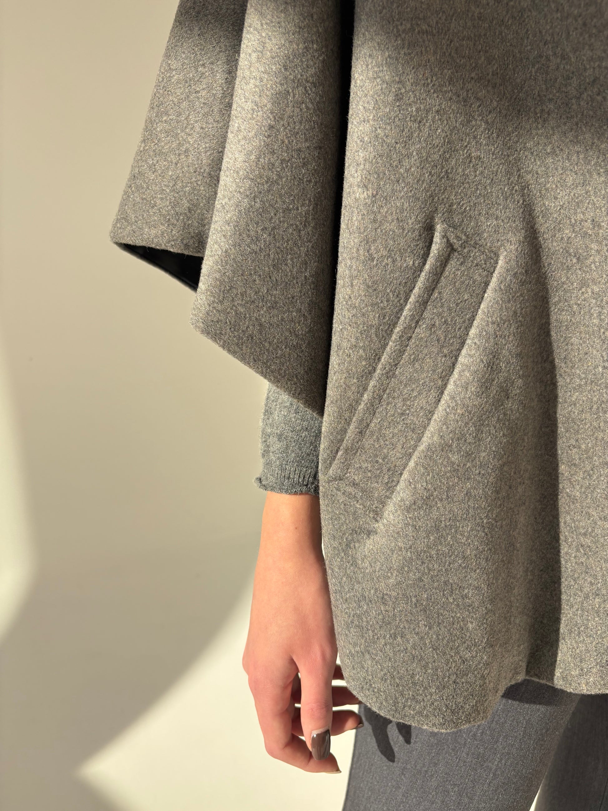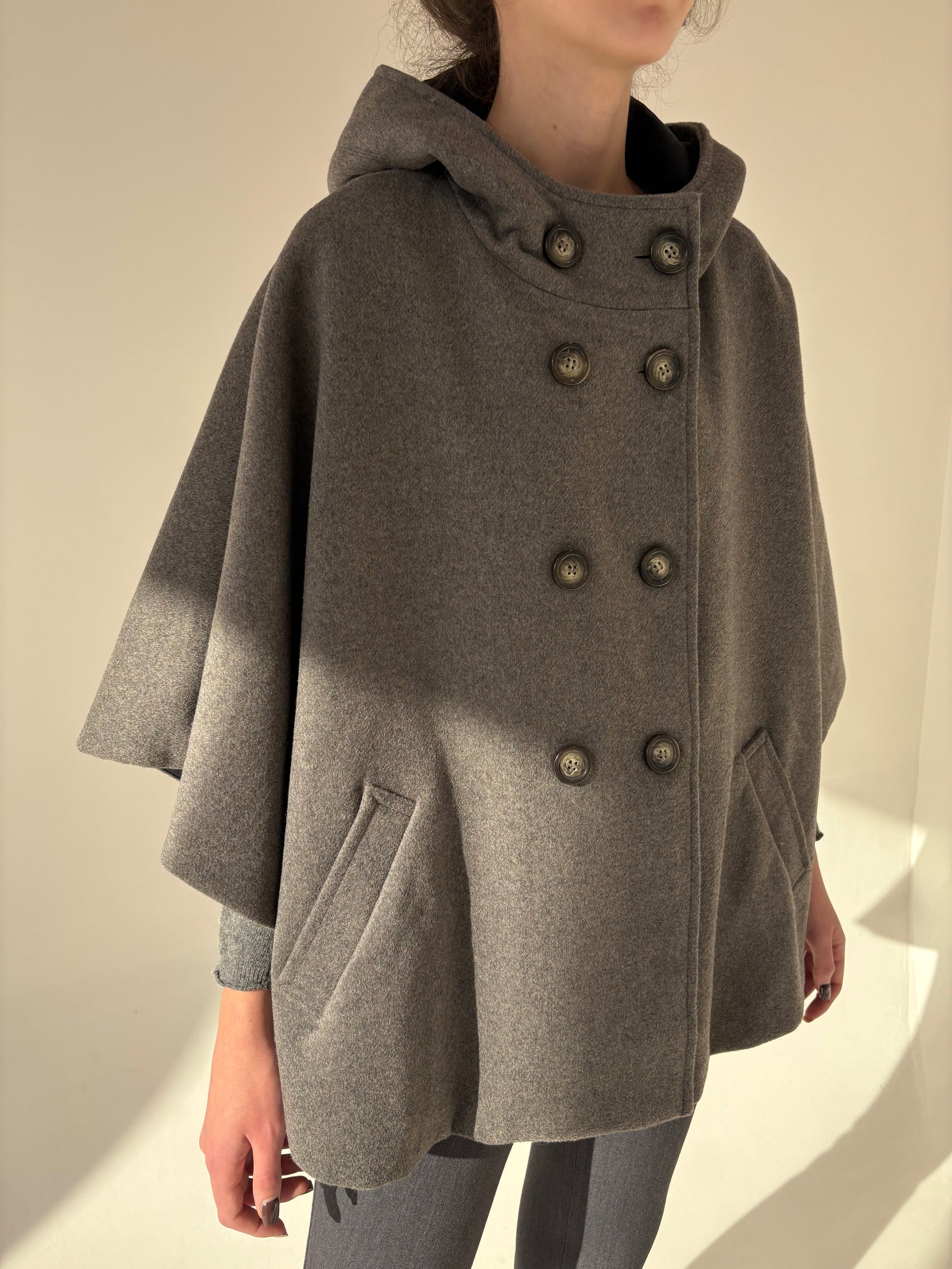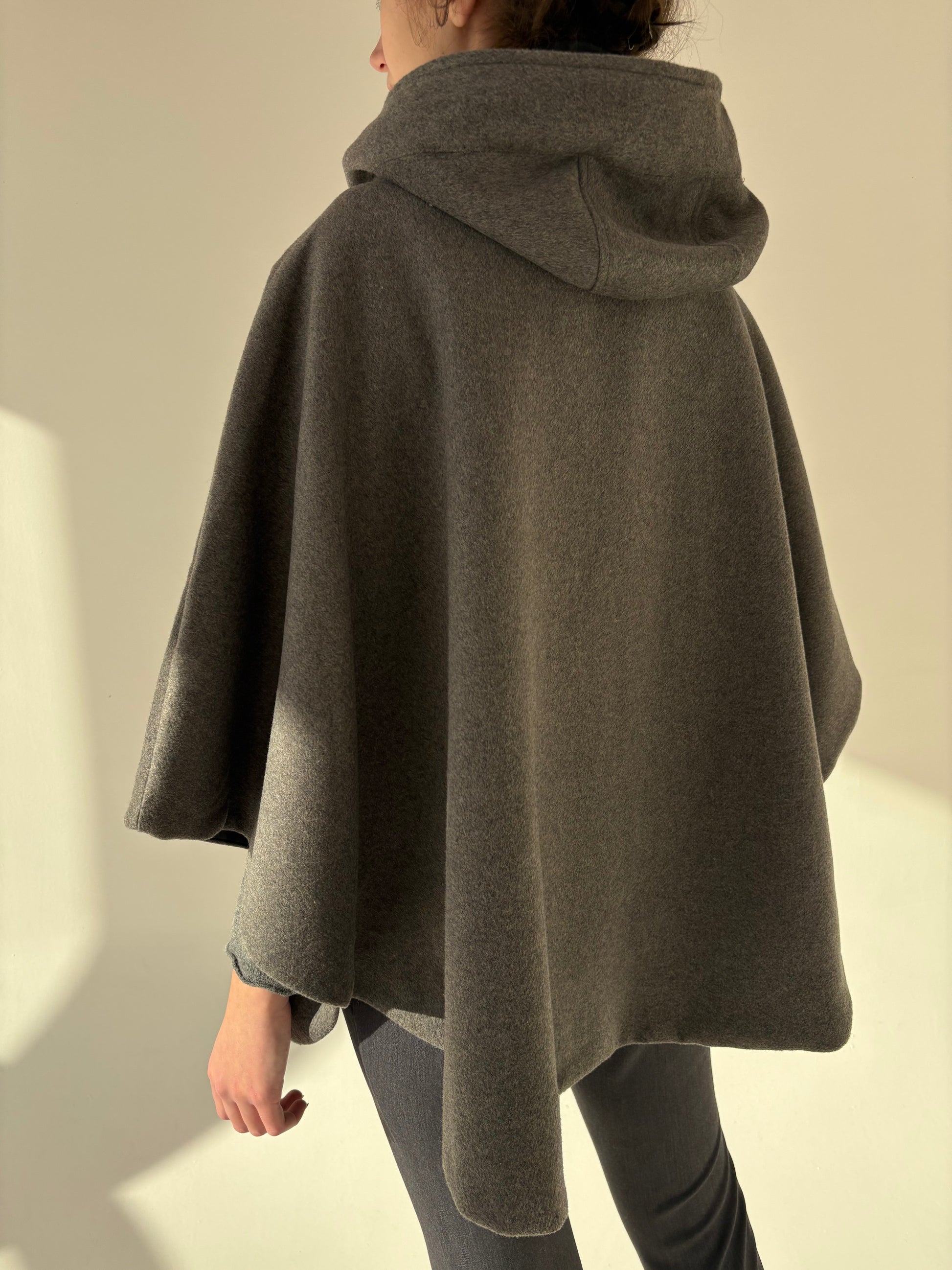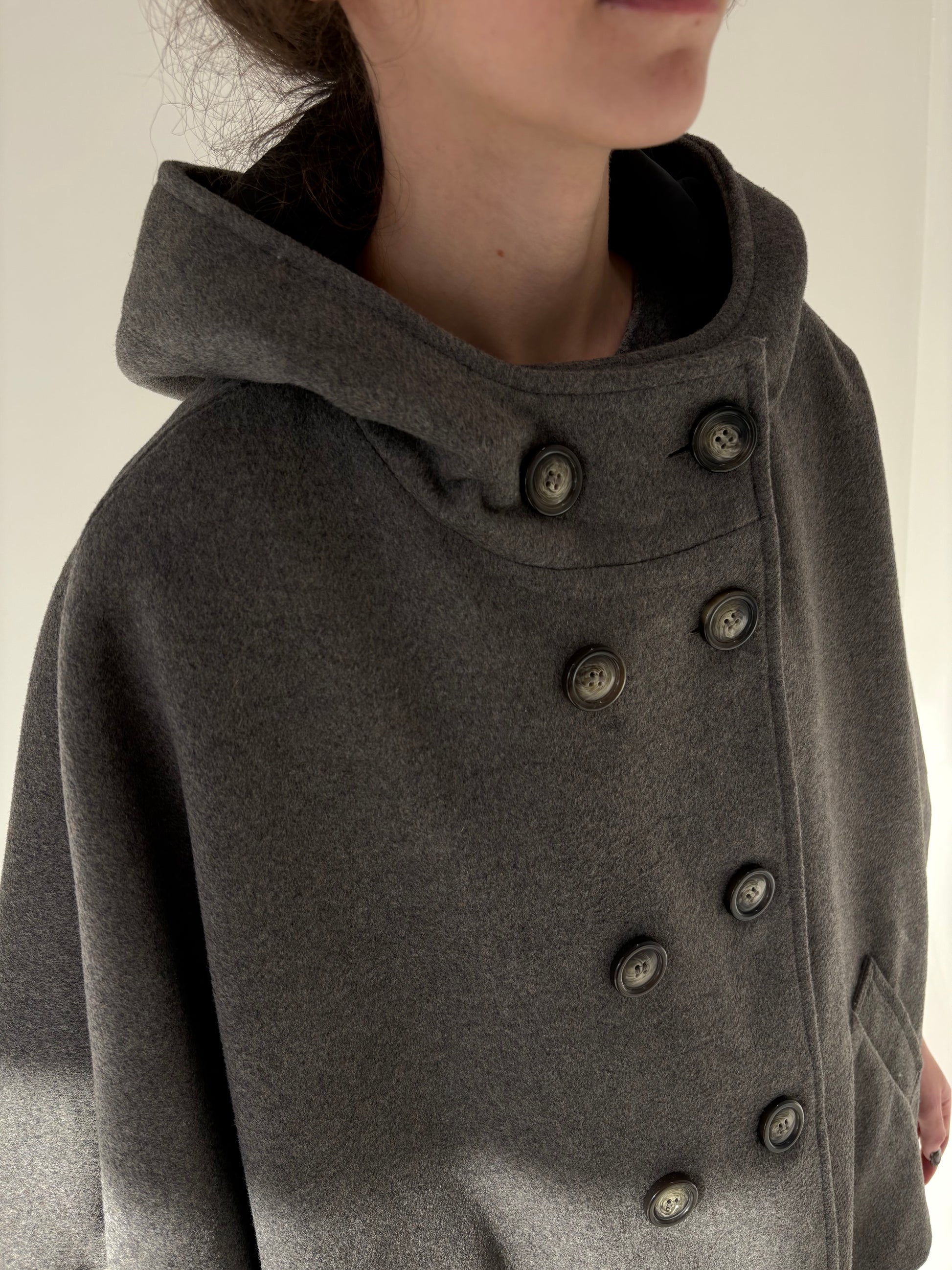 Capa cu glugă si închidere din stofă de lana extrafina