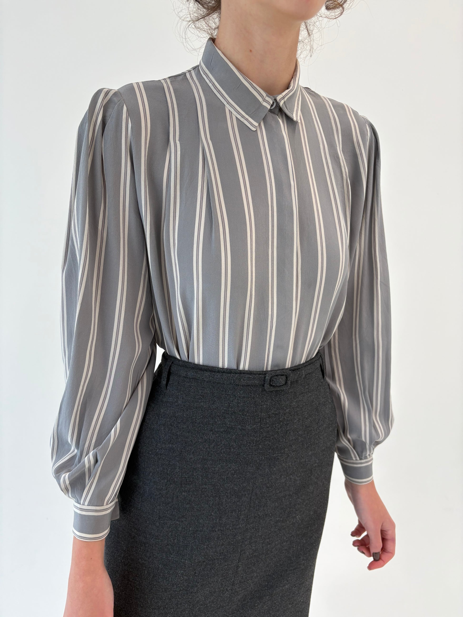 Cămașa vintage din mătase naturală în croi amplu