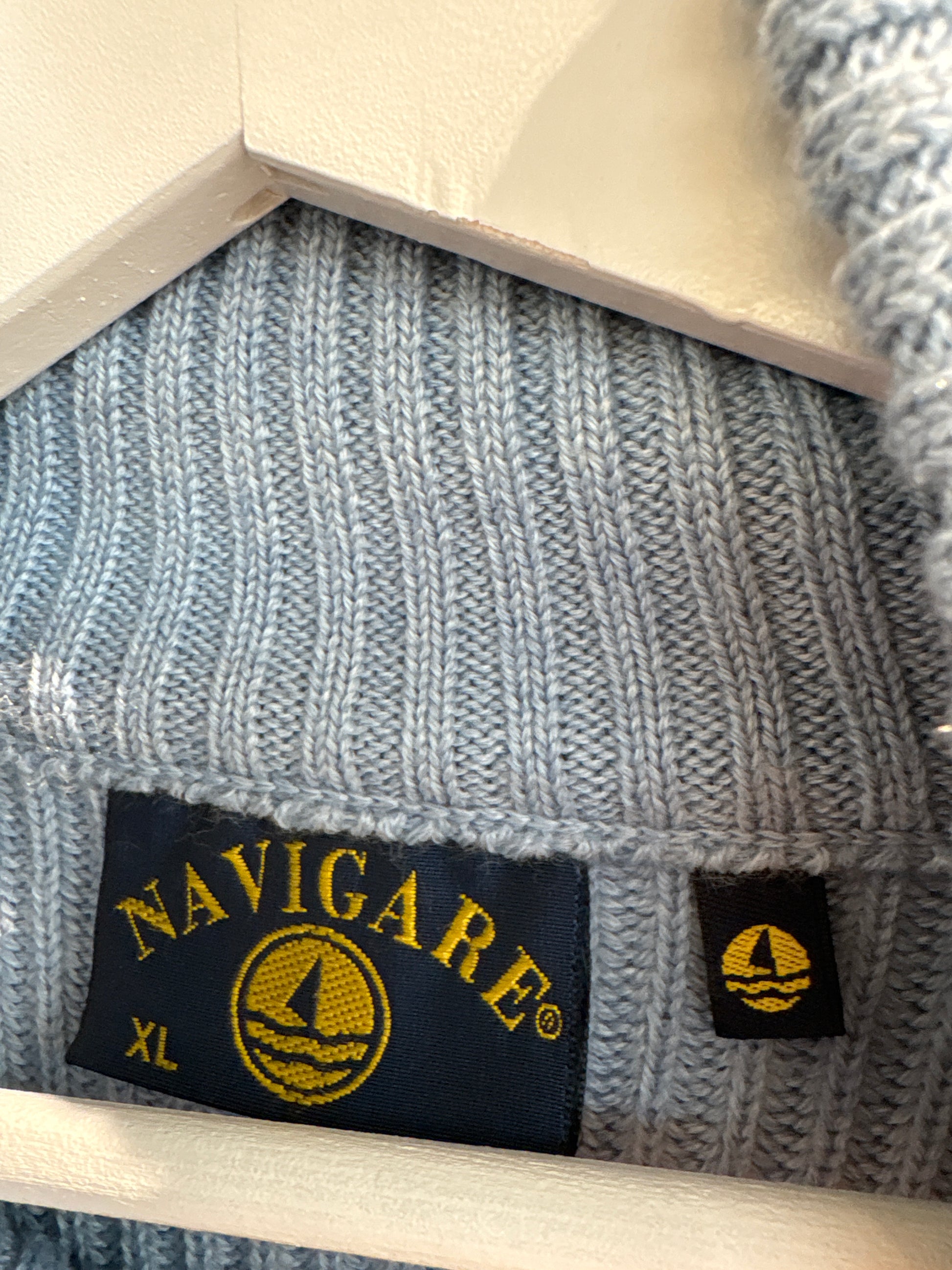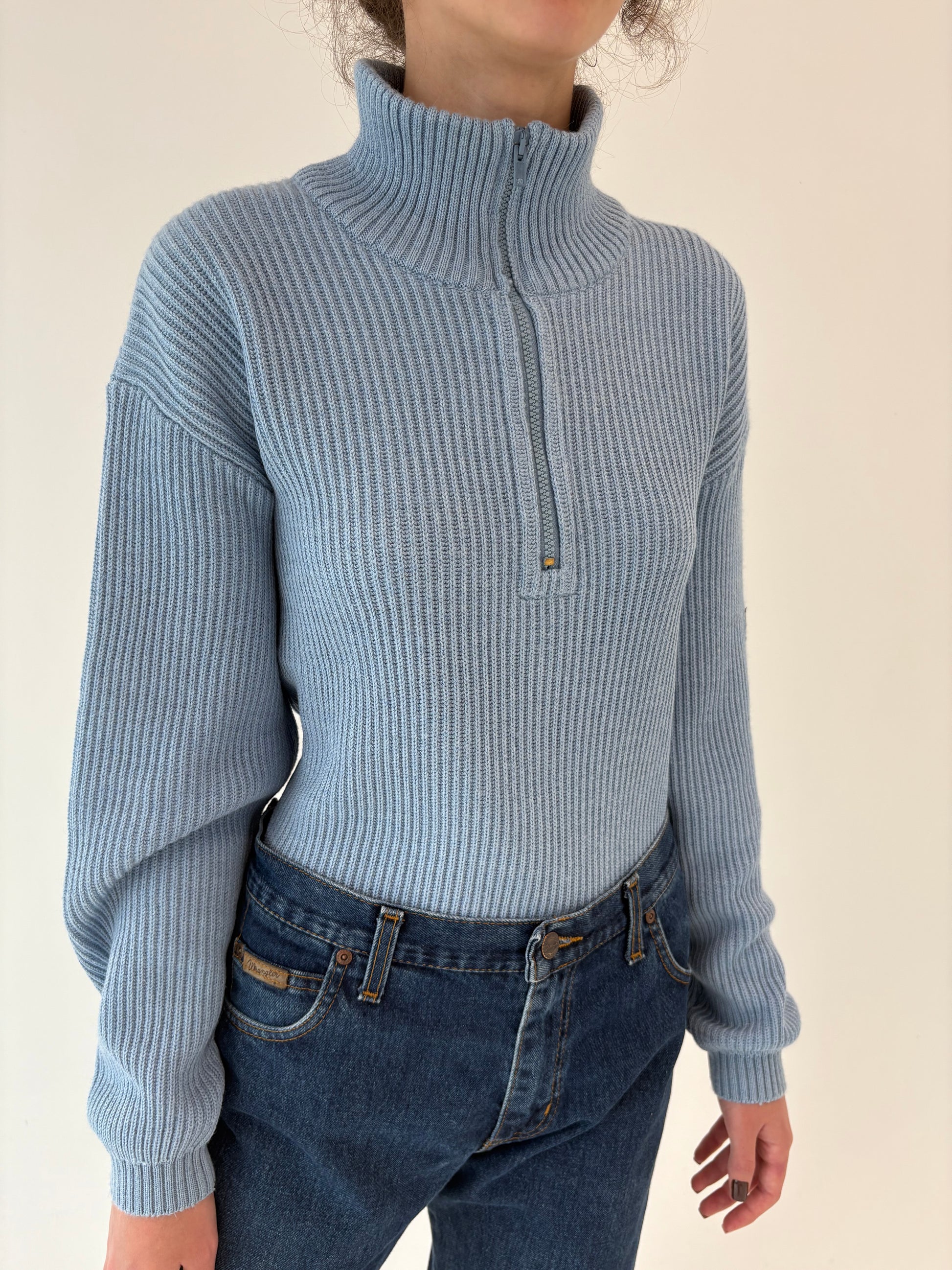 Maleta baby blue din lana merino extrafina de gramaj mare cu influențe sport