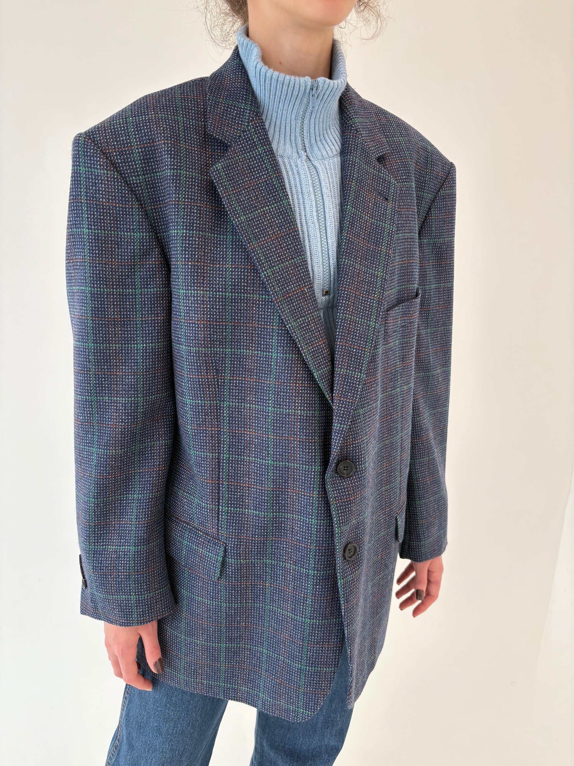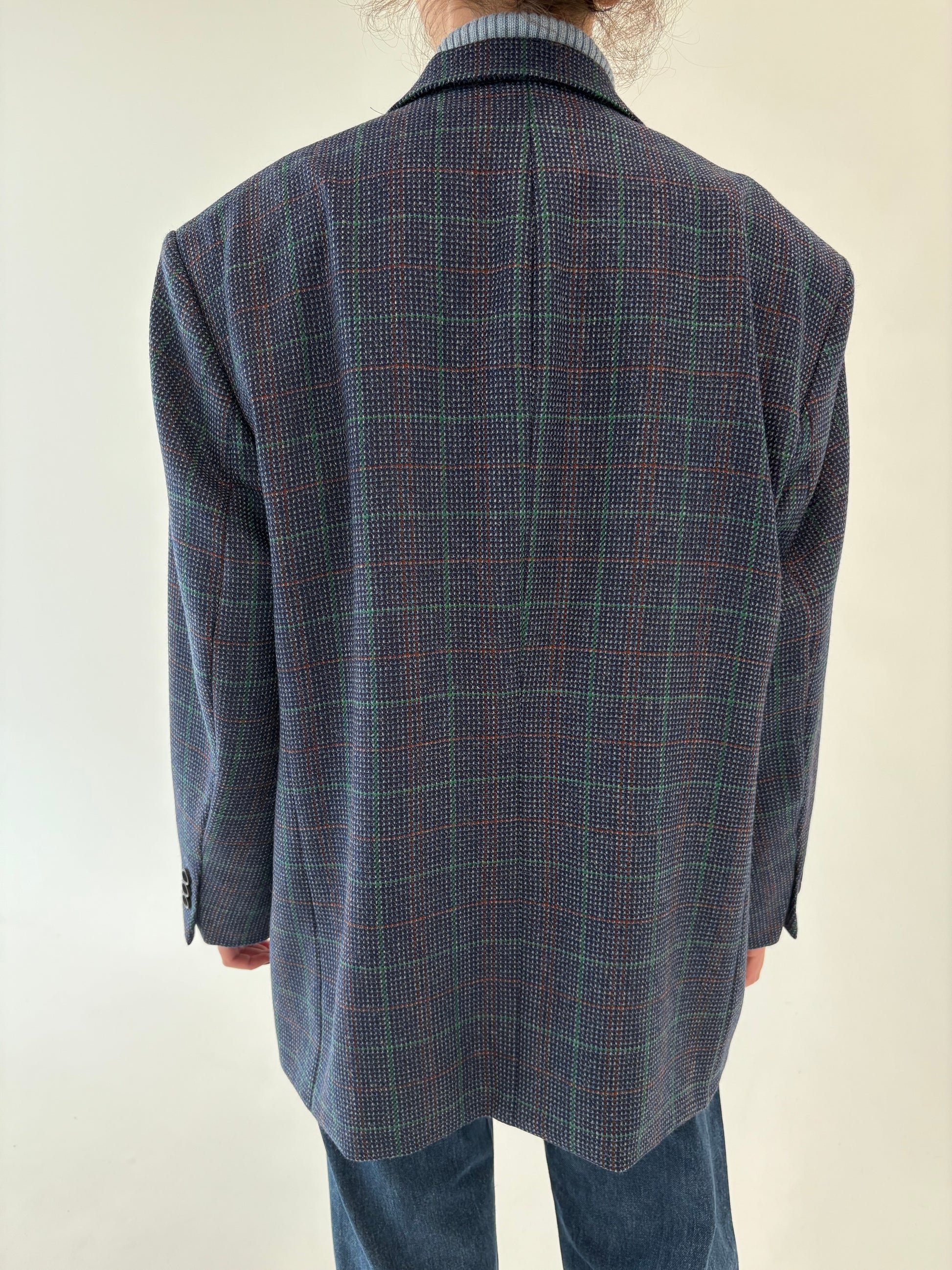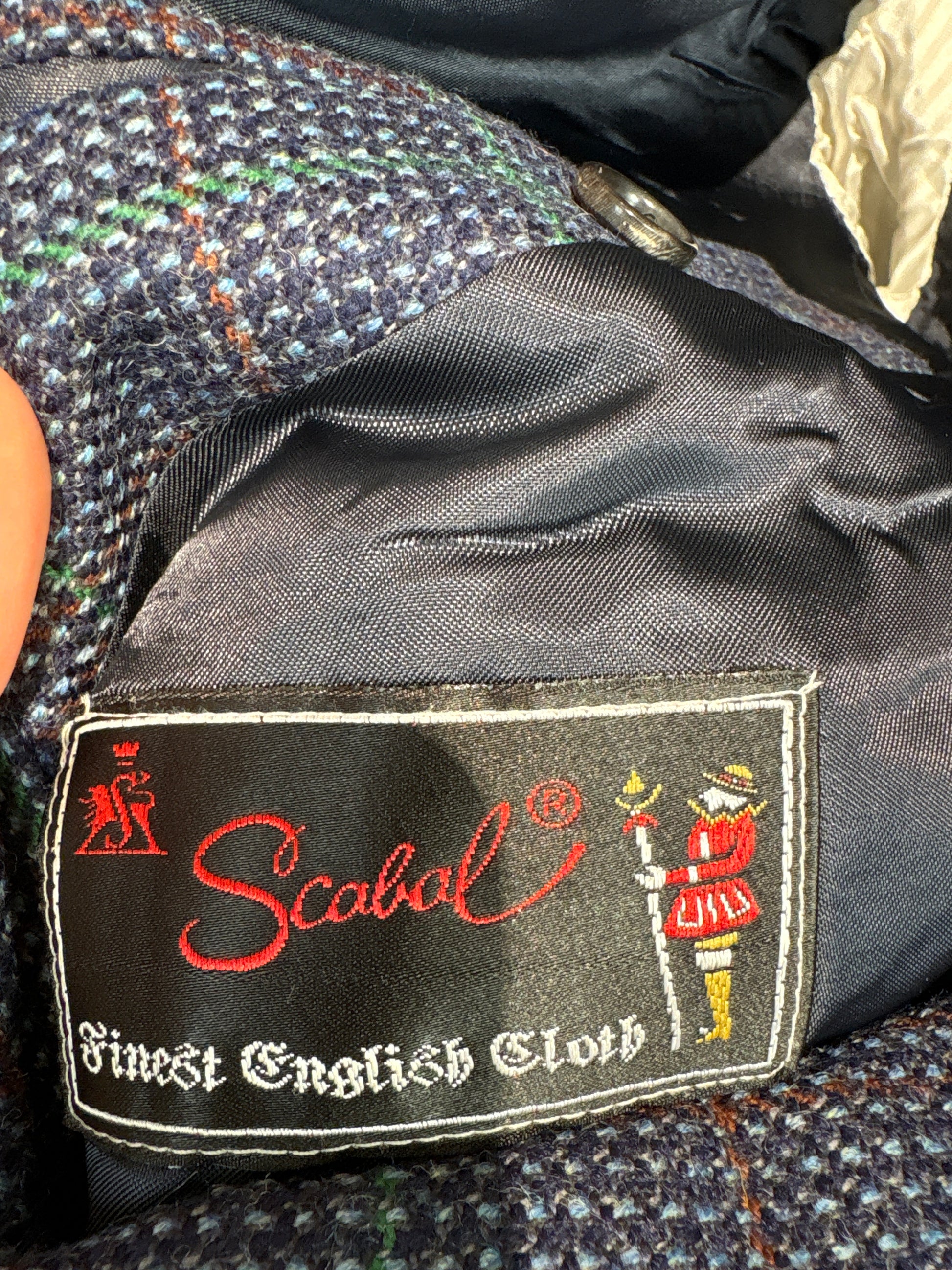 Sacou din stofă de lana ultra luxury Scabal groasă jeans blue în carouri