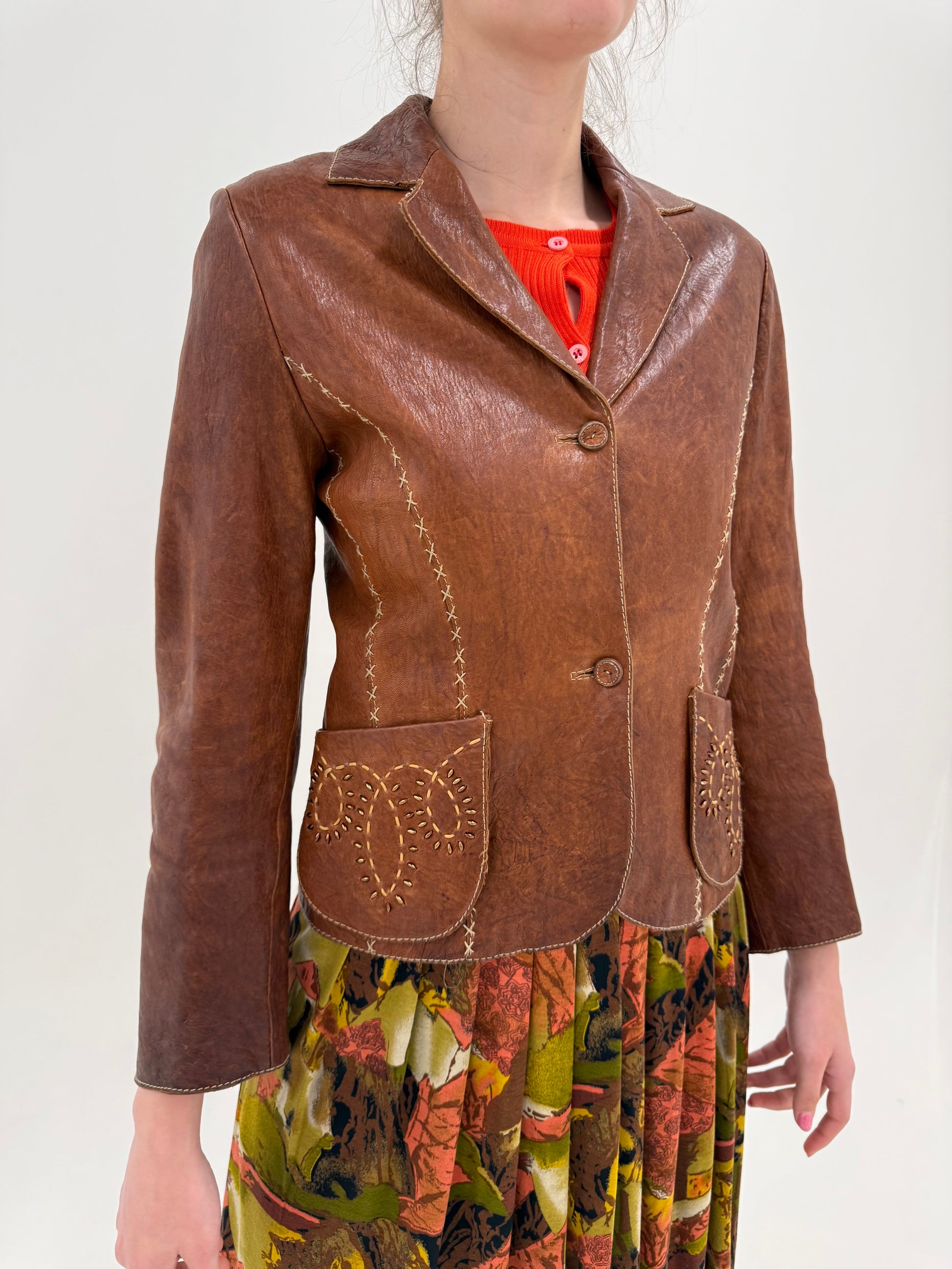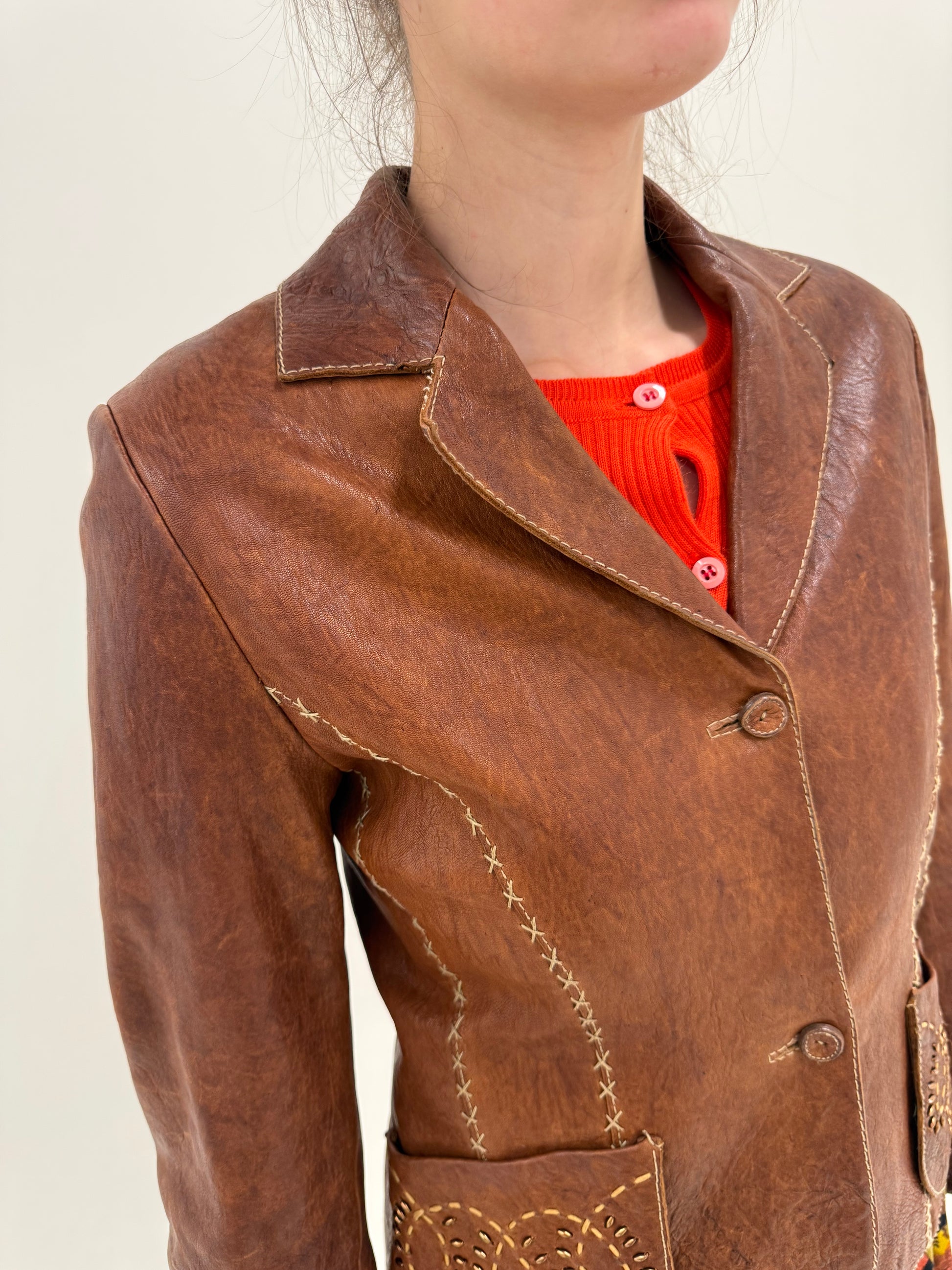 Sacou italian cambrat din piele naturală maro cu finish super în trend