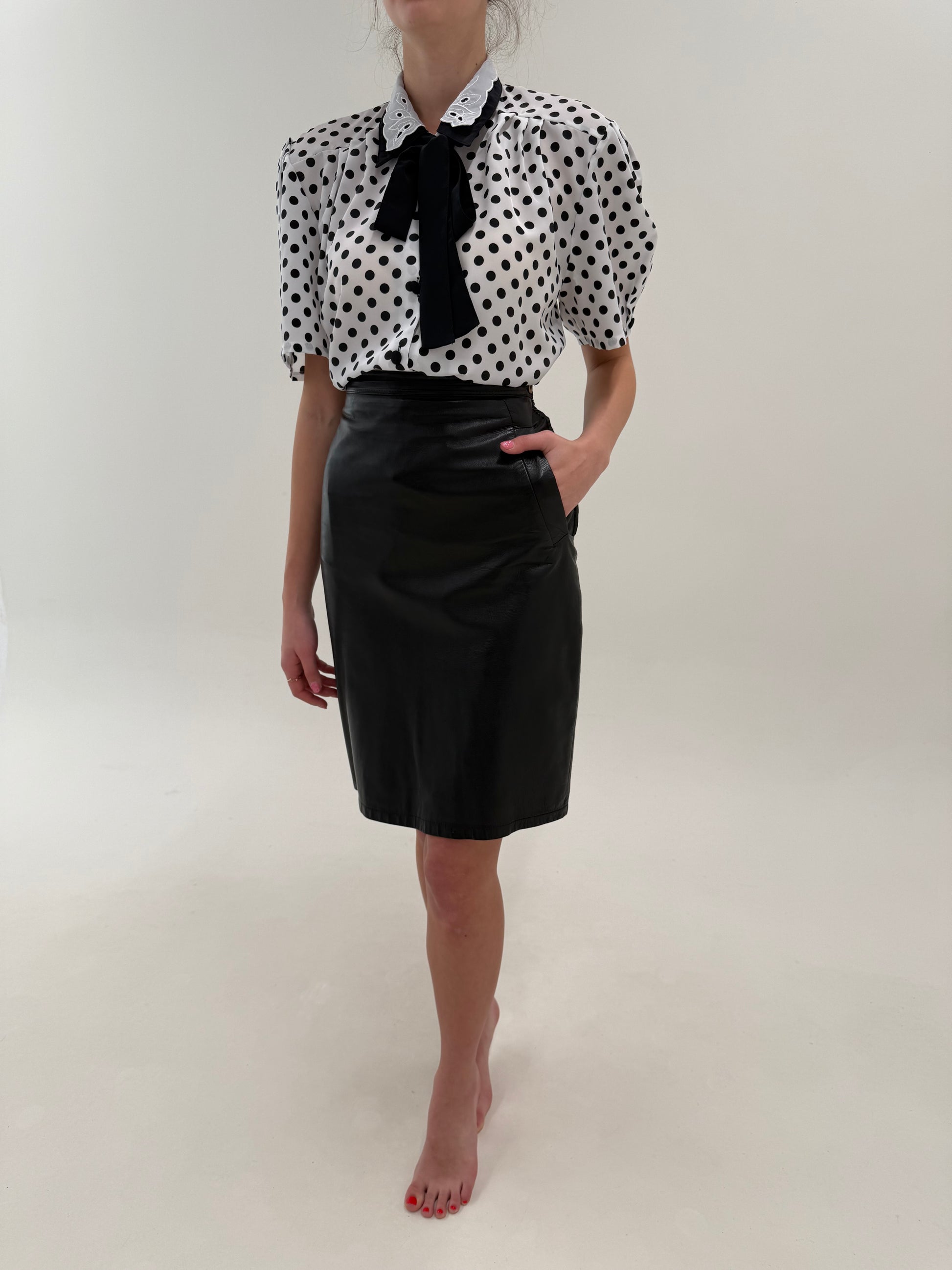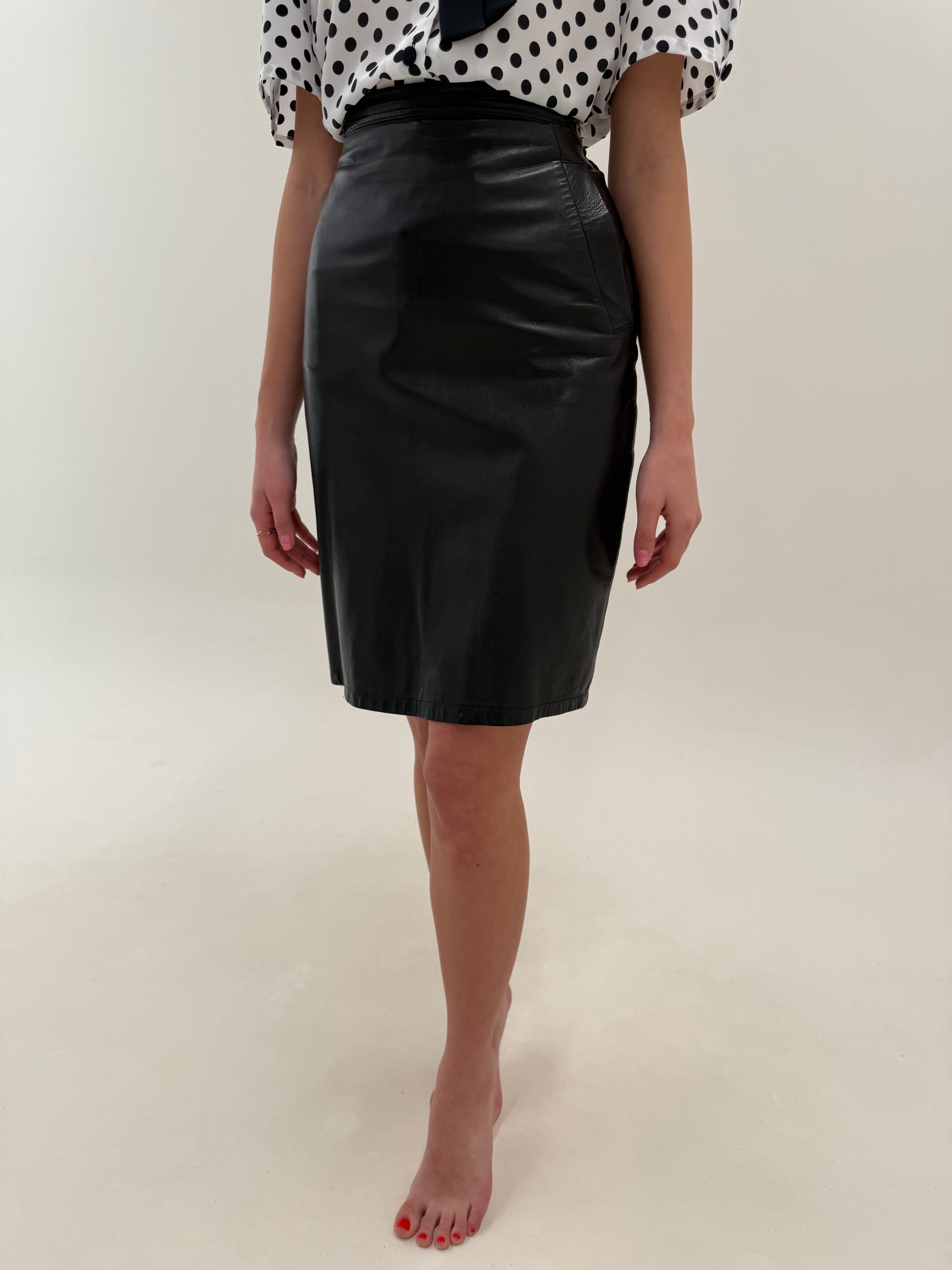 Fustă din piele naturală extrem de moale cu buzunare și talie ultra înaltă