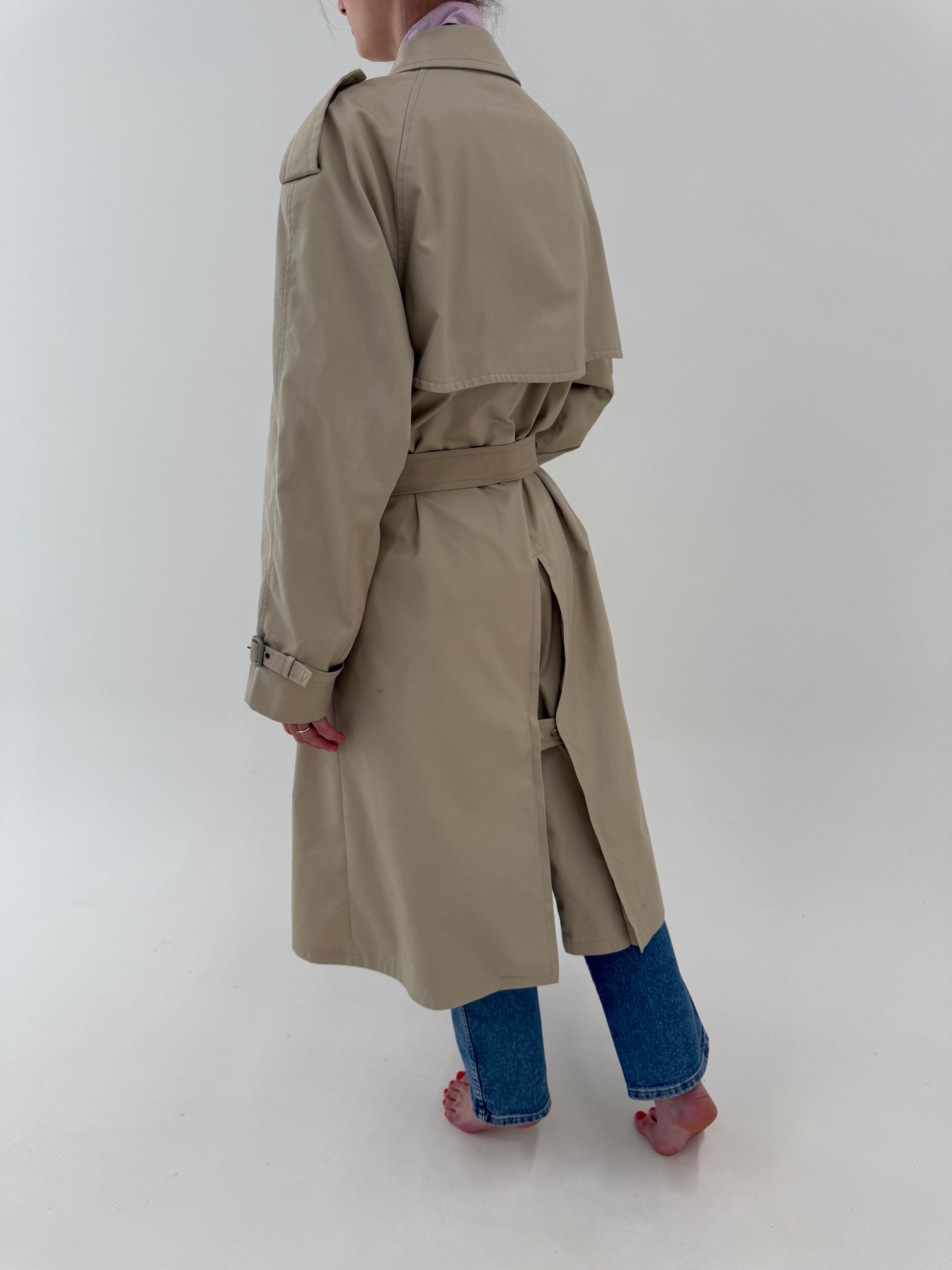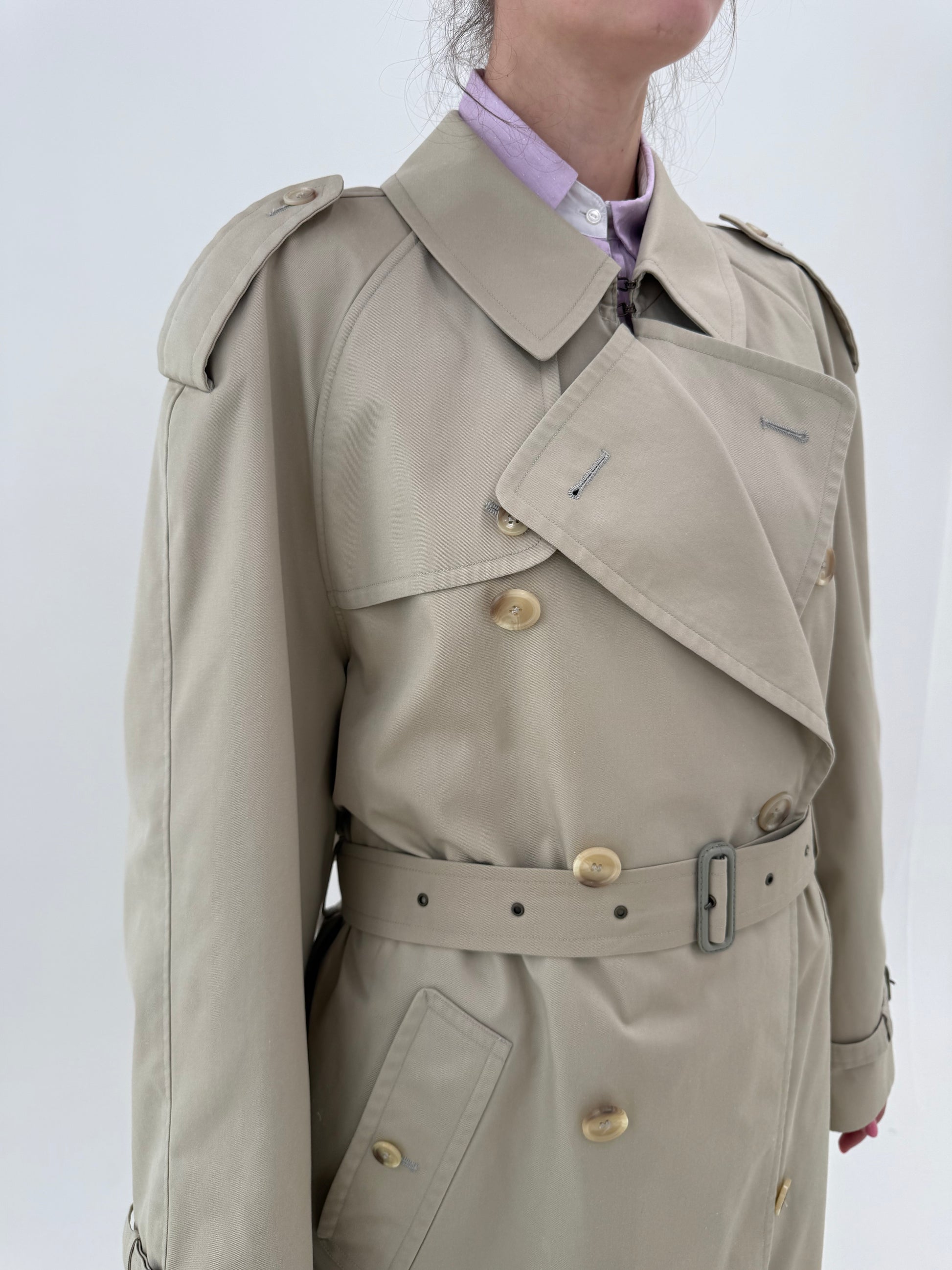 Trench vintage camel din gabardină impermeabilă cu talie ultra înaltă marcată