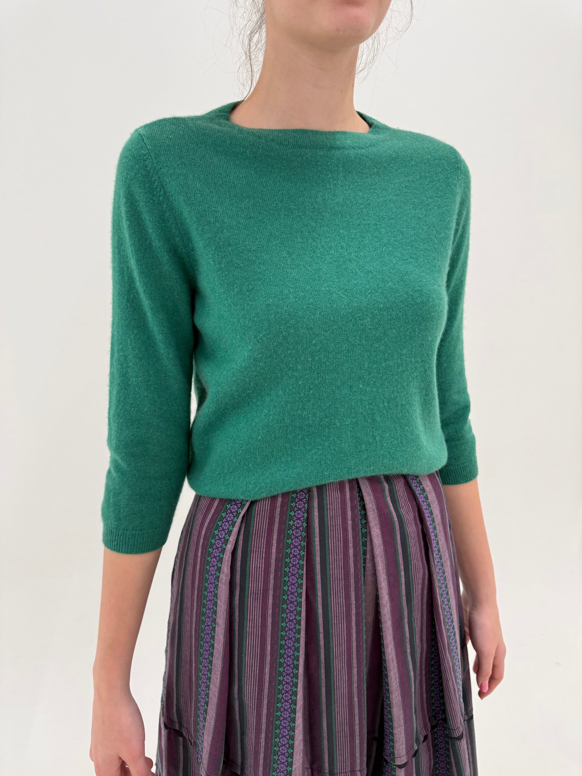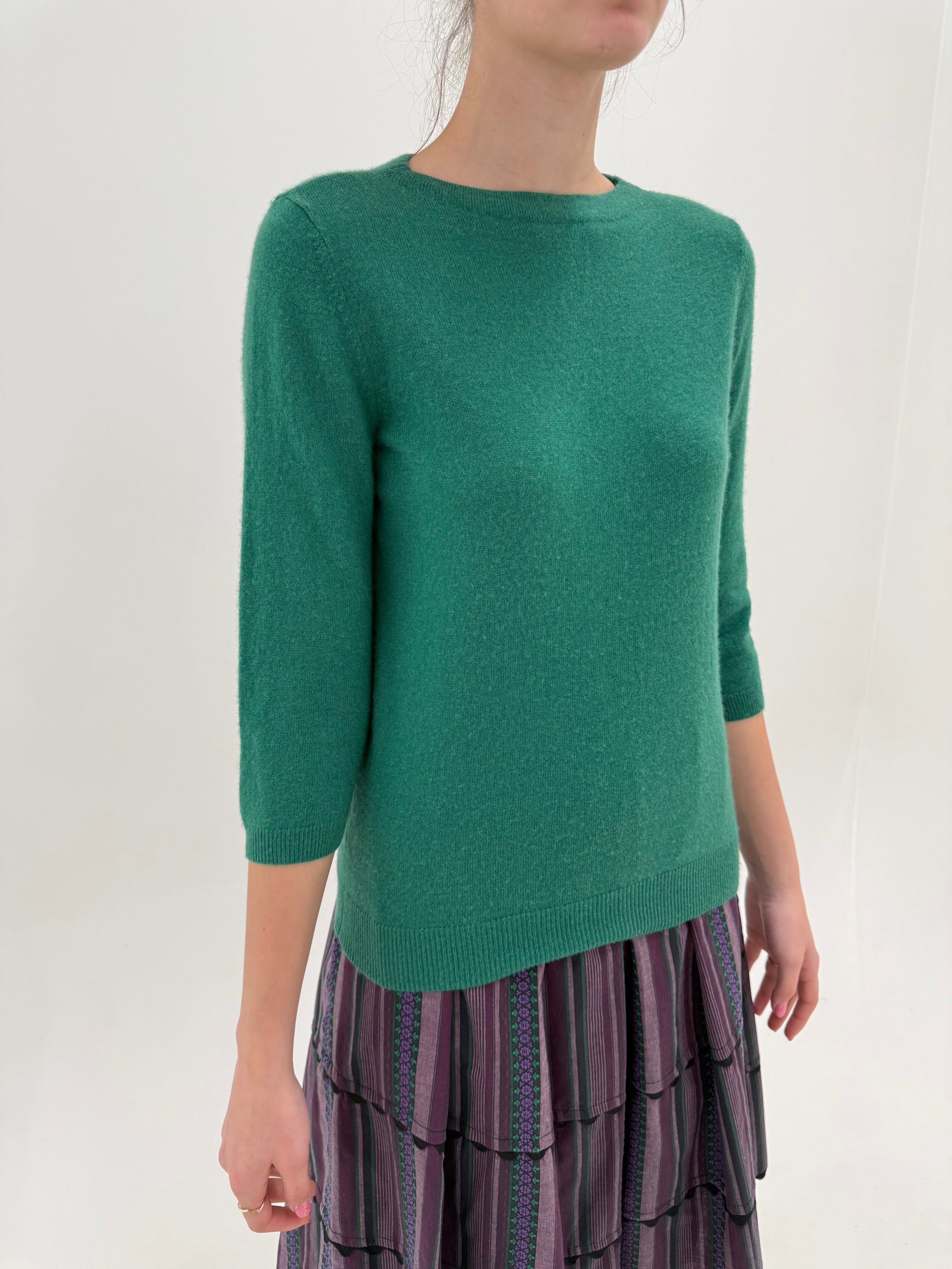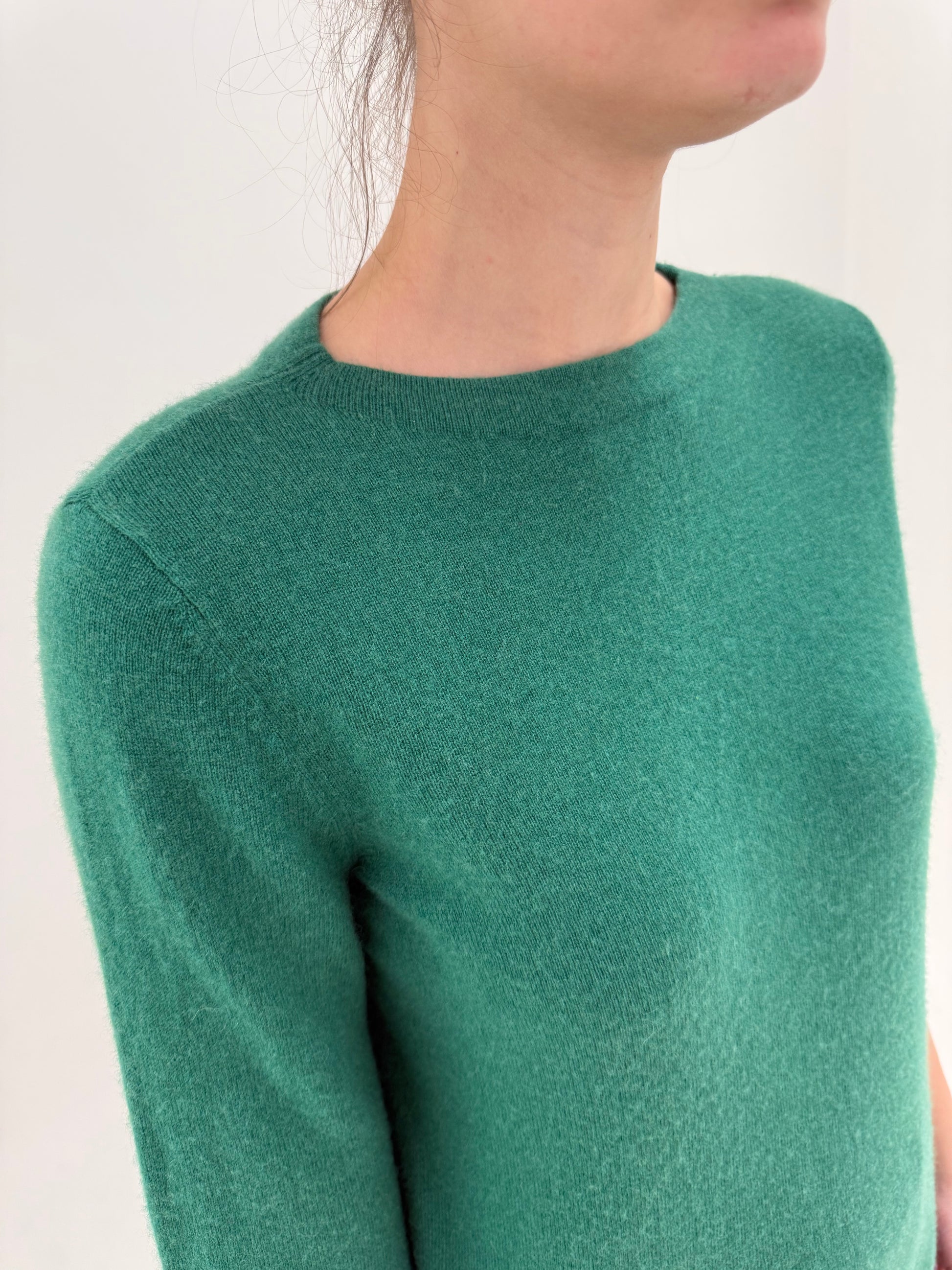Puloveras din cașmir cu mânecă 3/4 verde smarald