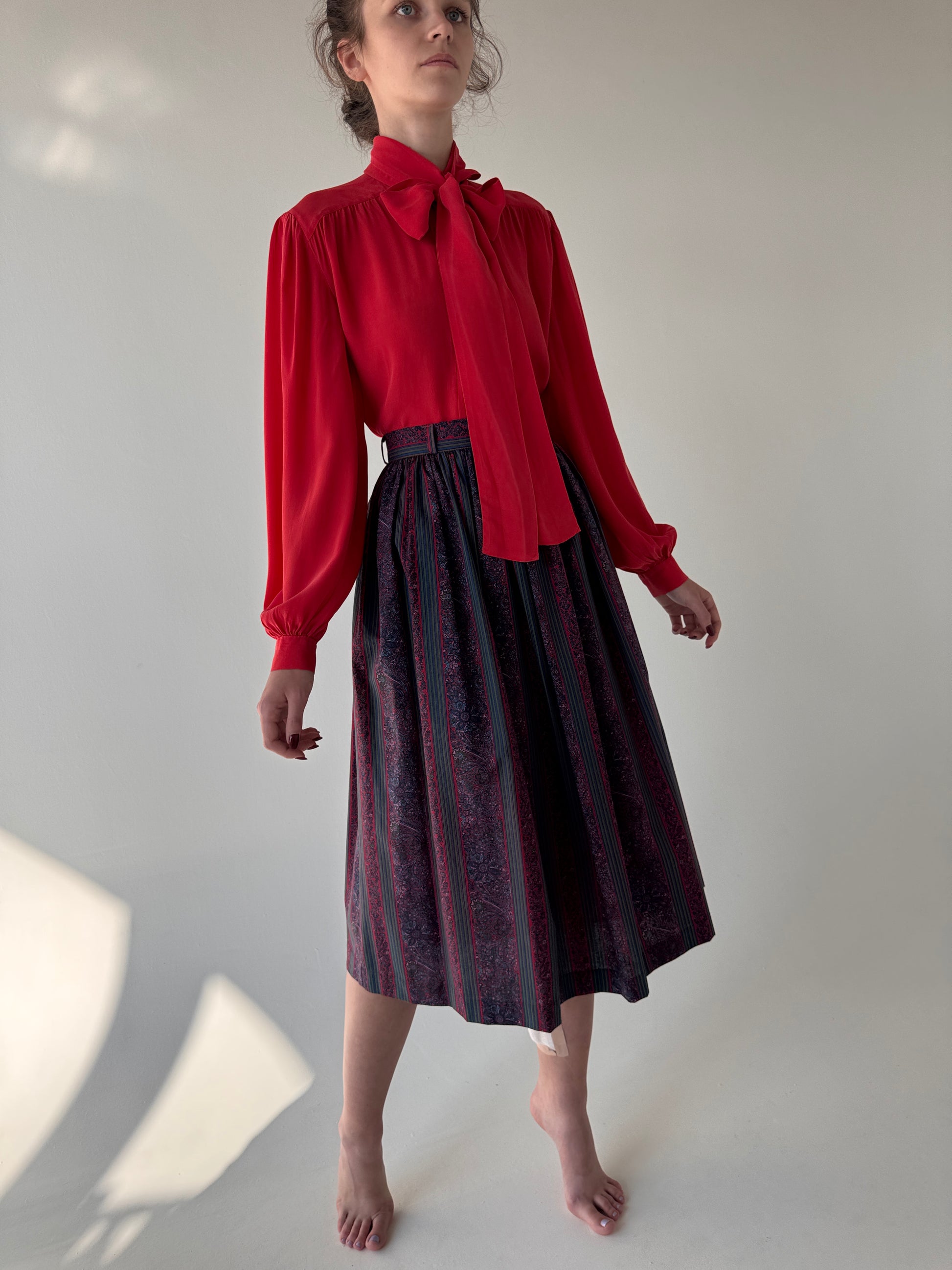 Fustă vintage cu buzunare usor structurata cu print paisley