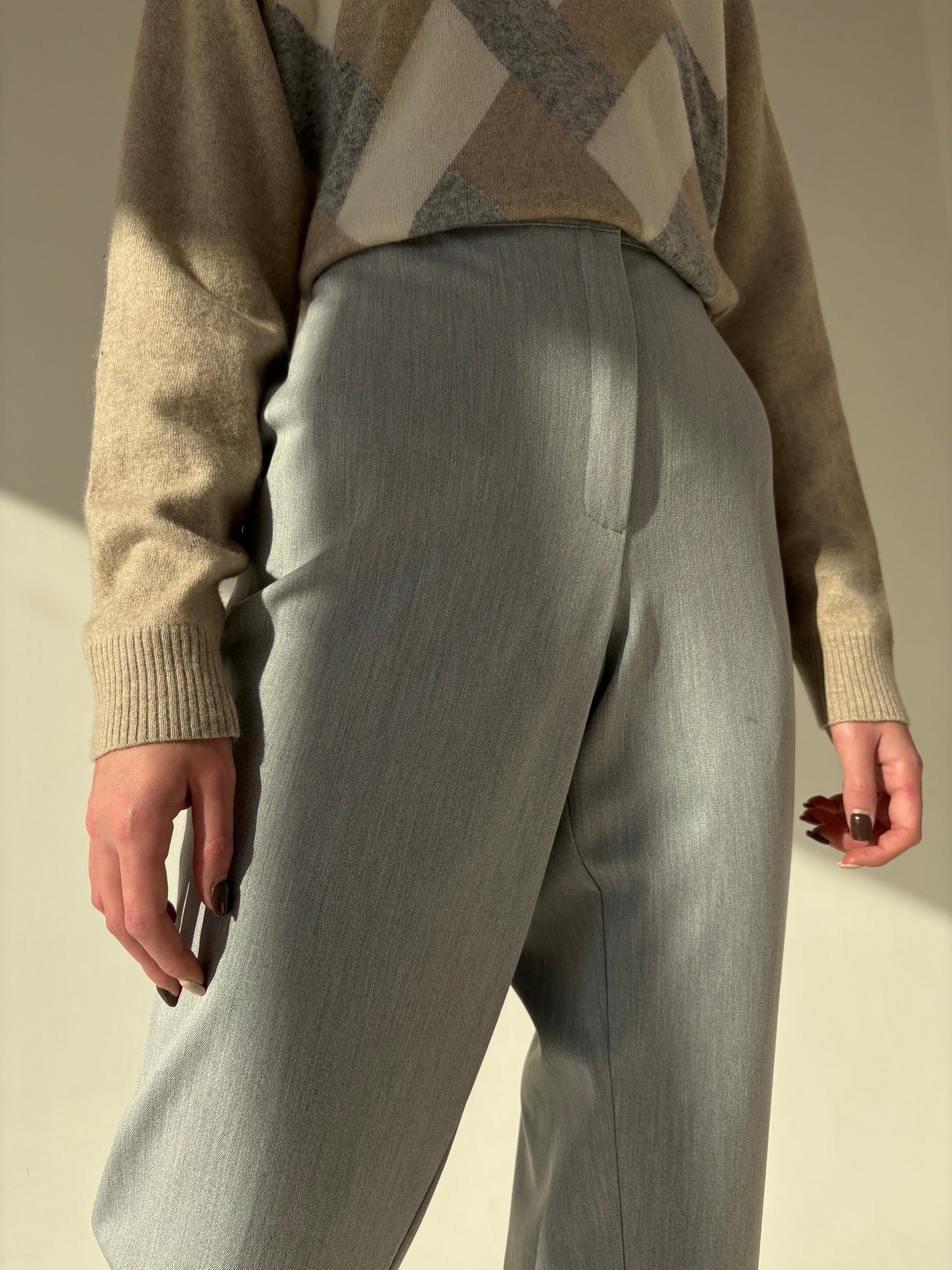 Pantaloni petite noi silver gray din stofă de lana extrafina confort