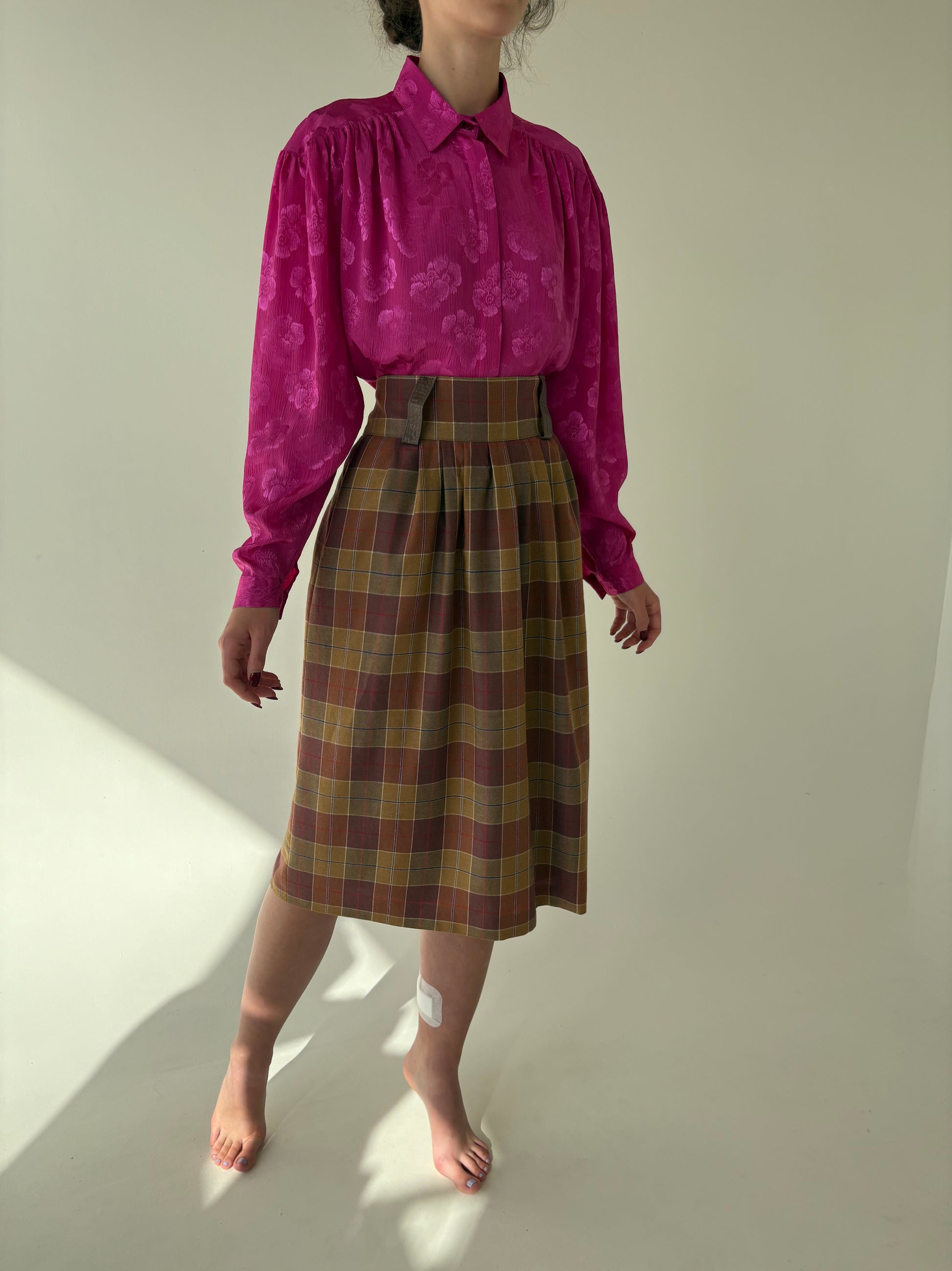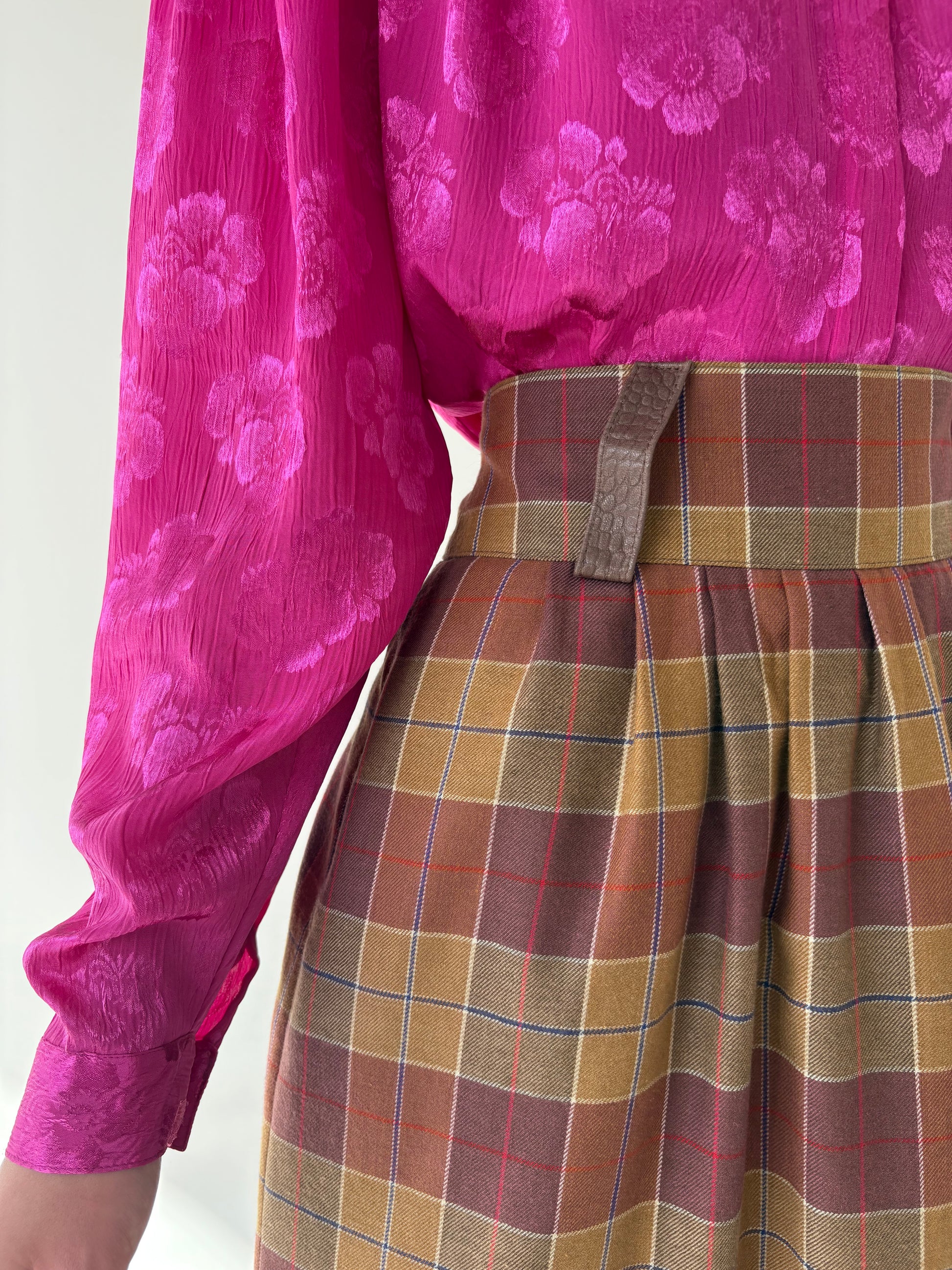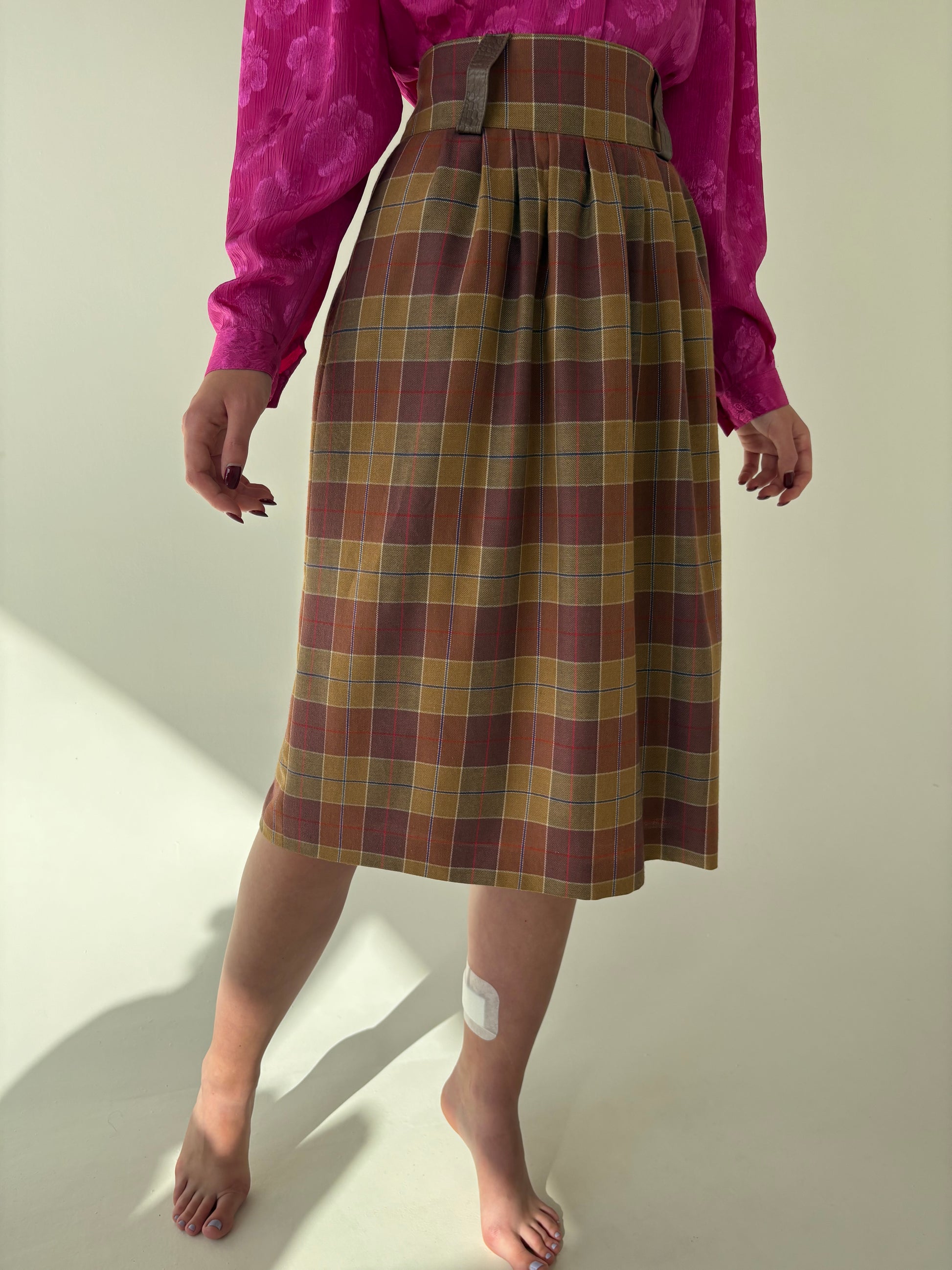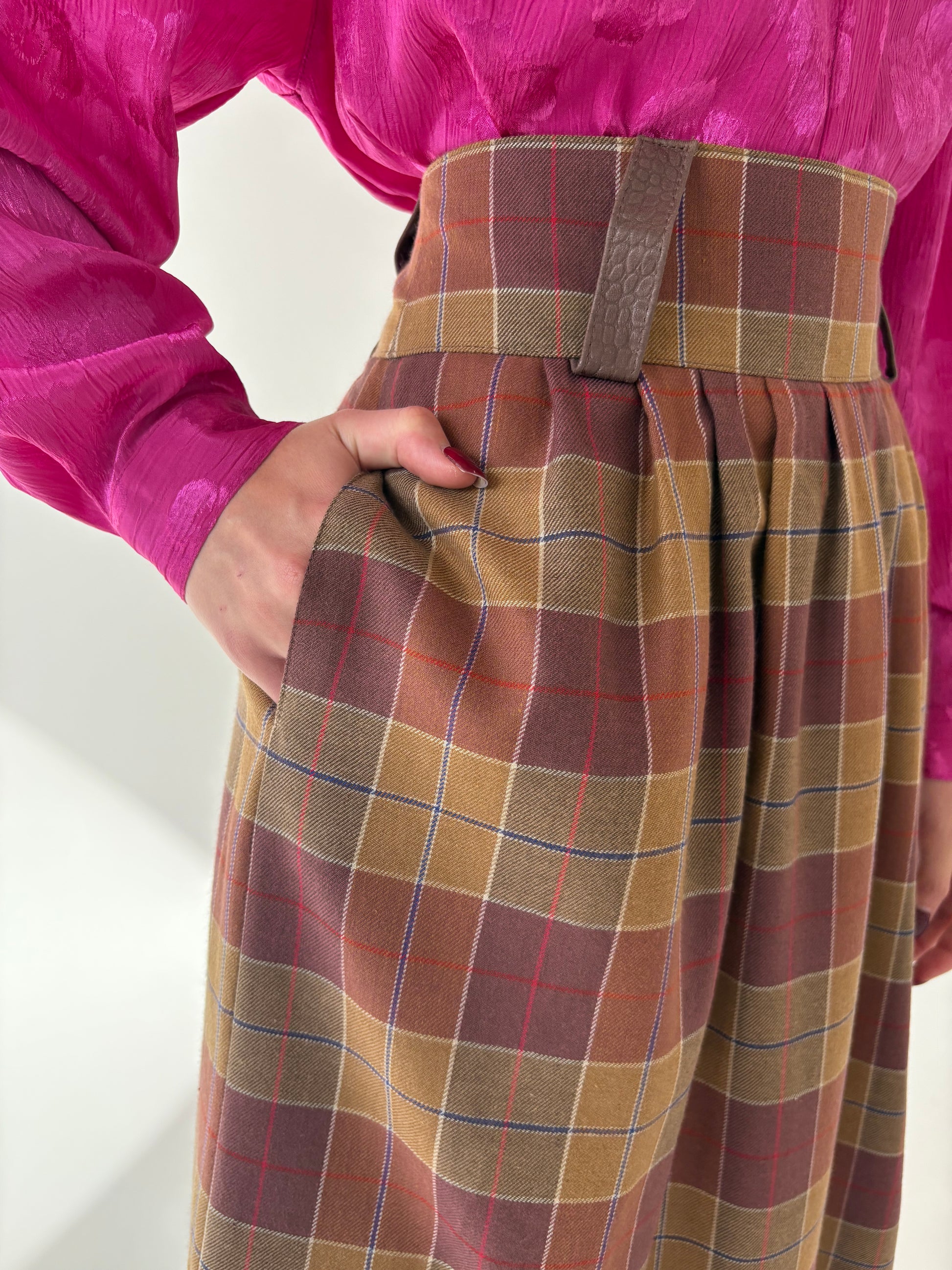 Fustă în carouri cu talie ultra înaltă și buzunare din lana extrafina si bbc