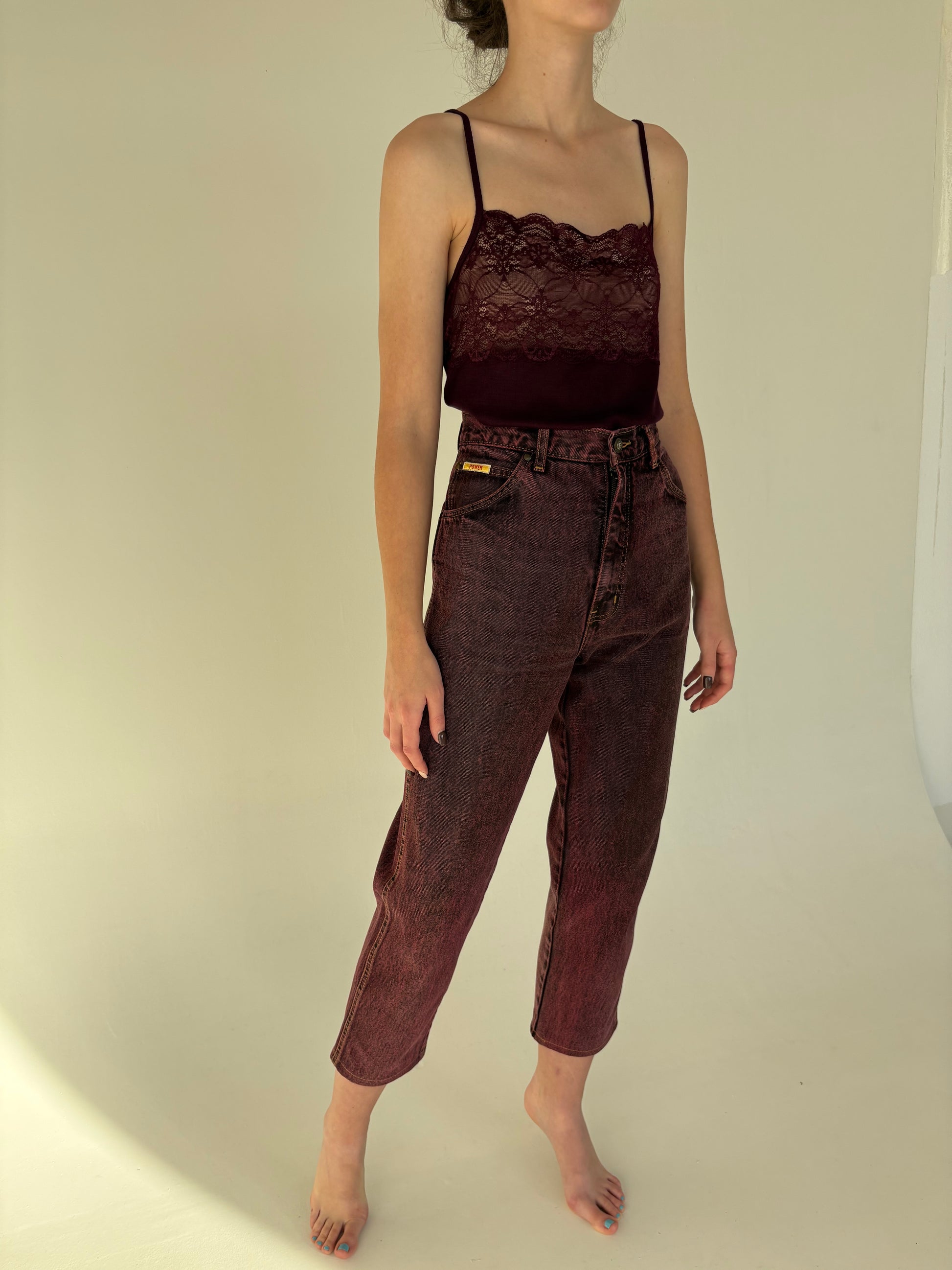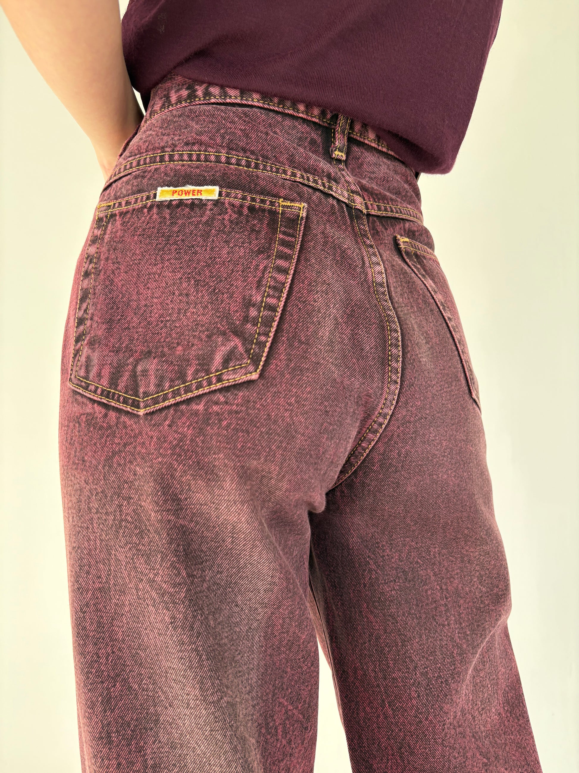 Jeans vintage gros mom fit cu talie ultra ultra înaltă burgundy wash
