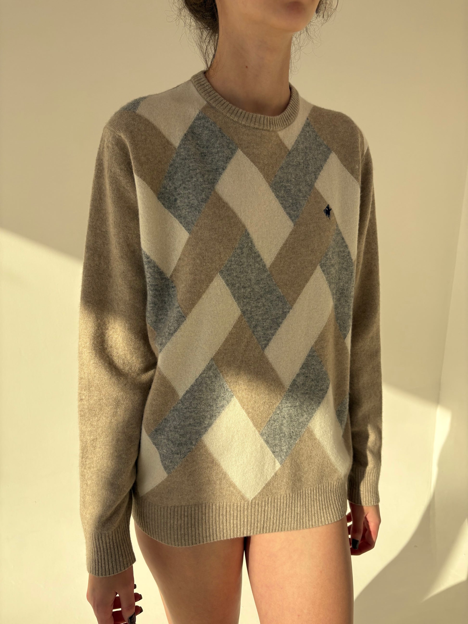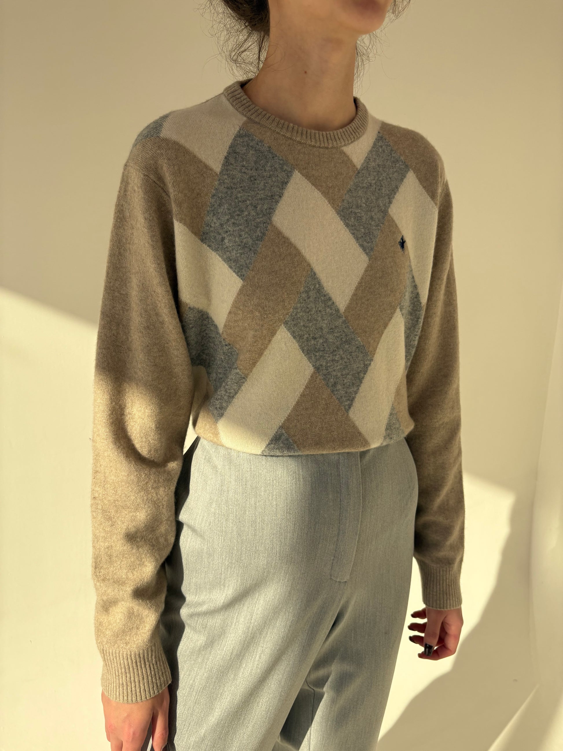 Pulover high end Italian in culori neutre din lana extrafina de gramaj mare