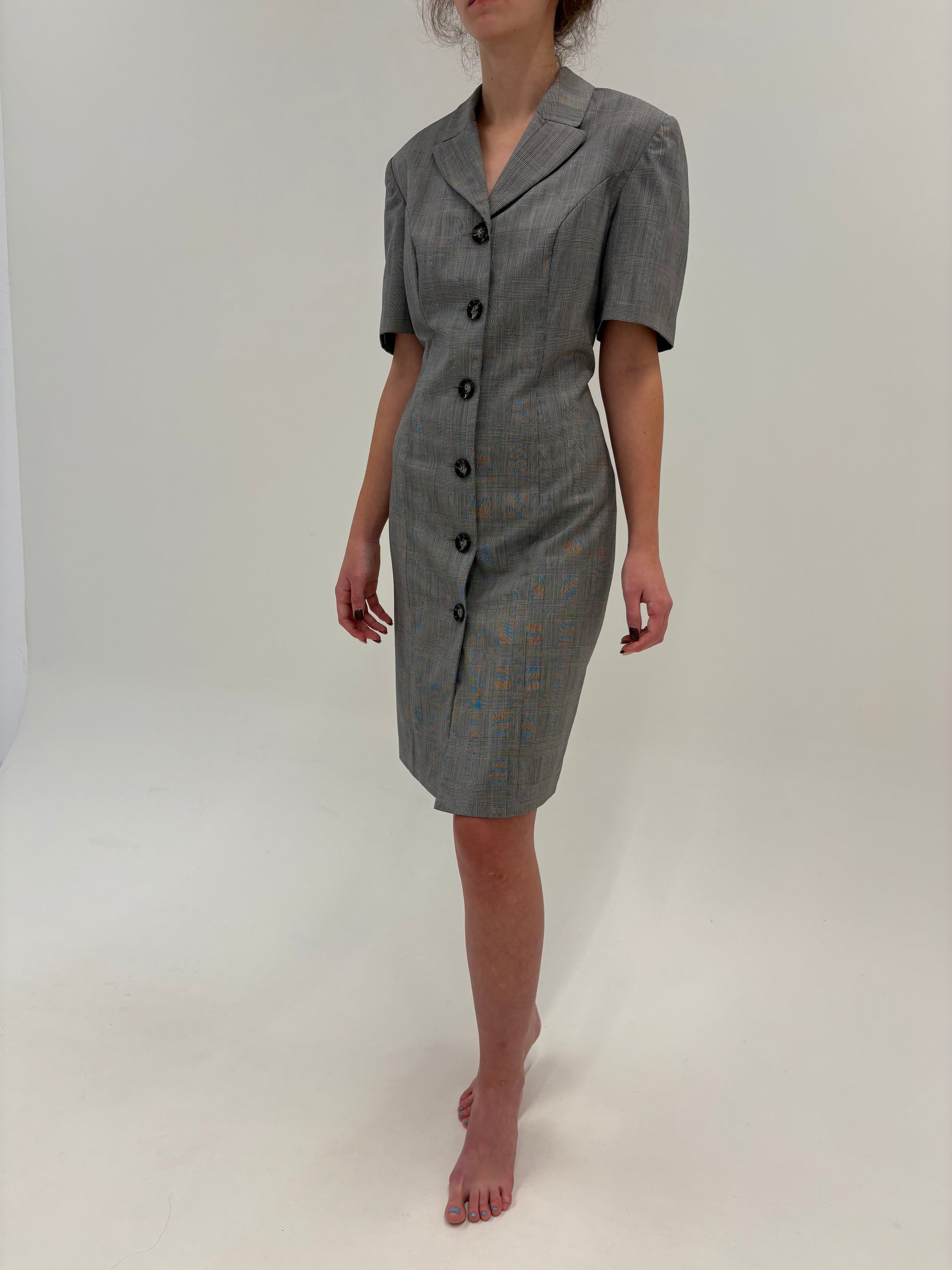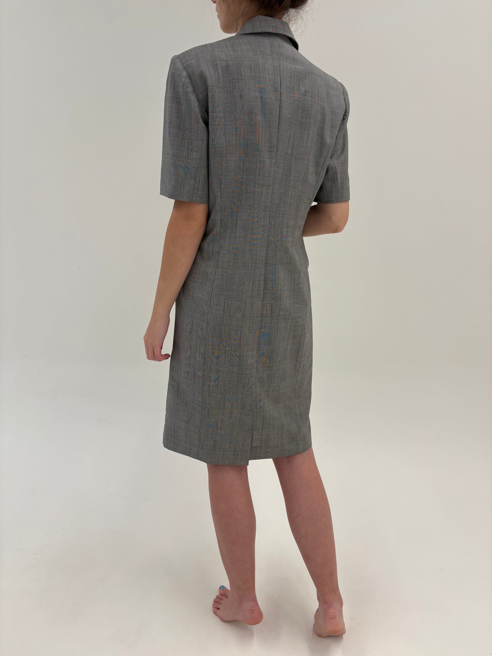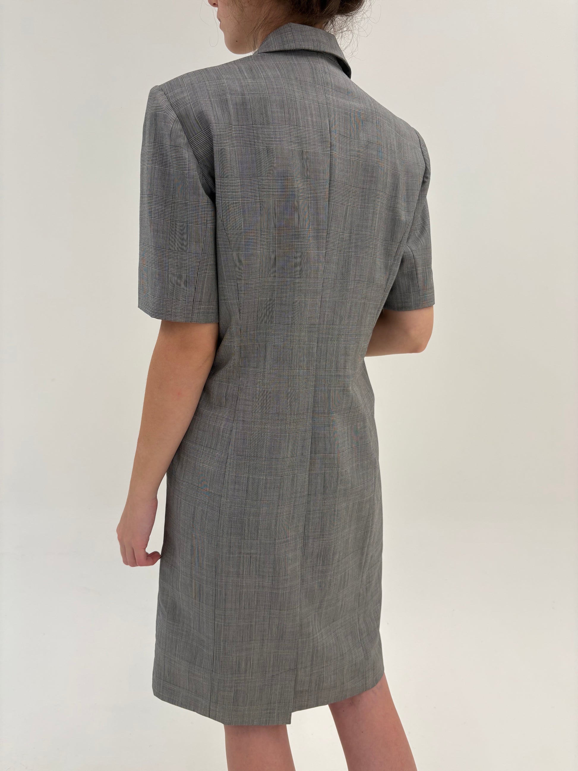 Rochie în carouri fine alb negru din stofă de lana extrafina