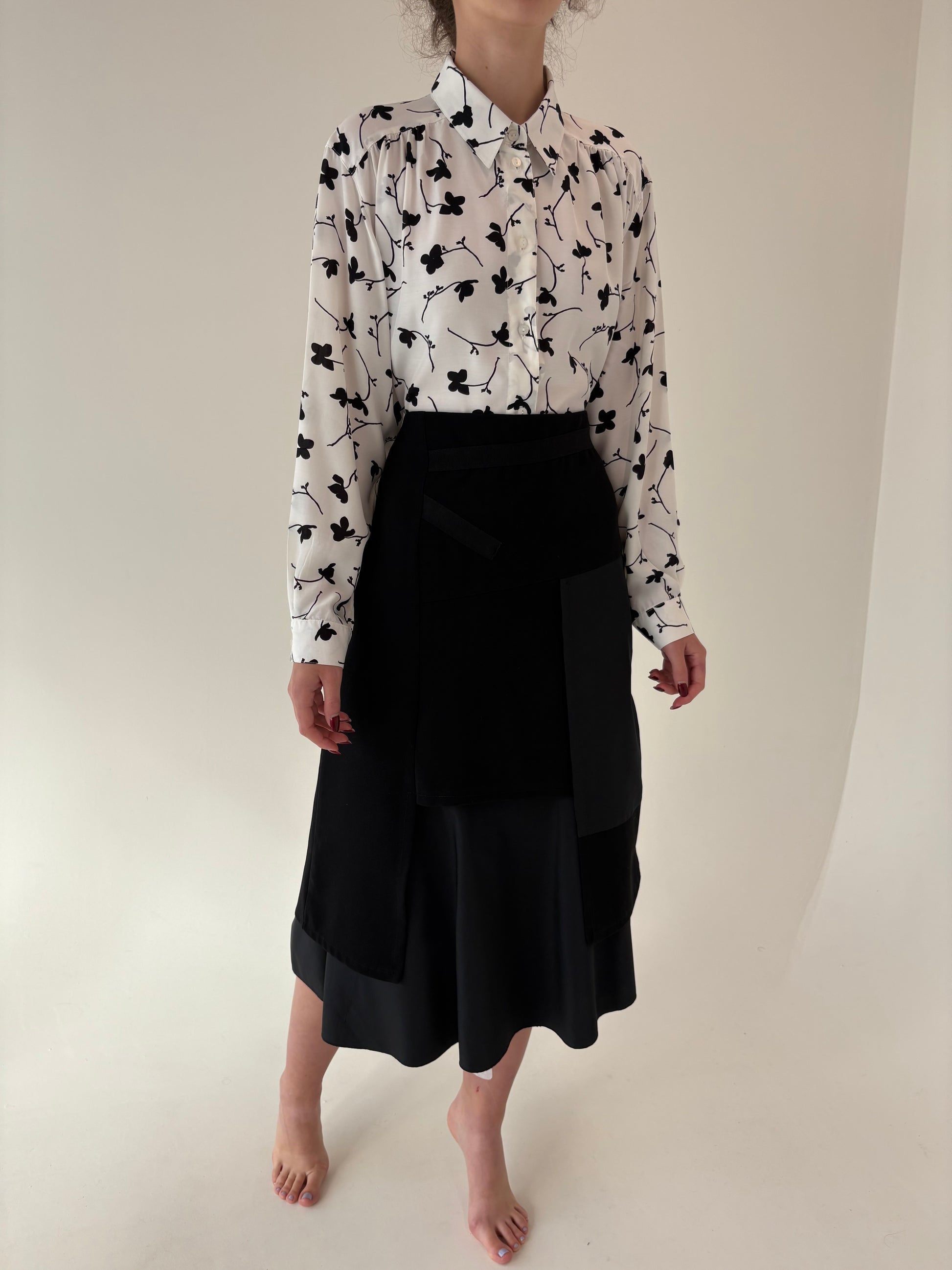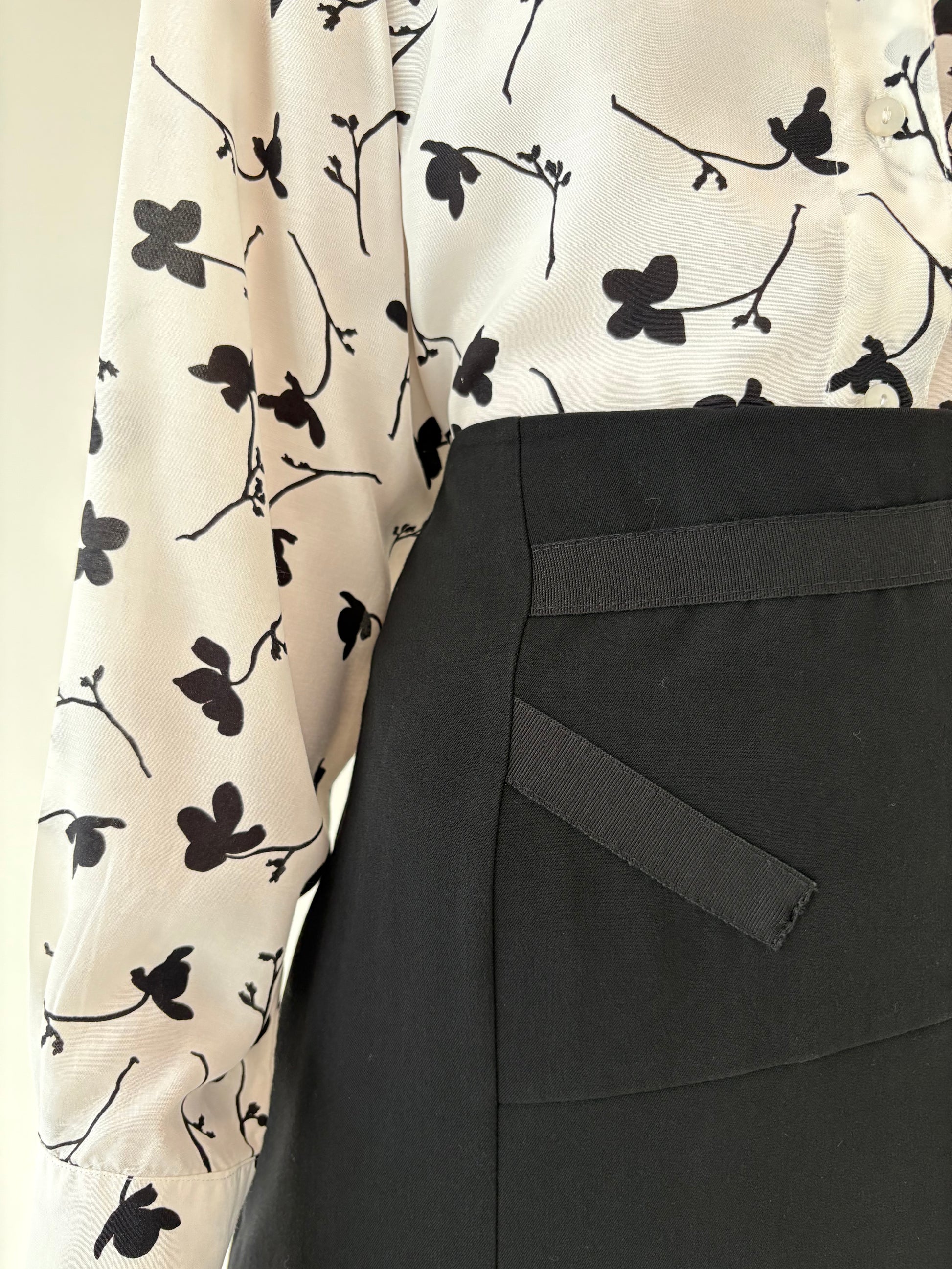 Fustă neagră cu talie înaltă în croi modern elaborat patchwork