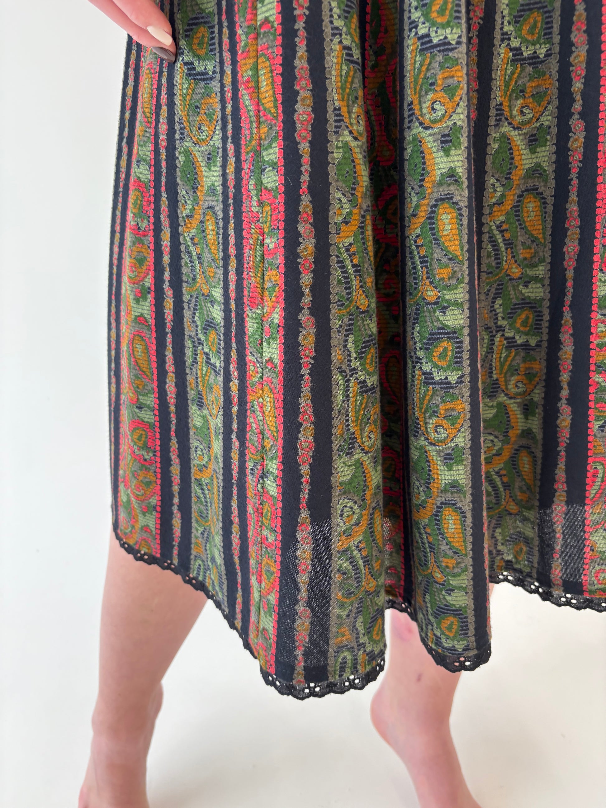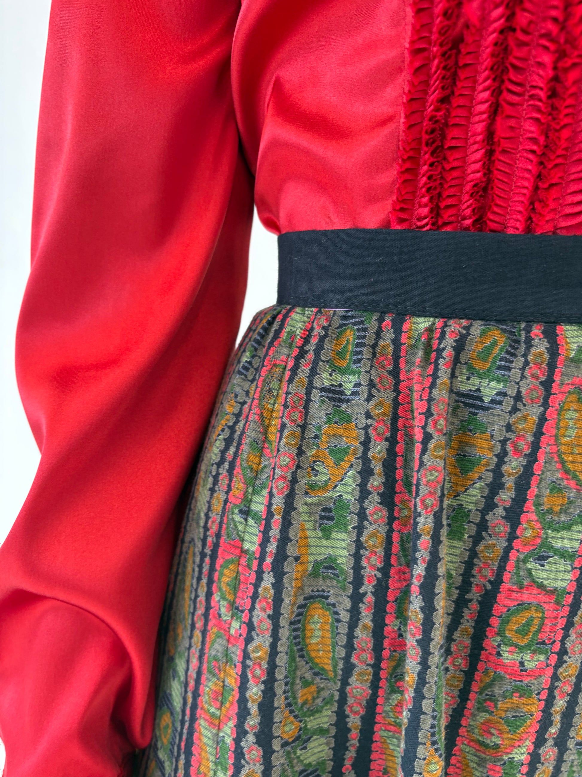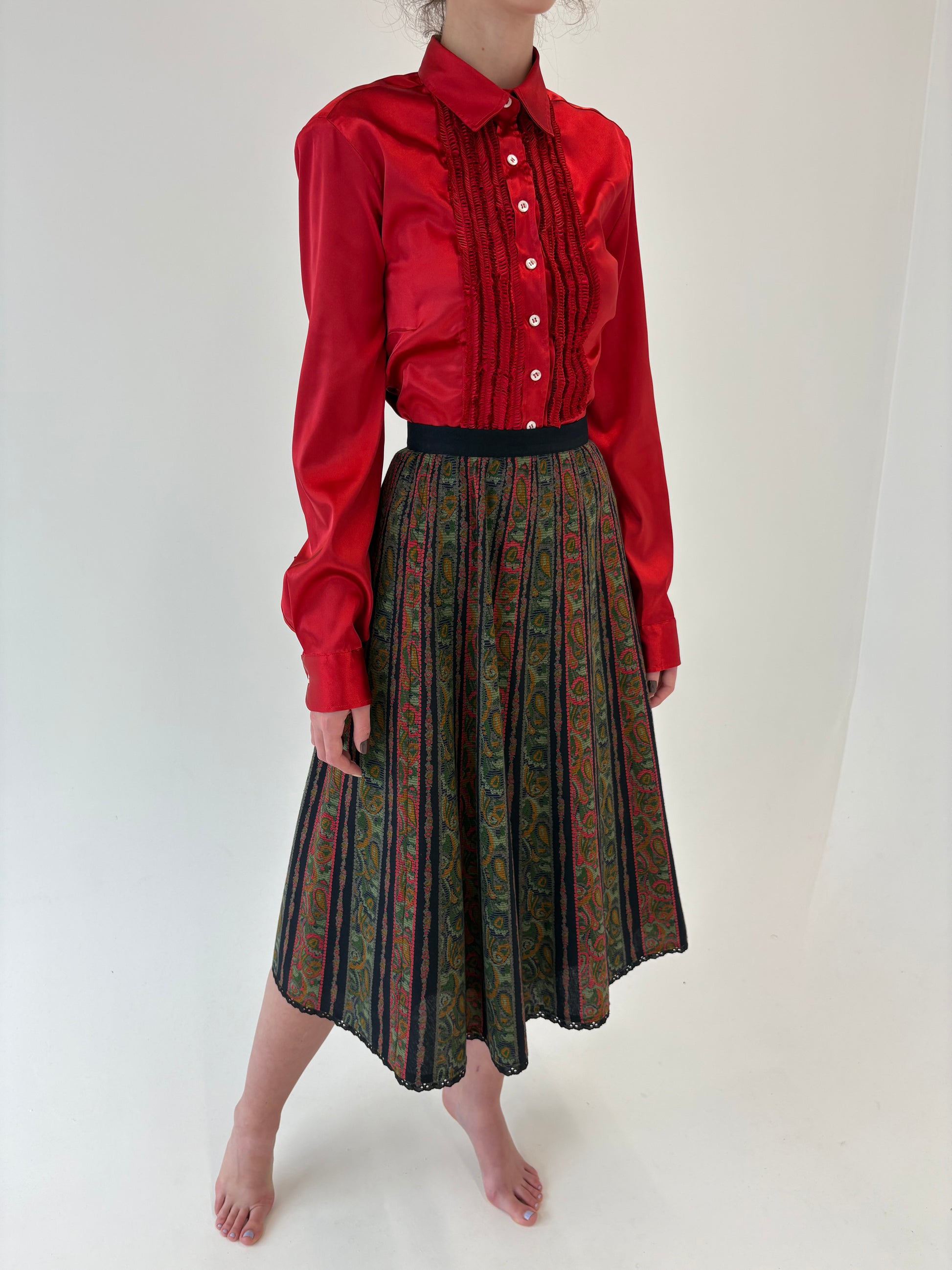 Fusta vintage în combinație sueoeba de culori și croi amplu cu talie ultra înaltă