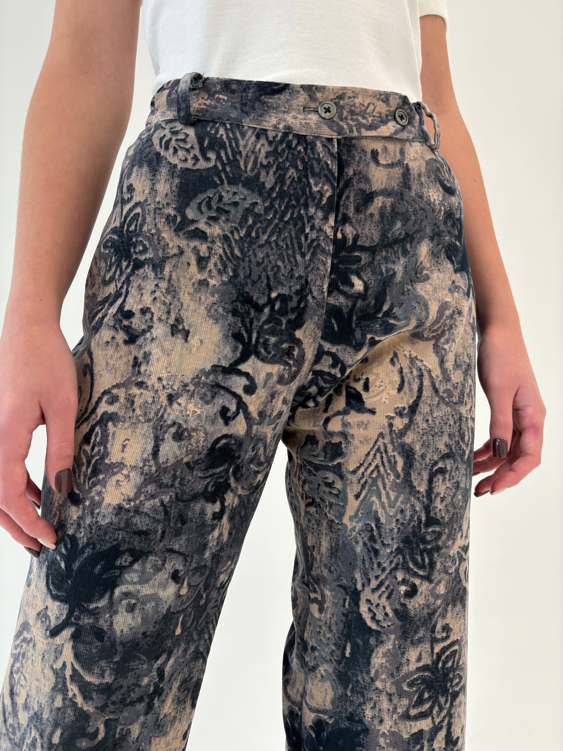 Pantaloni premium din corduroy jeans blue și camel în croi drept