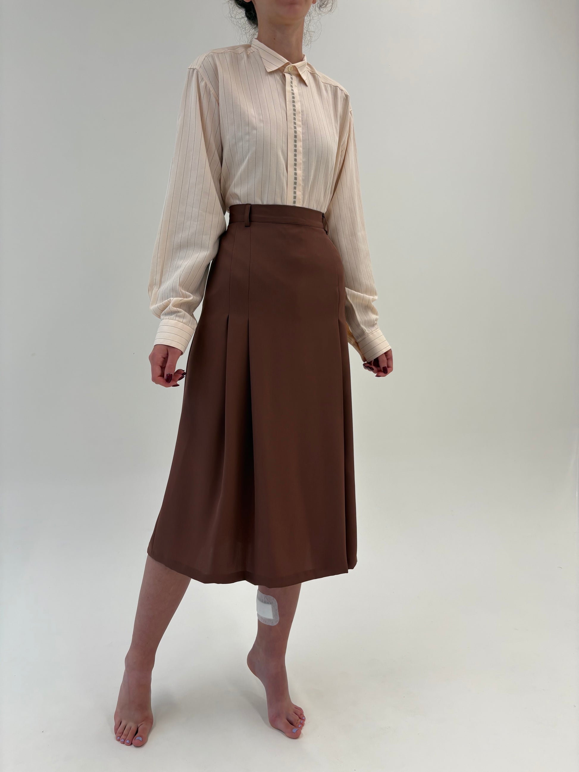 Fustă vintage chestnut brown cu pliseuri și talie ultra înaltă marcată