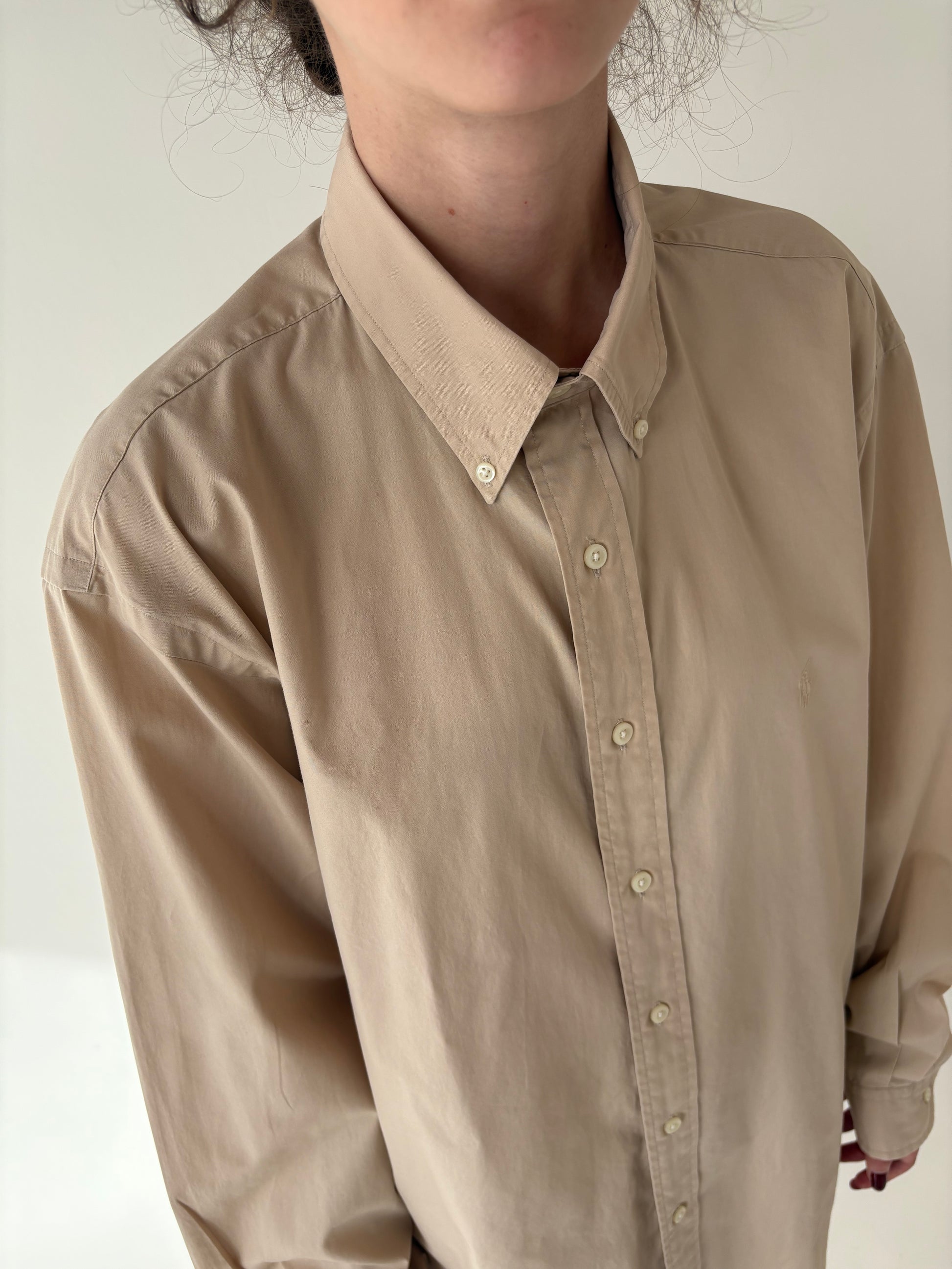 Cămașa camel Ralph Lauren din bumbac plin în croi lejer