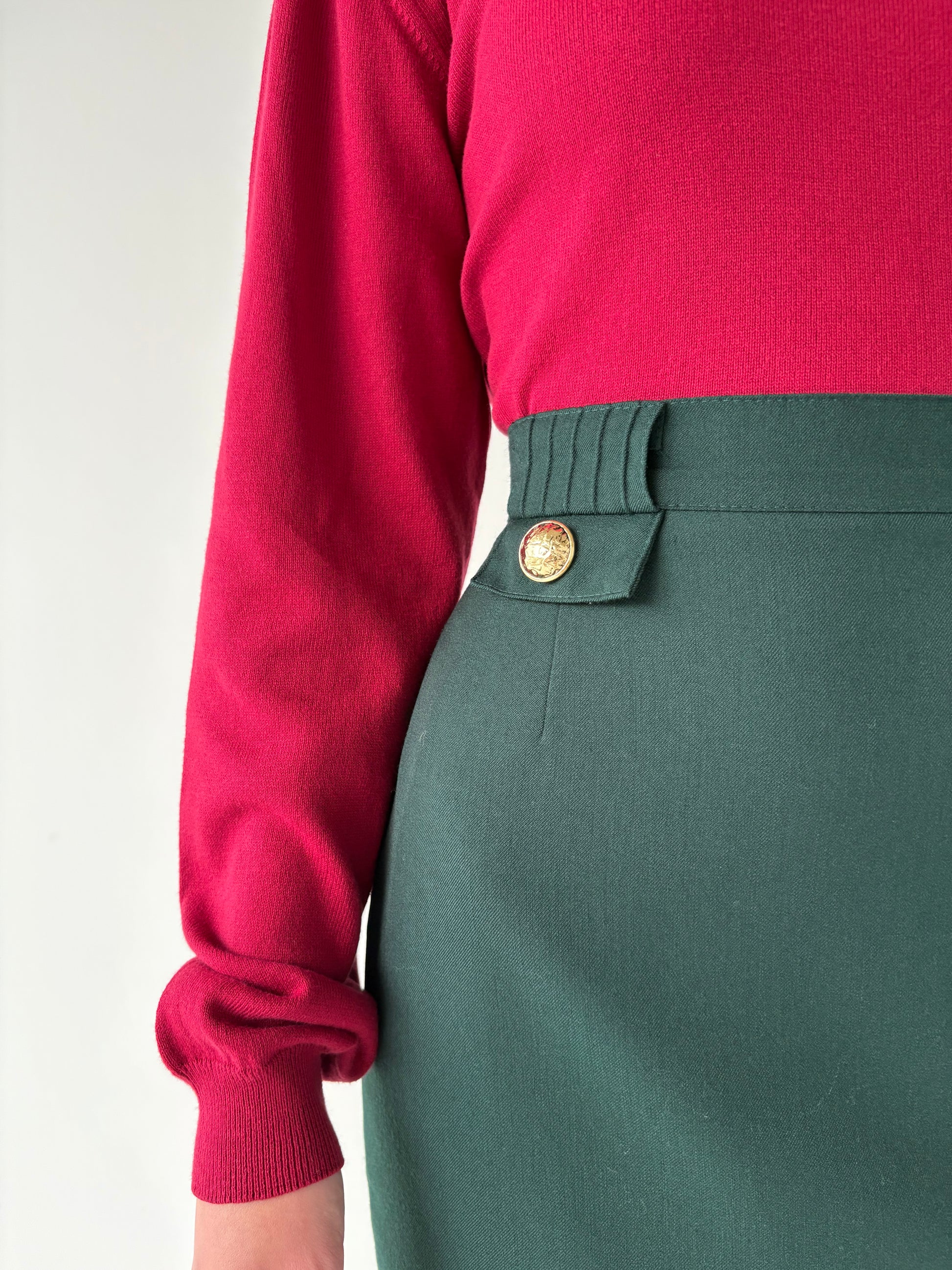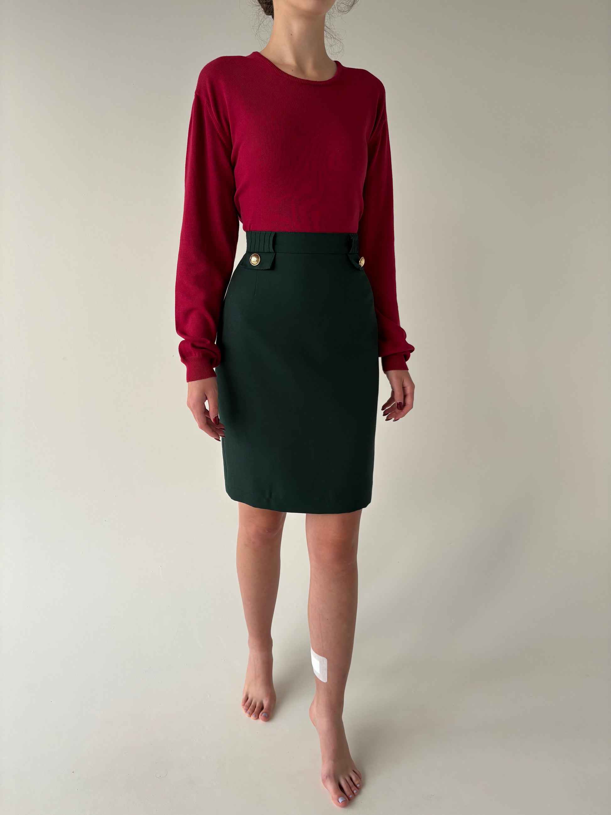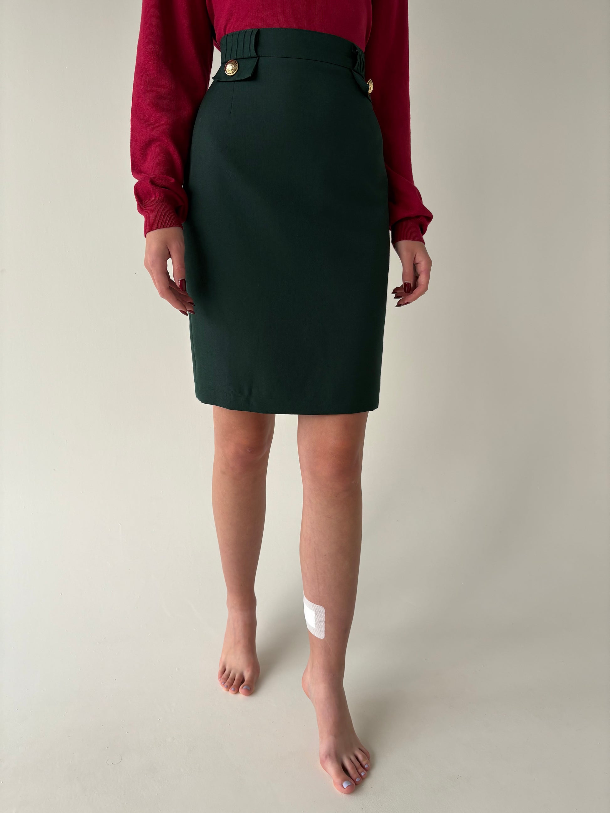 Fustă conică cu talie ultra înaltă forest green din lana extrafina
