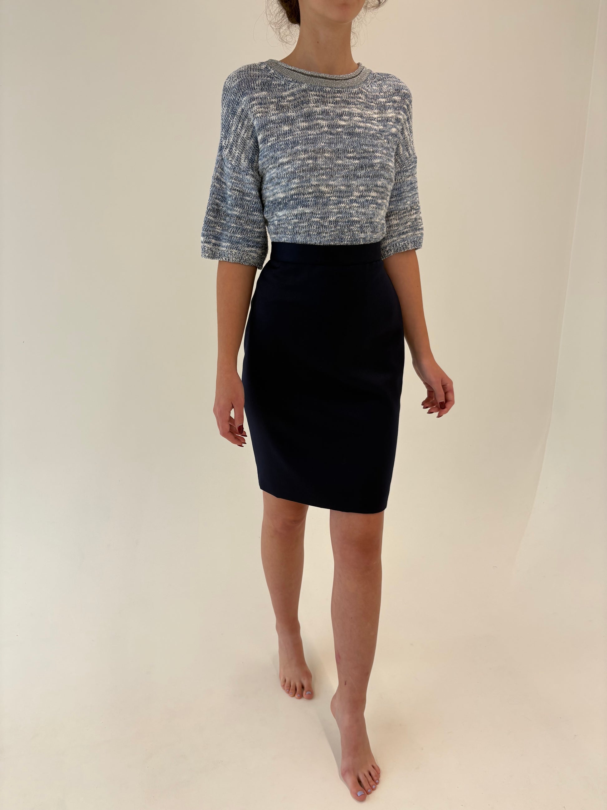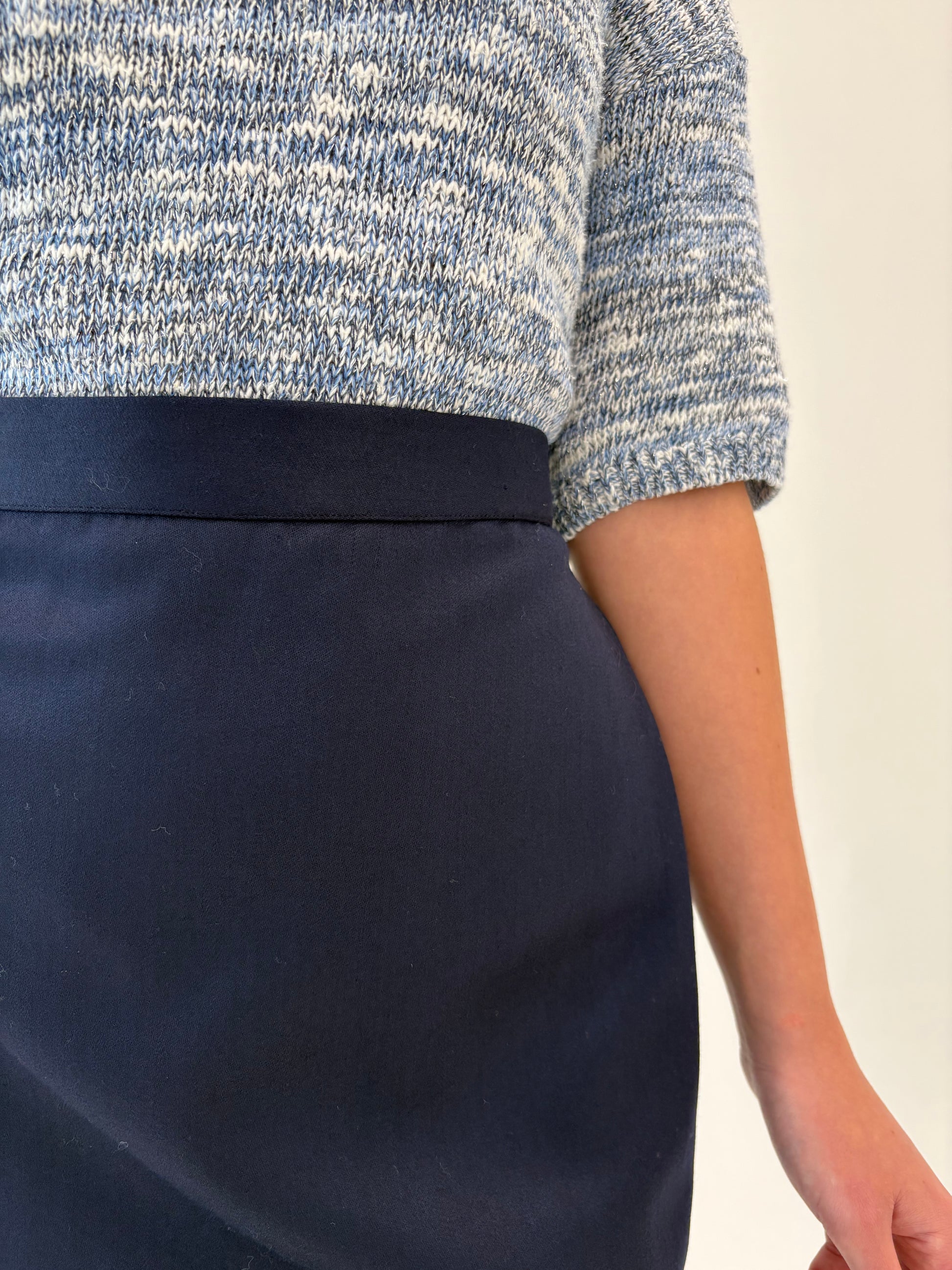Fustă Navy conică cu talie ultra ianlta marcată din lana extrafina