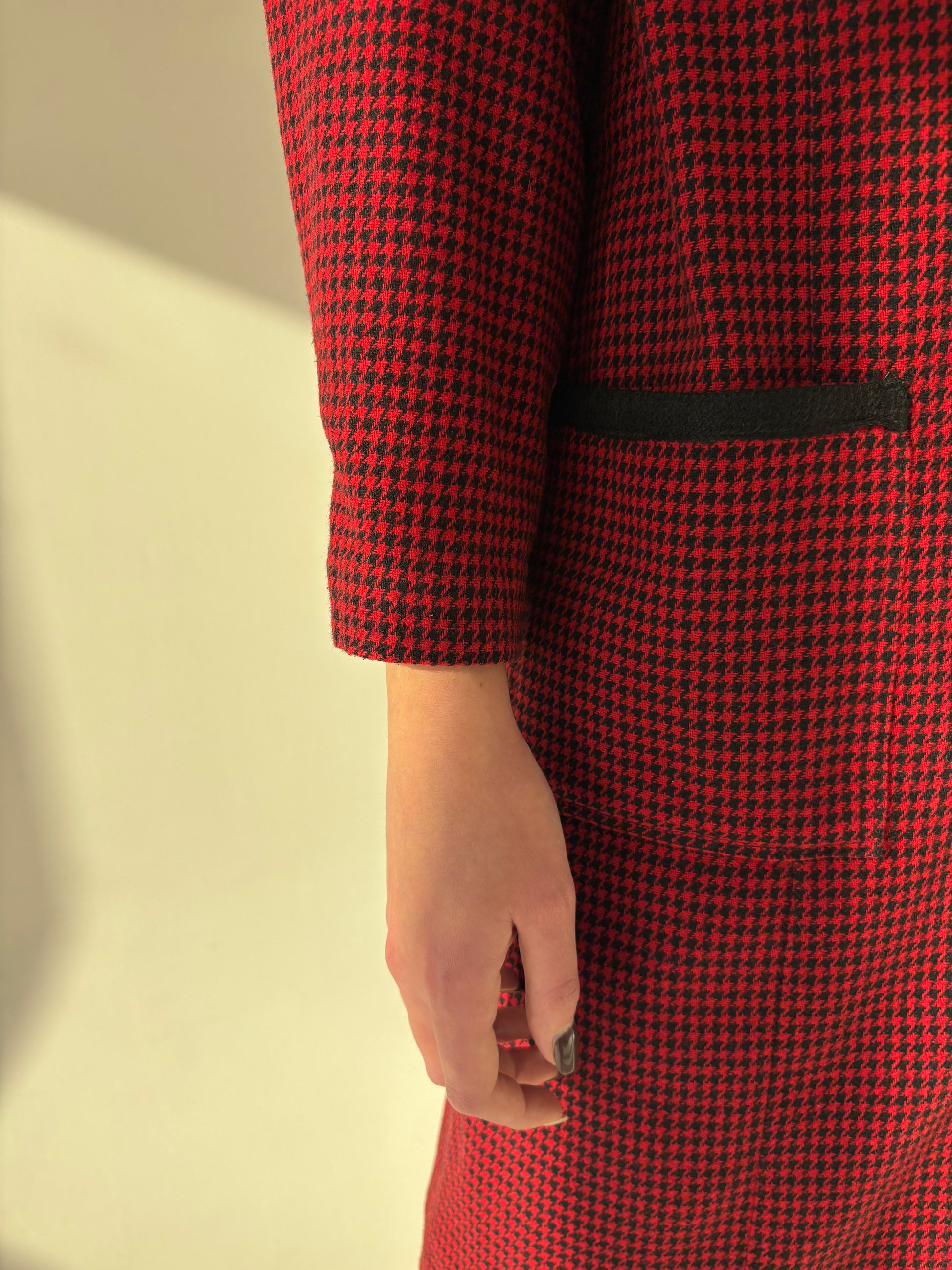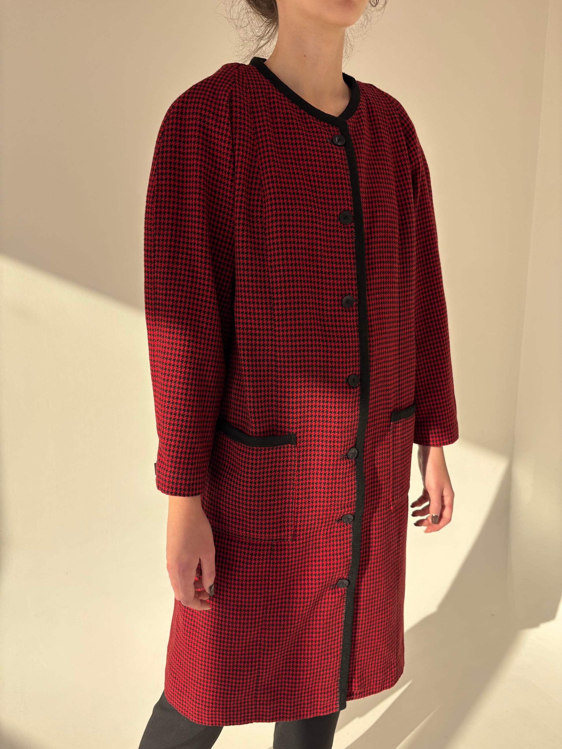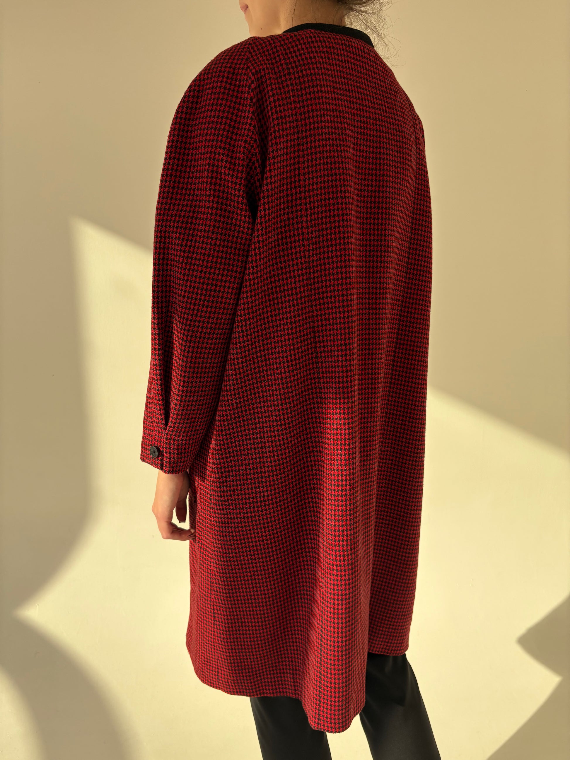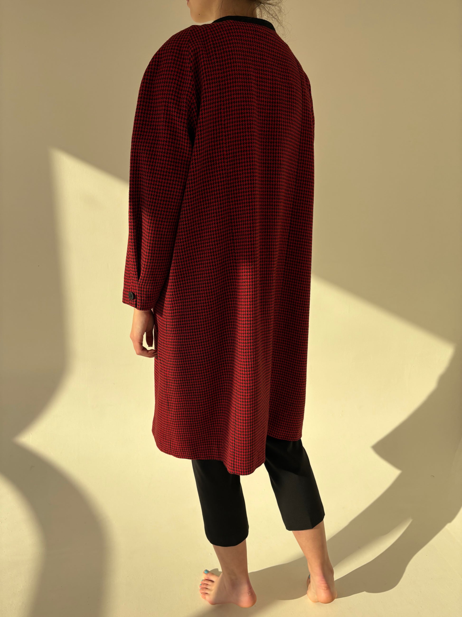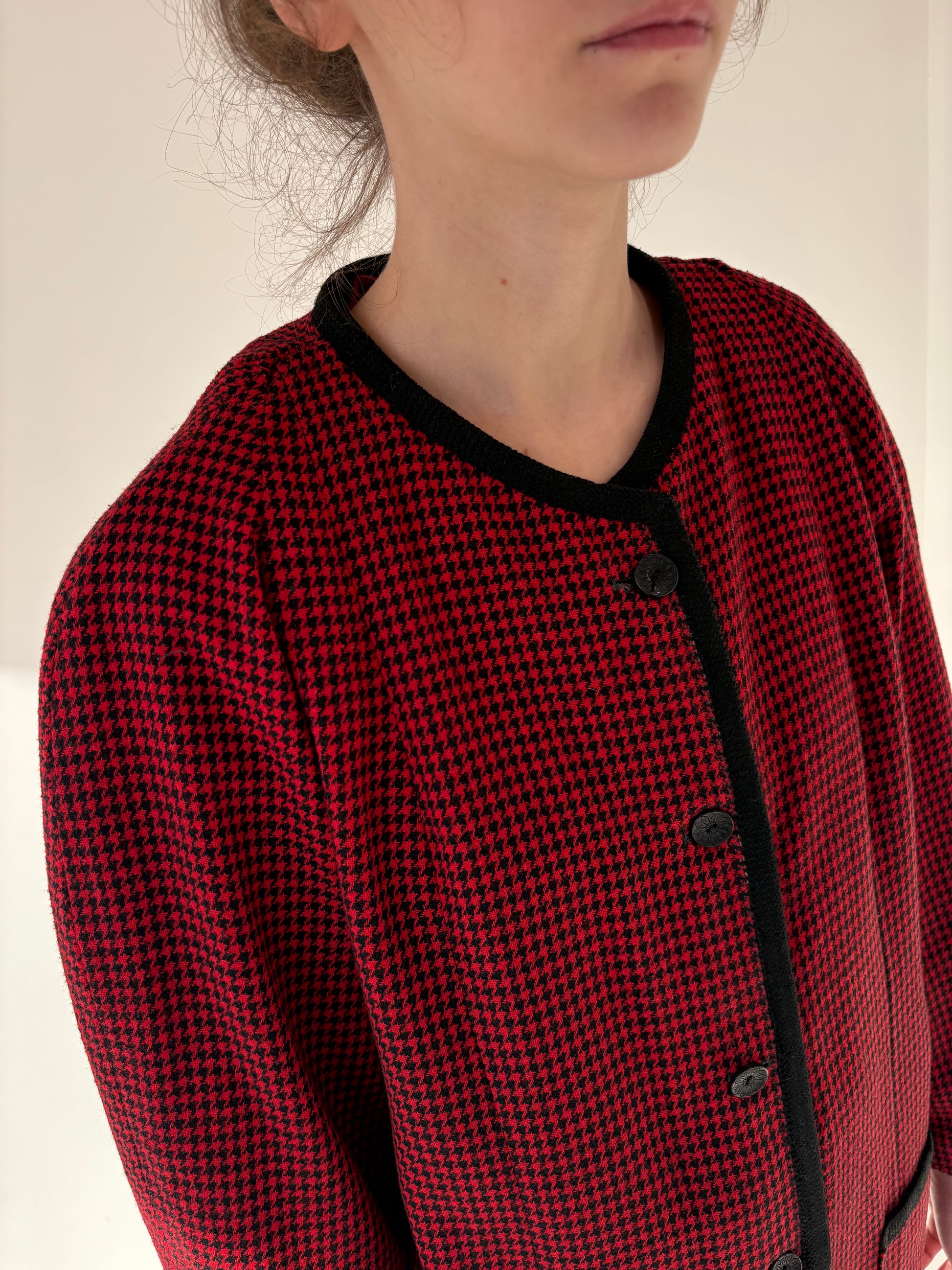 Pardesiu on stil Chanel dark cherry în carouri fine din lana