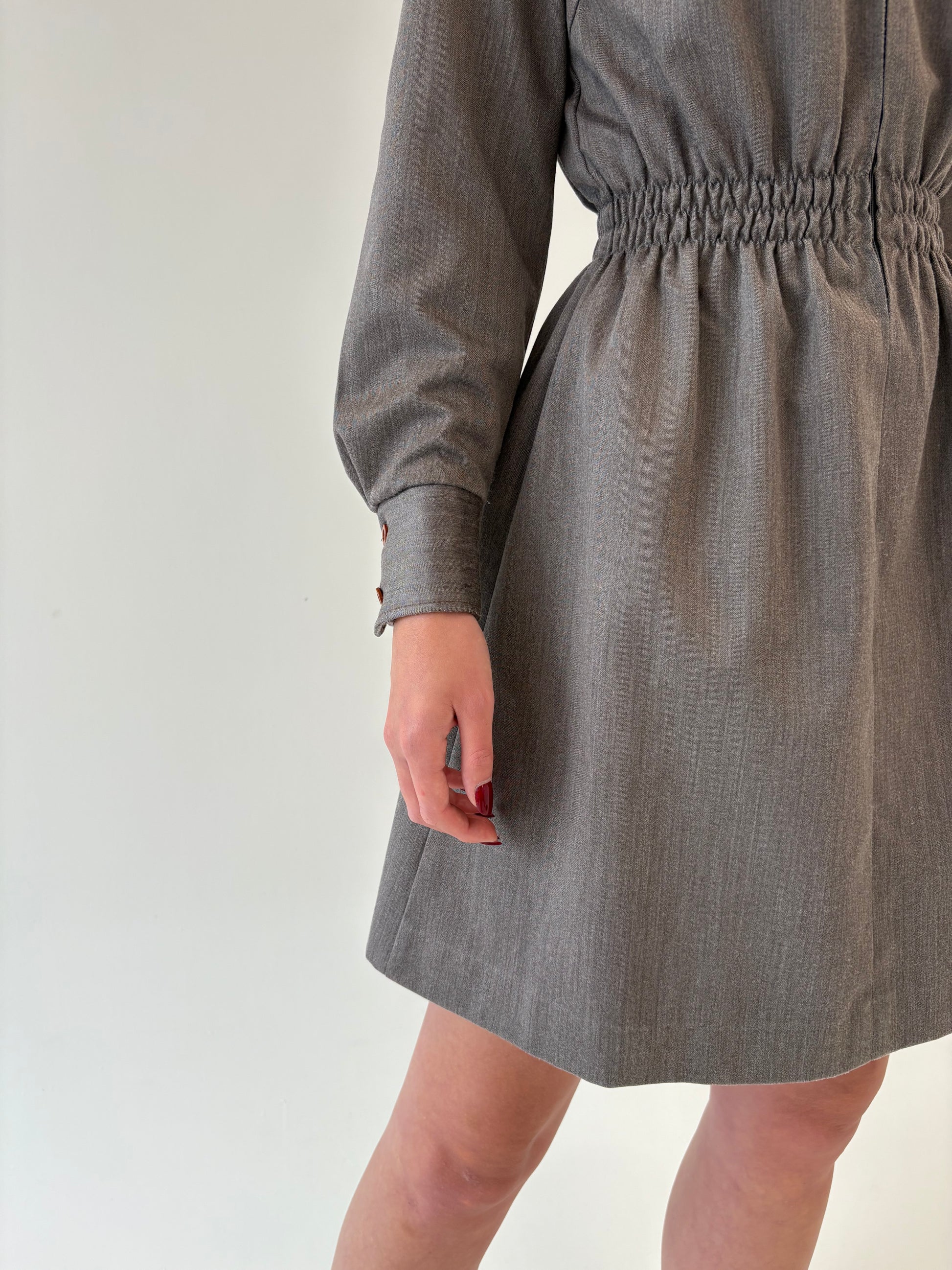 Rochie old vintage anii 70 graphite gray din stofă cu talie ultra înaltă
