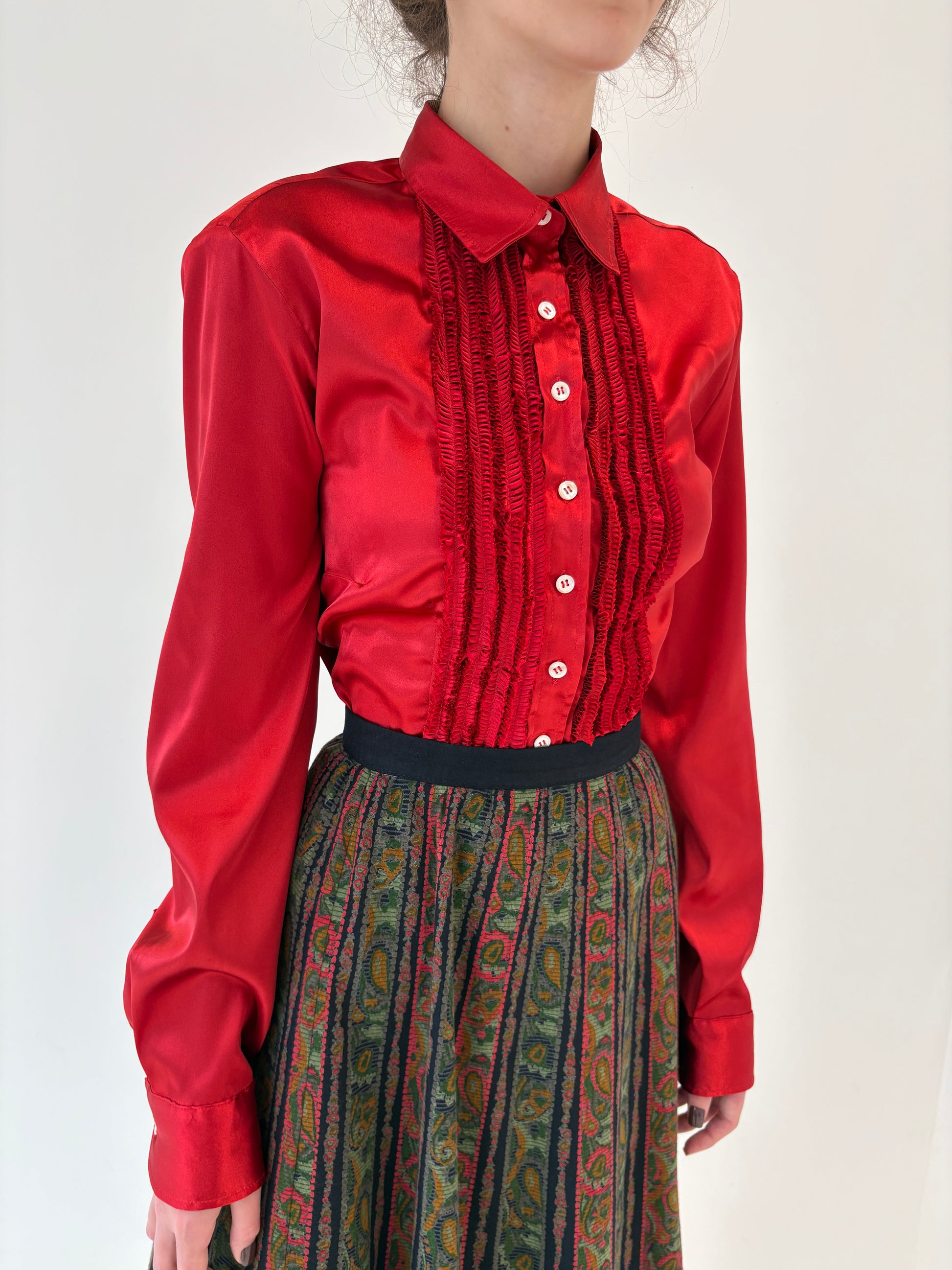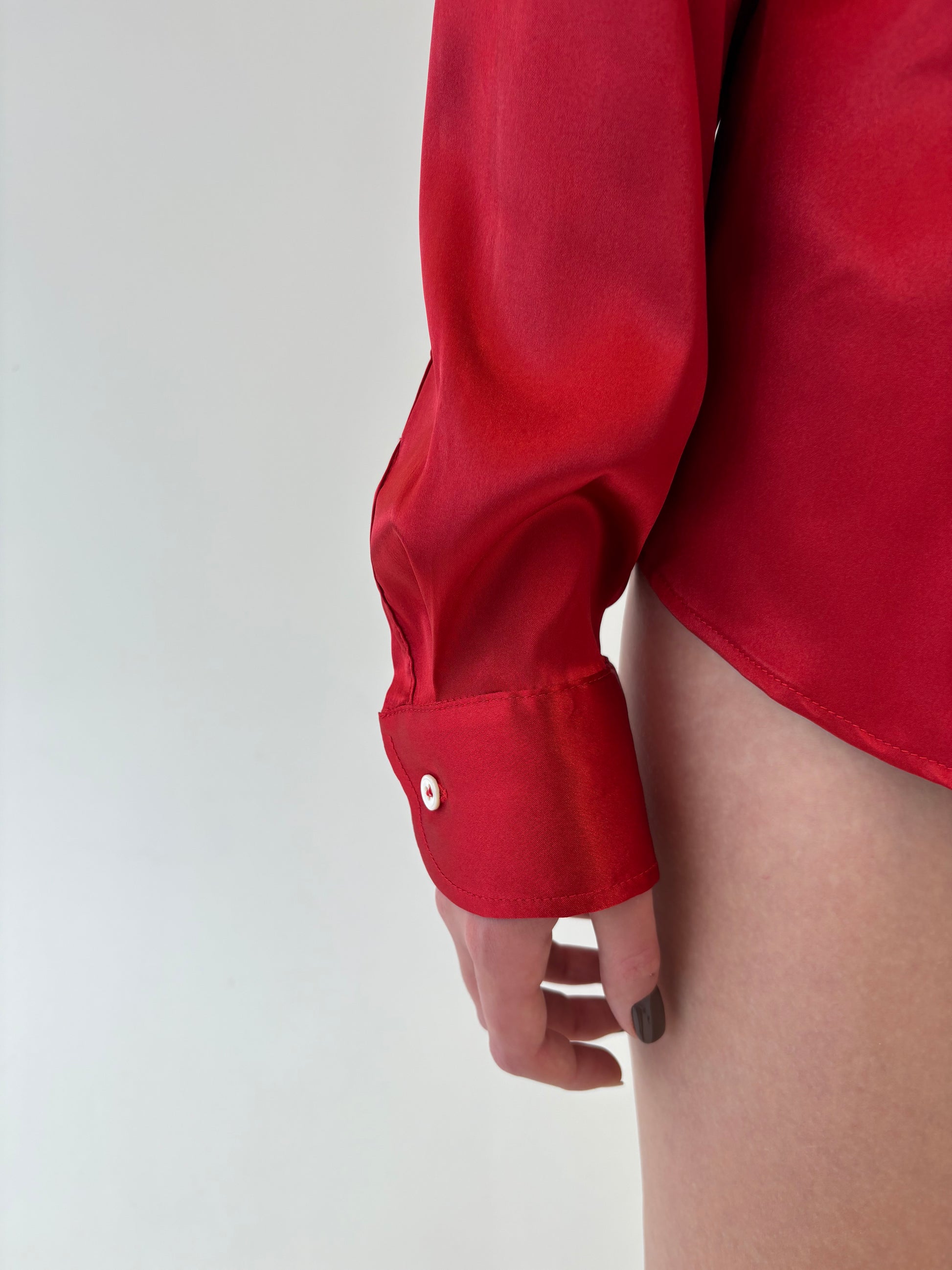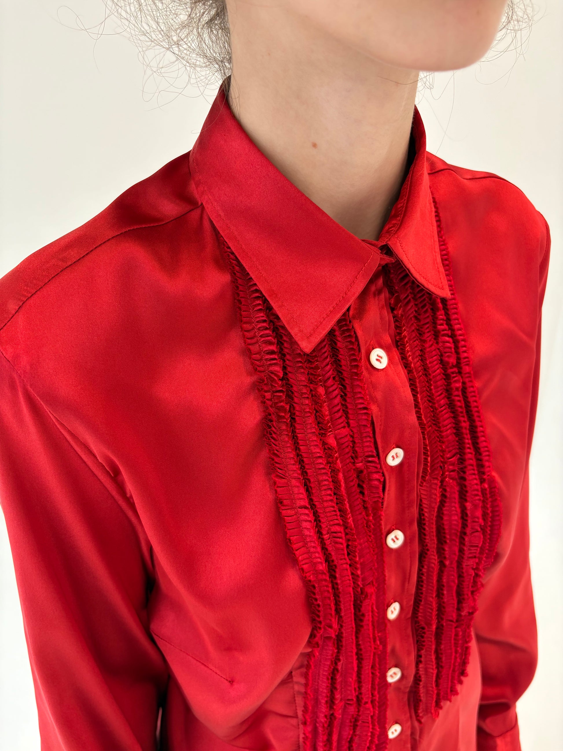 Cămașa roșu clasic satinata cu mini volanase de la zi la seară