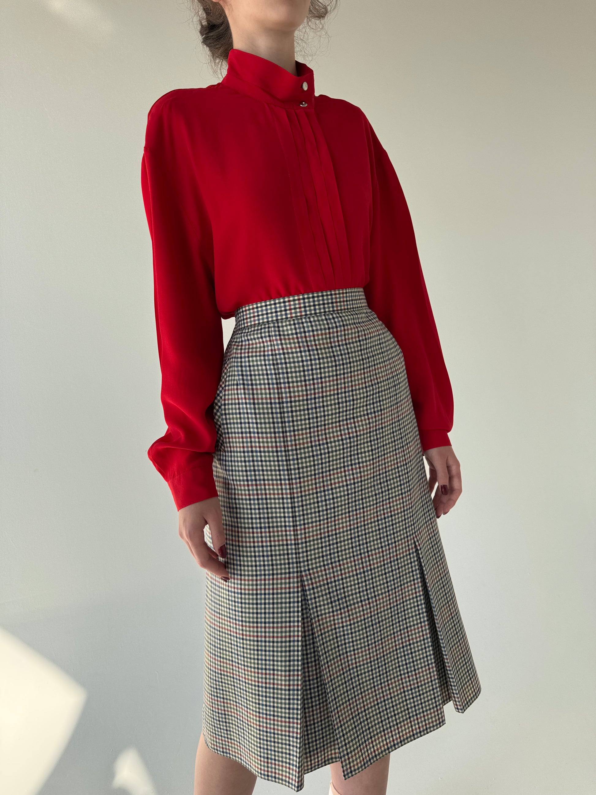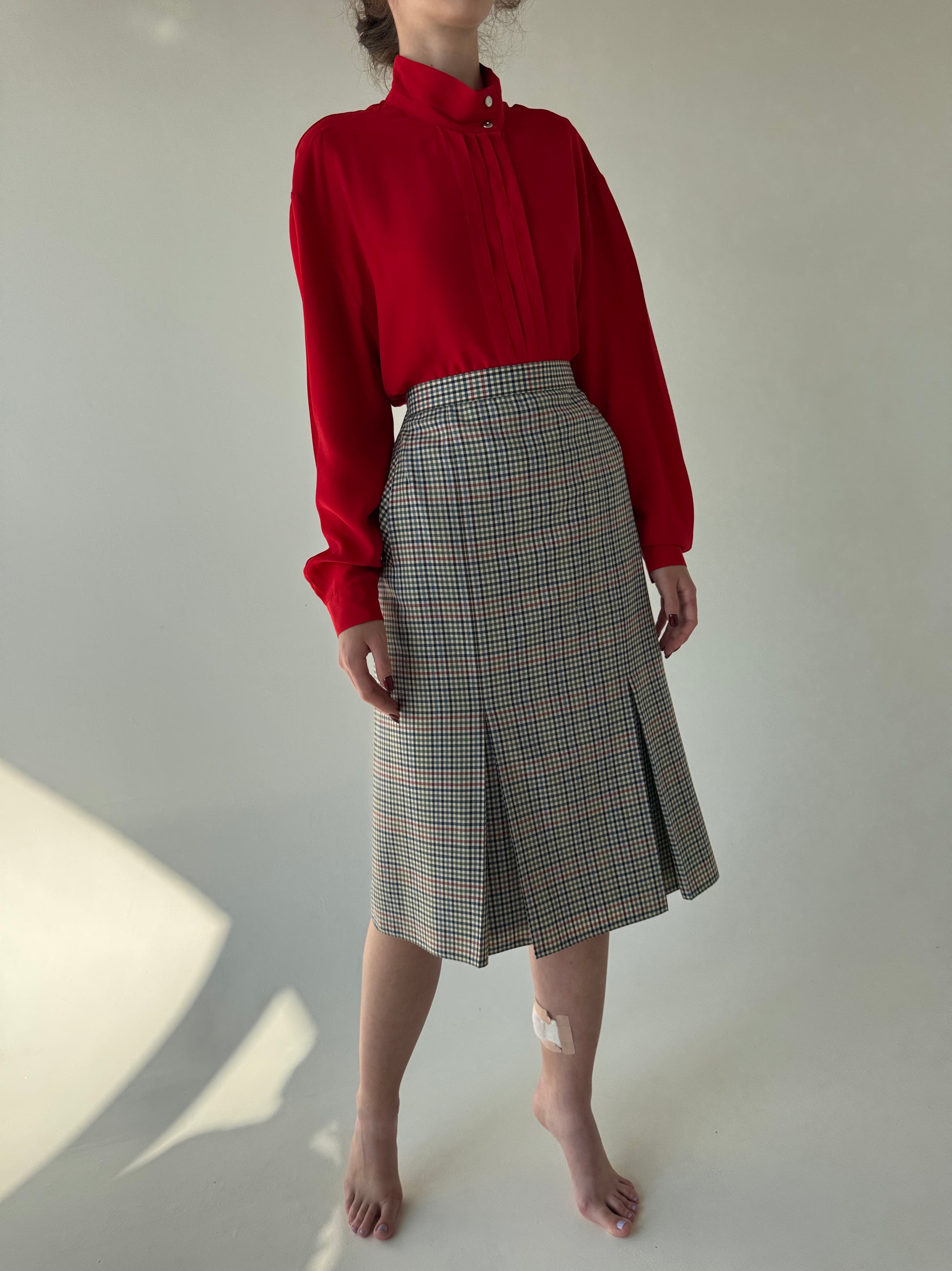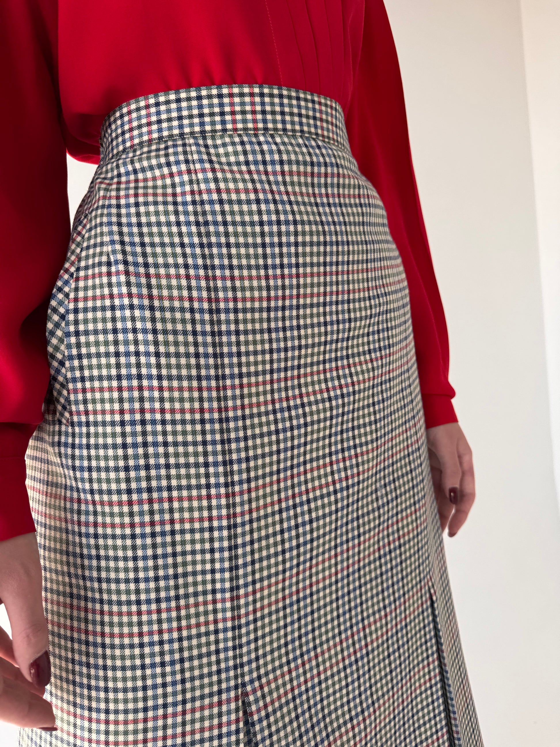 Fustă vinatge în carouri din lana extrafina cu talie ultra înaltă marcată