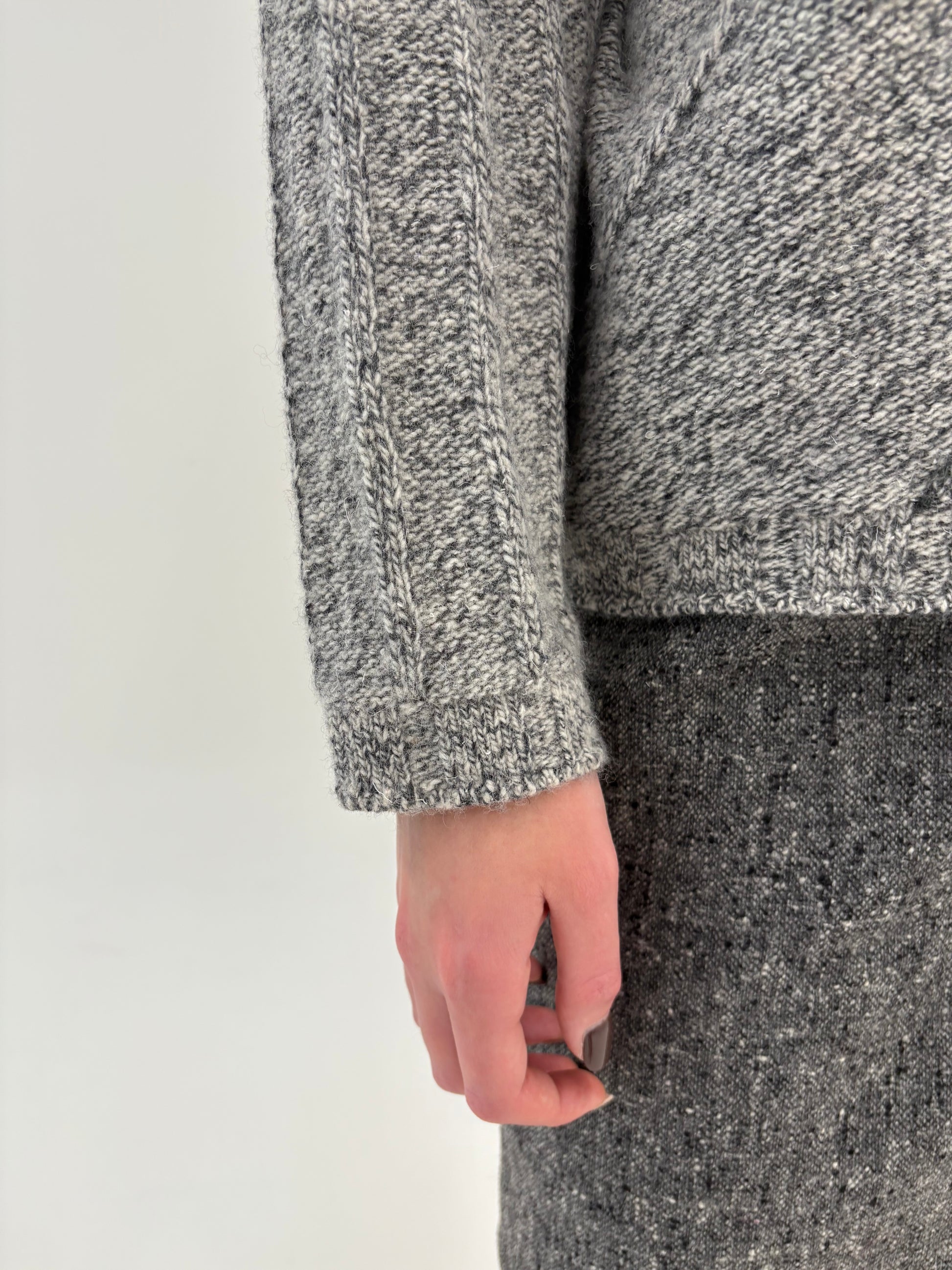 Maleta groasă petite cu guler sal din lana texturată cu inserții ivoire și negre
