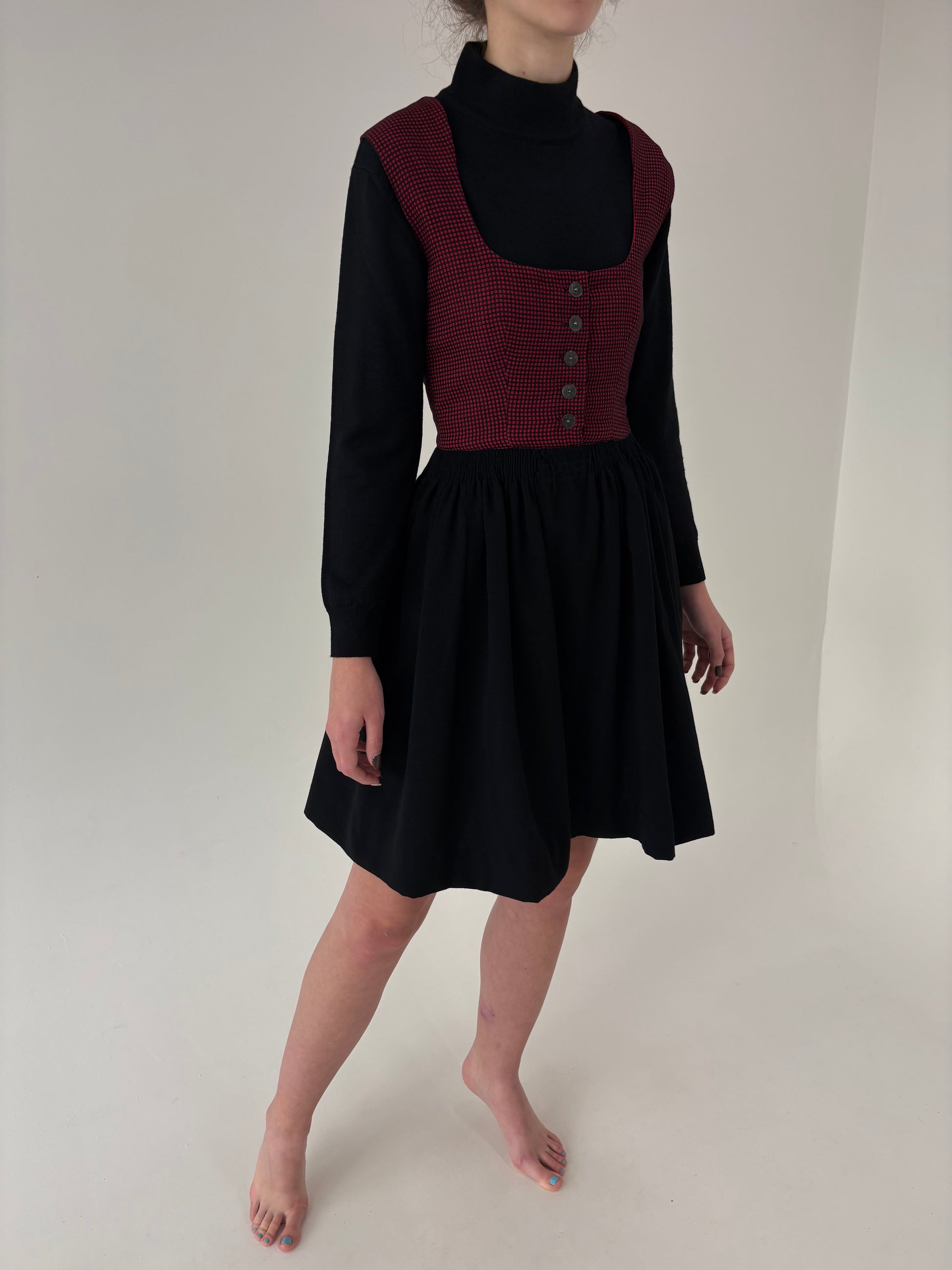 Rochie vintage din 2 tipuri de lana cu corsaj și fusta extrem de amplă