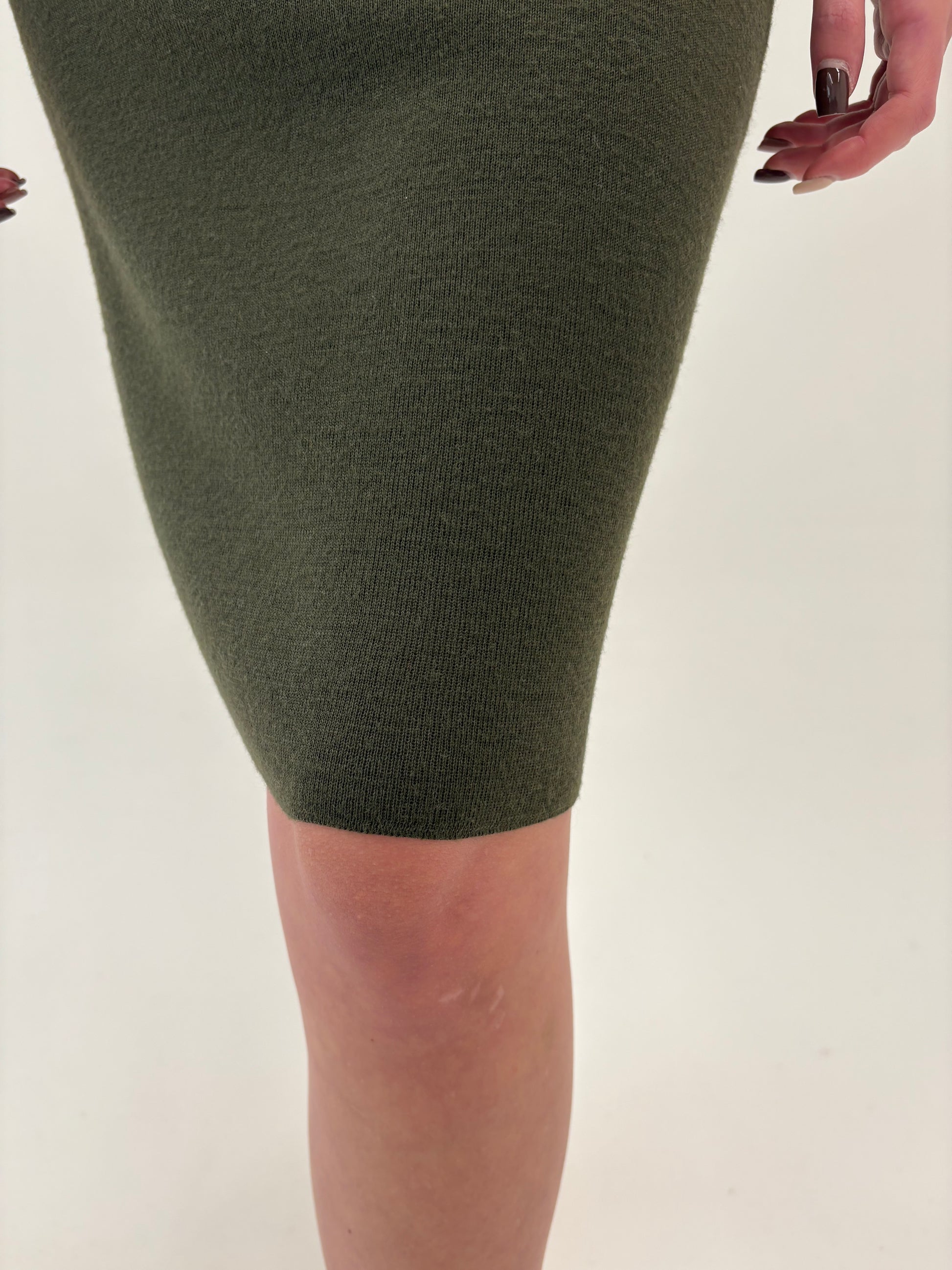 Fustă forest green din tricot de lana extrafina de gramaj mare conică