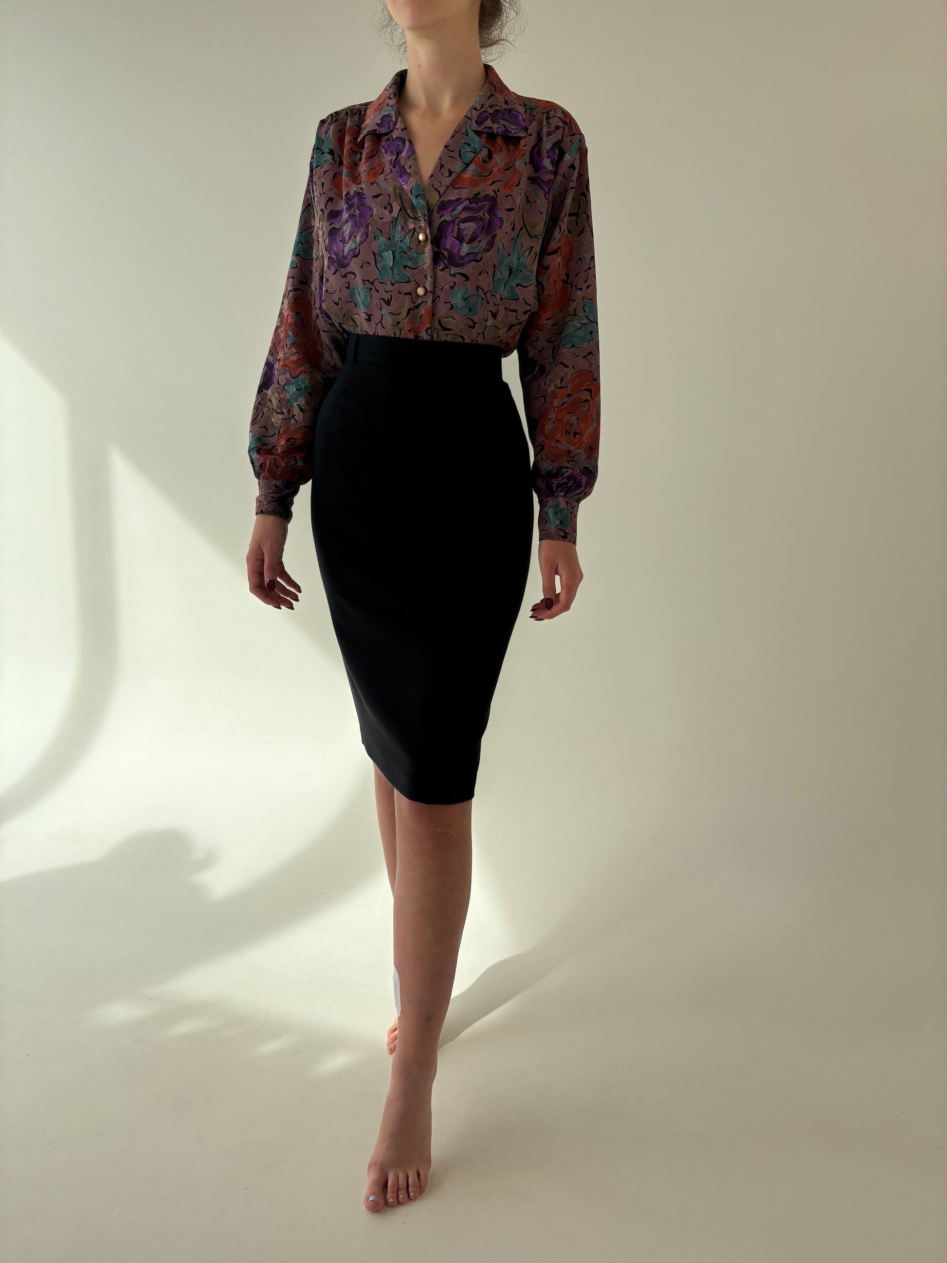 Fustă neagră conică cu talie ultra înaltă elastică din mix de lana extrafina