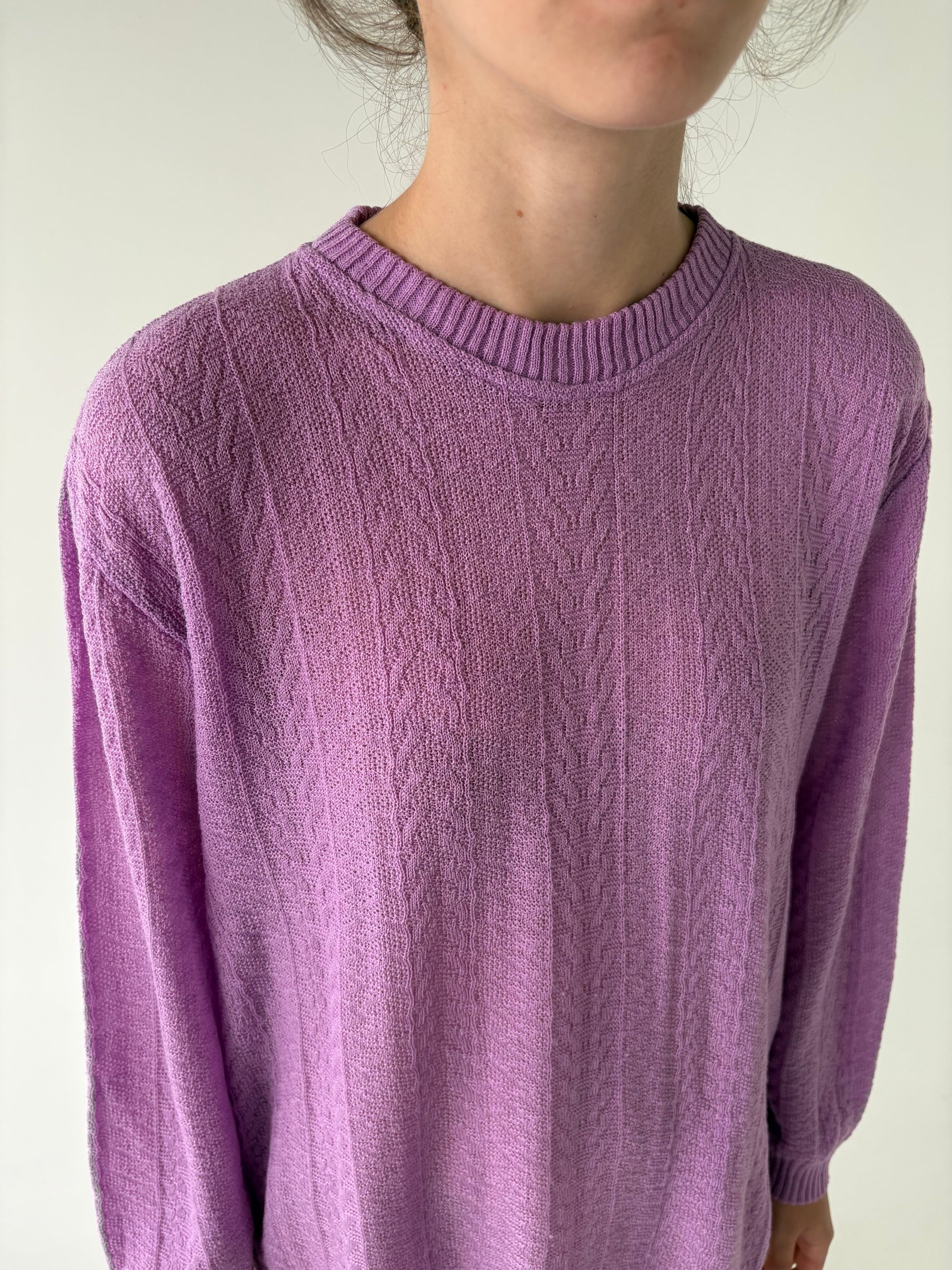 Pulover la lavandă cu torsade din mix de lana extrafina