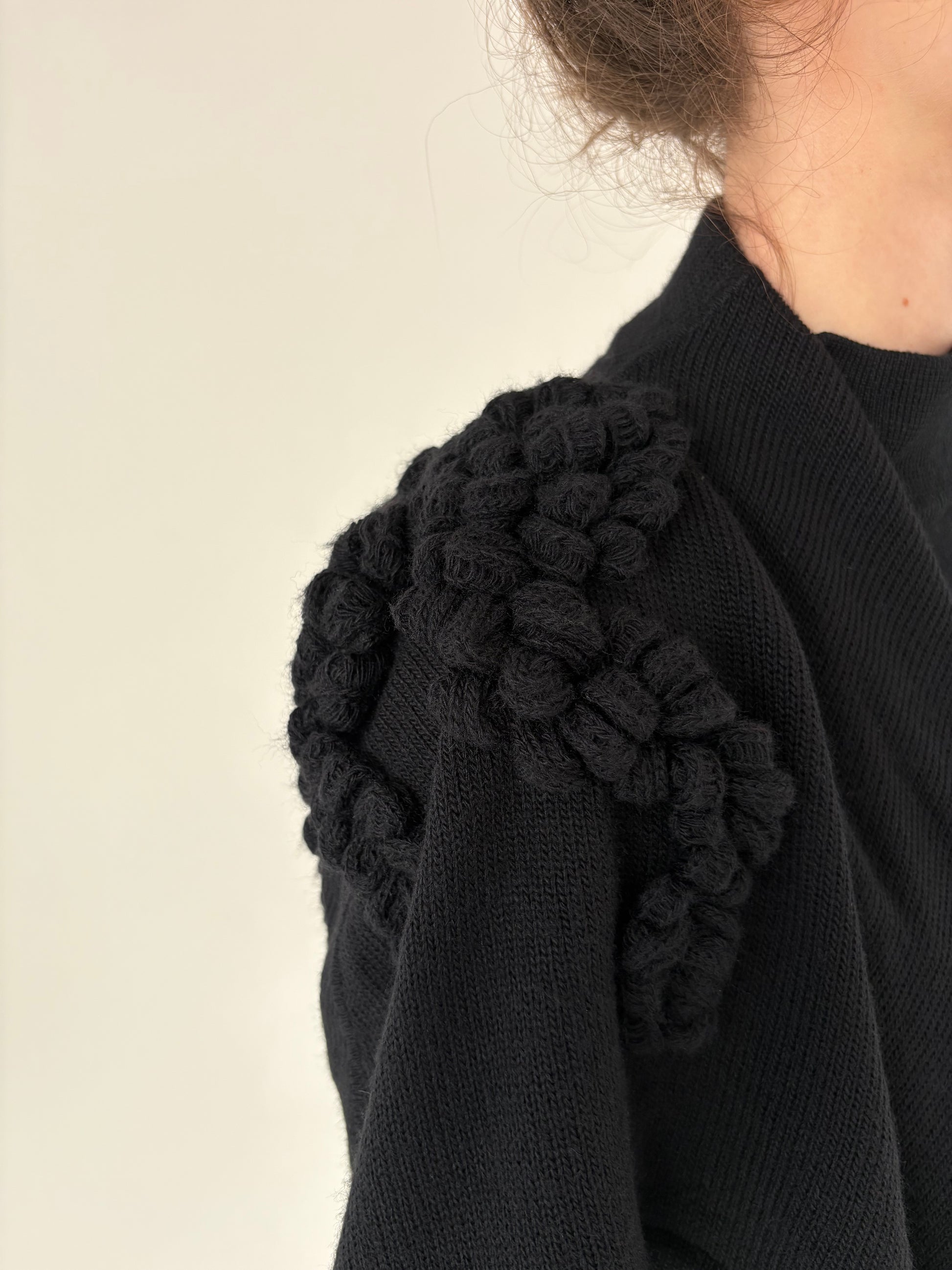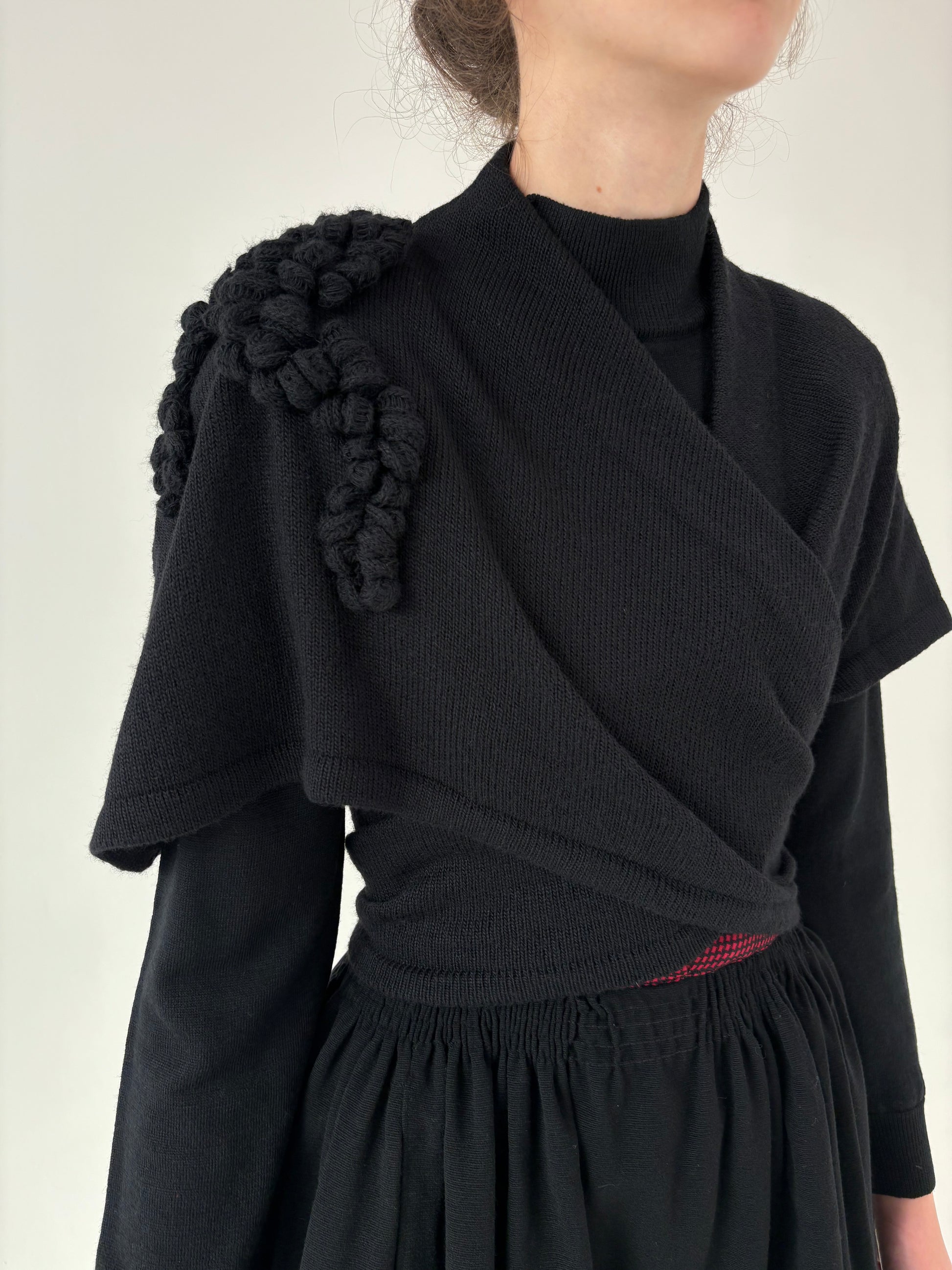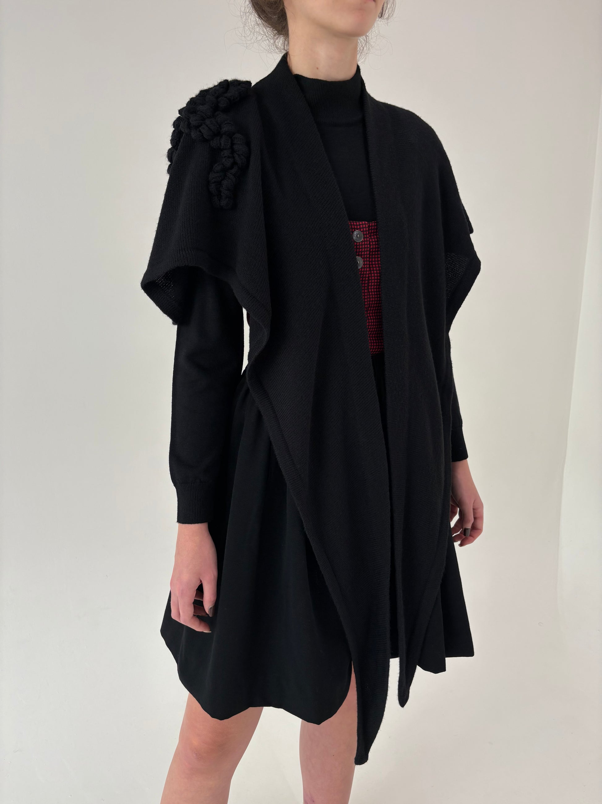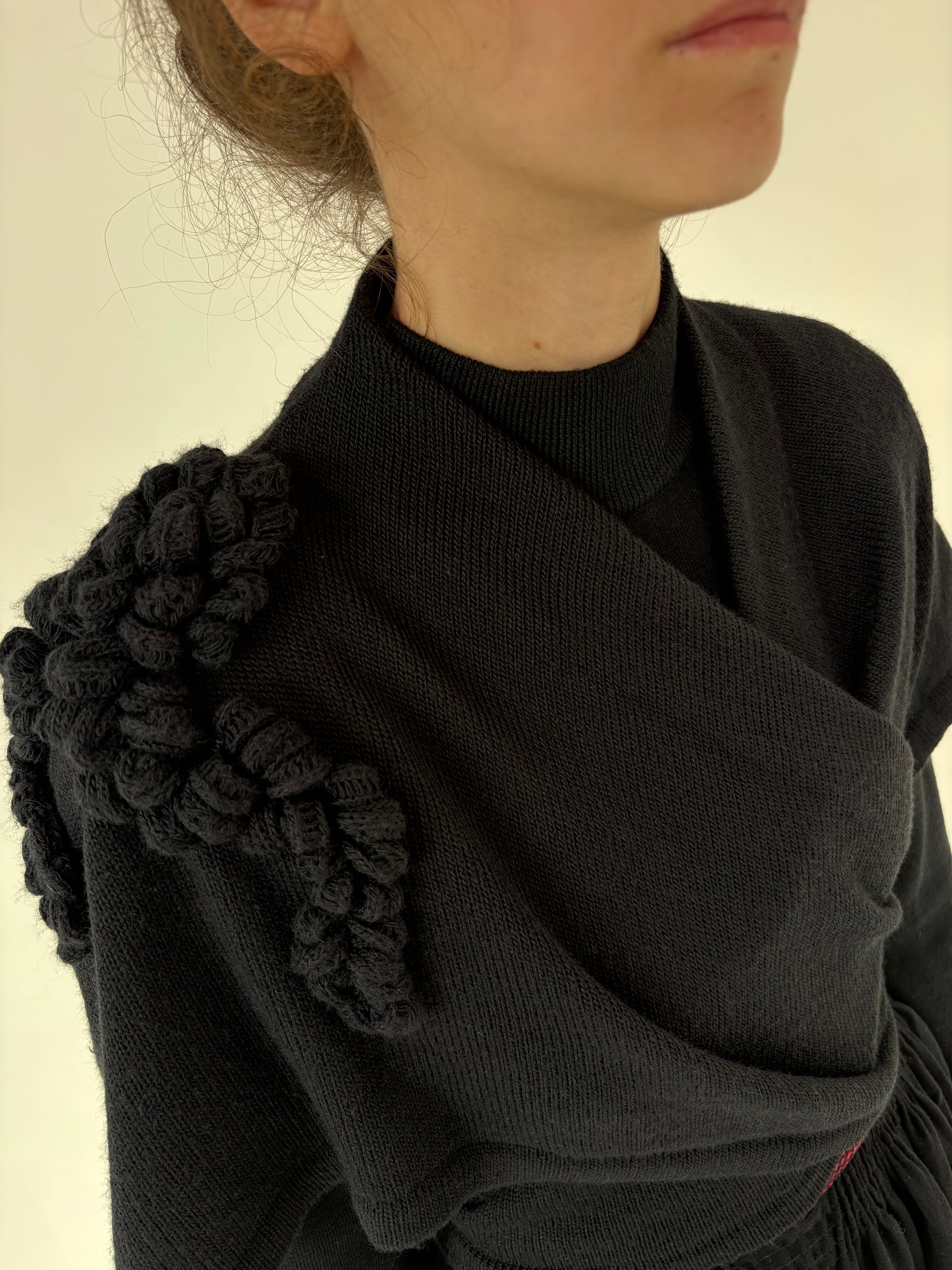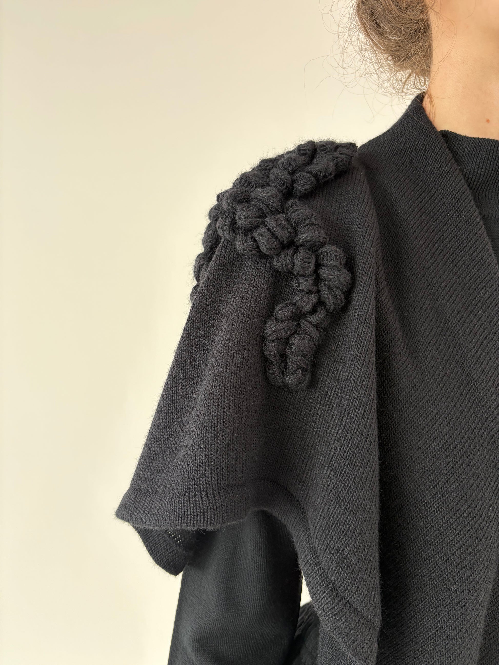 Capă neagră italiană cu aplicație 3D din lana extrafina