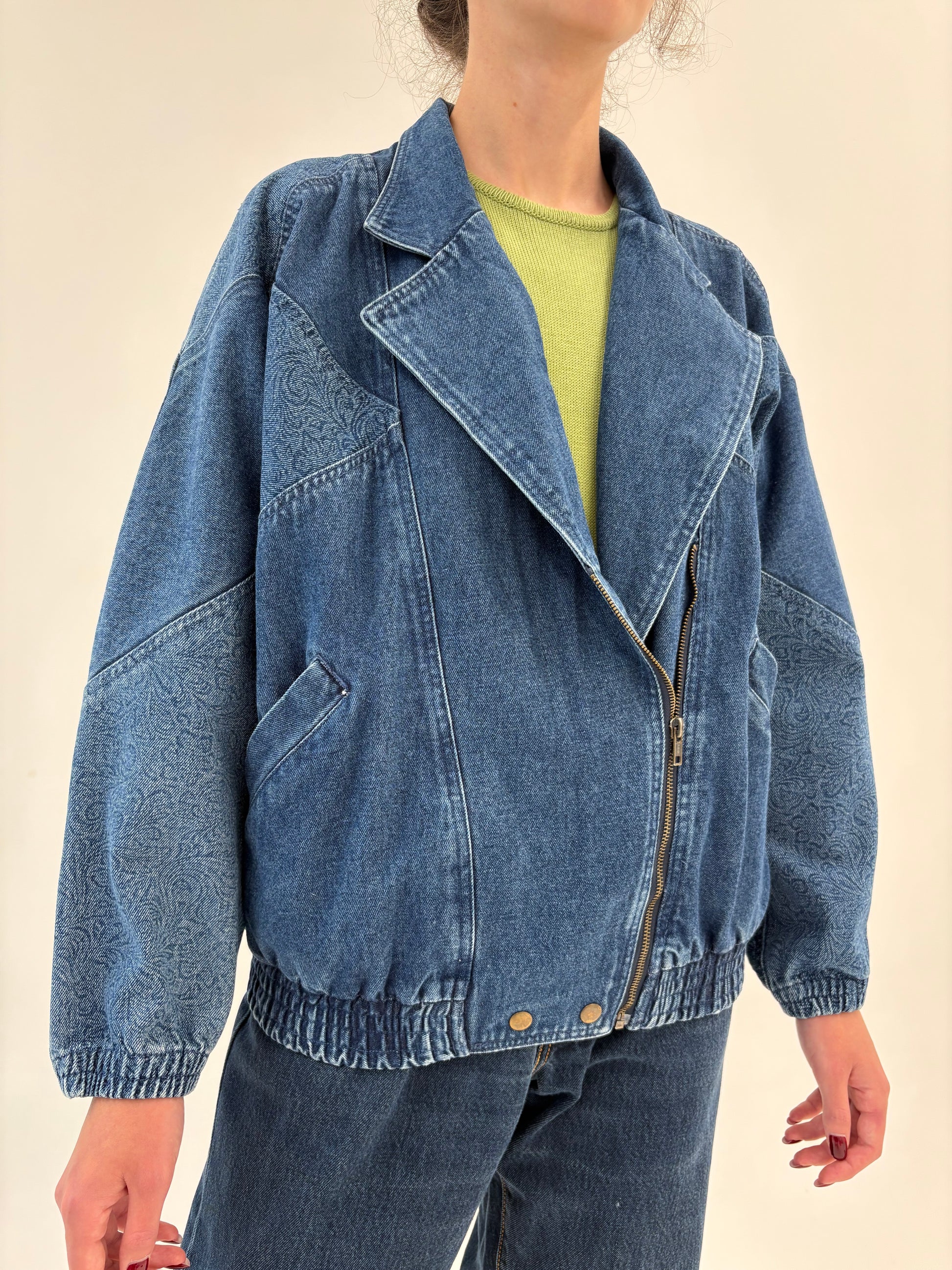 Geacă Old vintage din jeans sfârșit de 80 în croi tip bomber