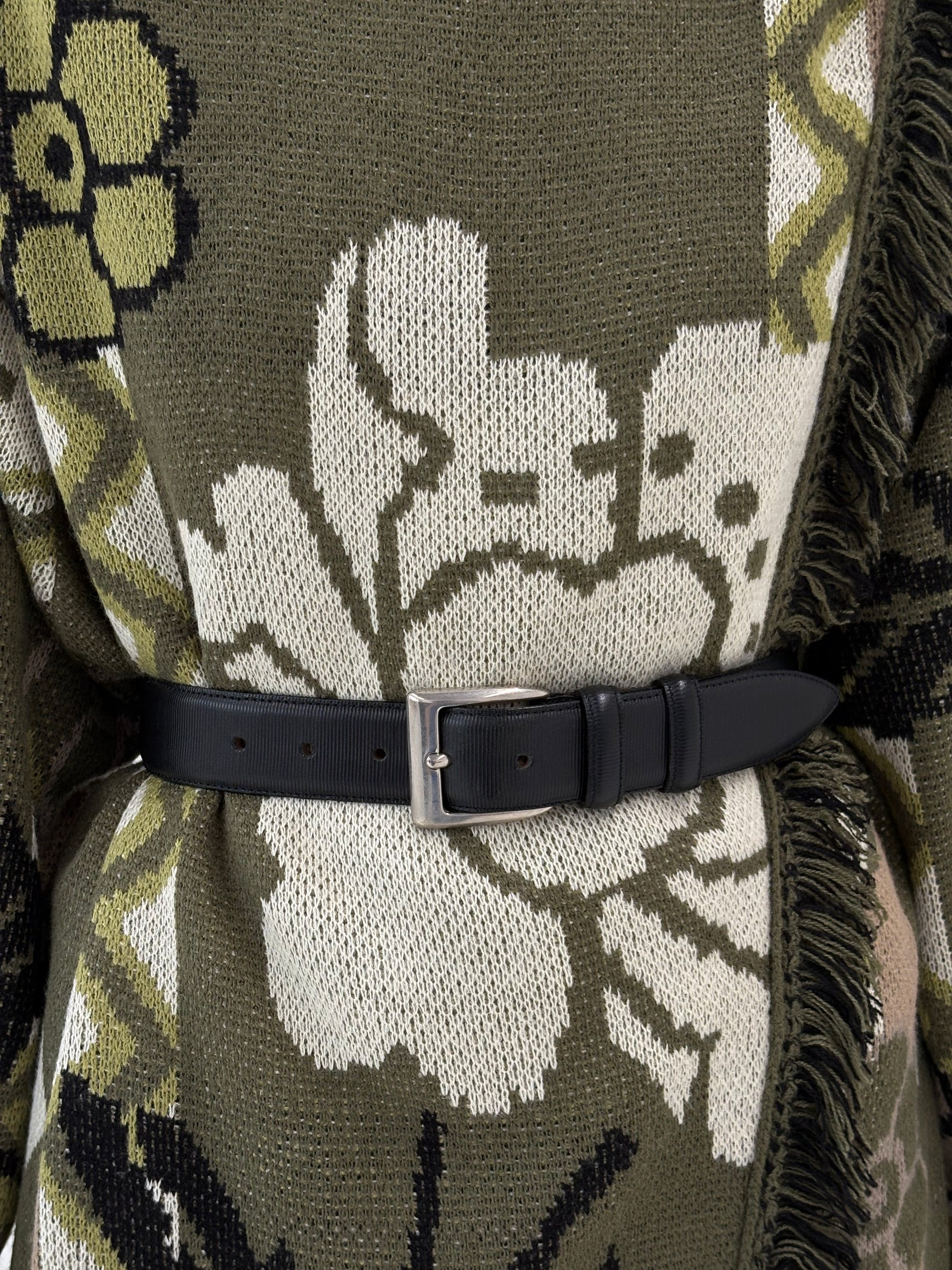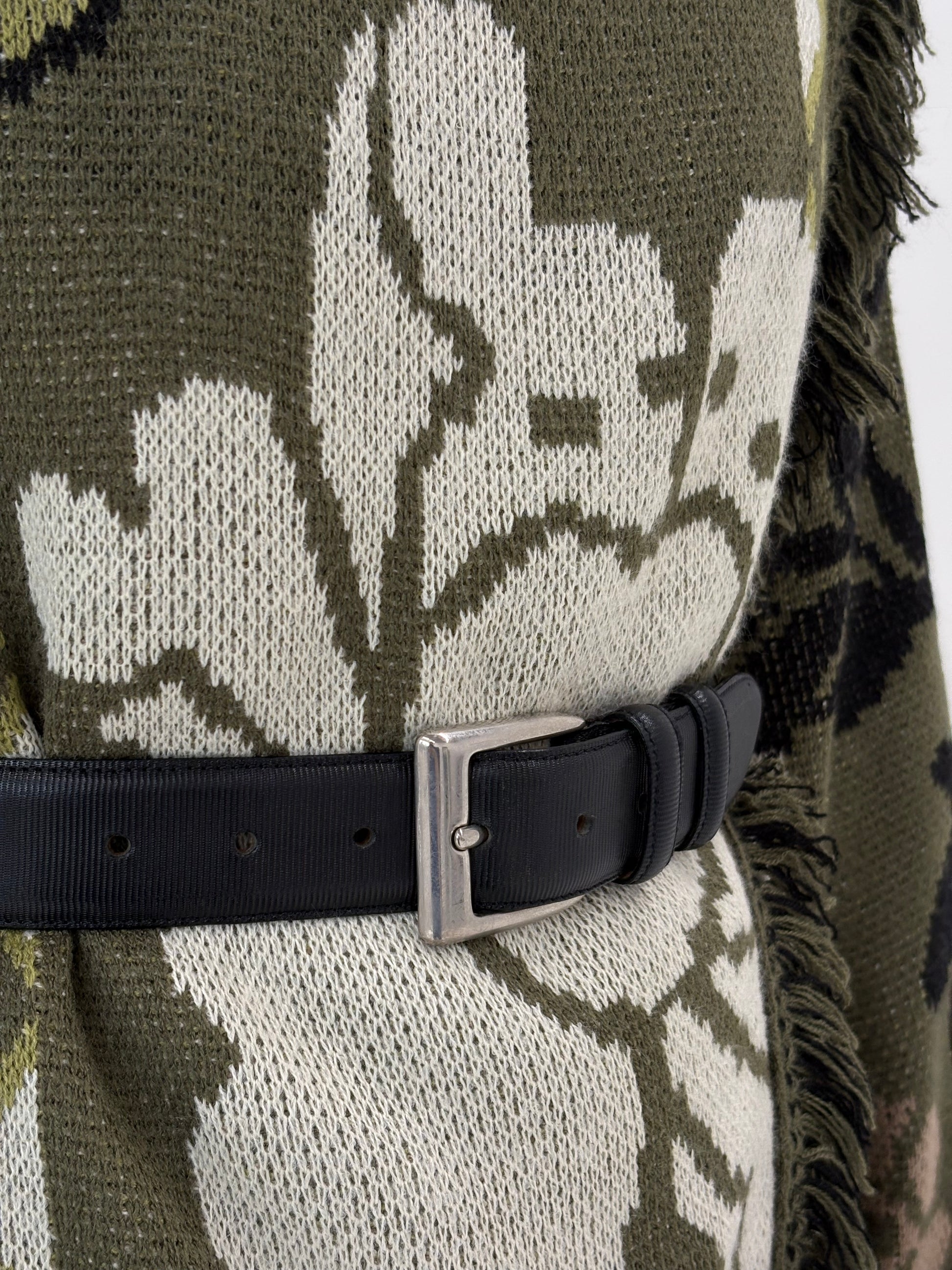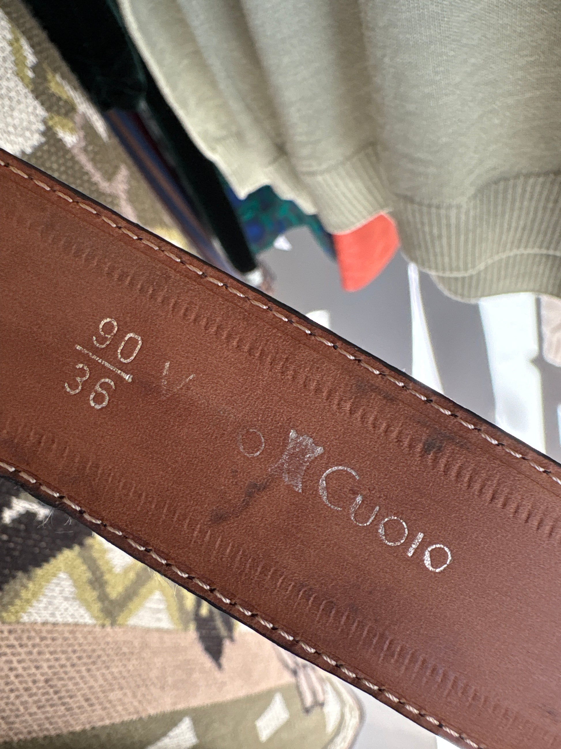 Curea italiană din piele naturală groasă cu feronerie argintie