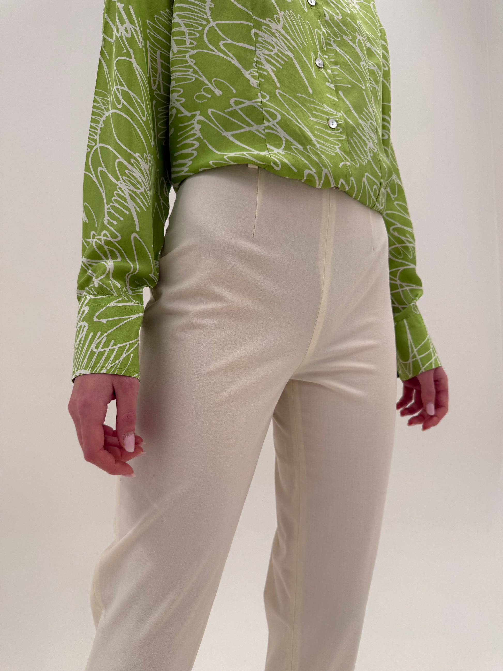 Pantaloni off white tigareta cu talie ultra înaltă tall din lana extrafina
