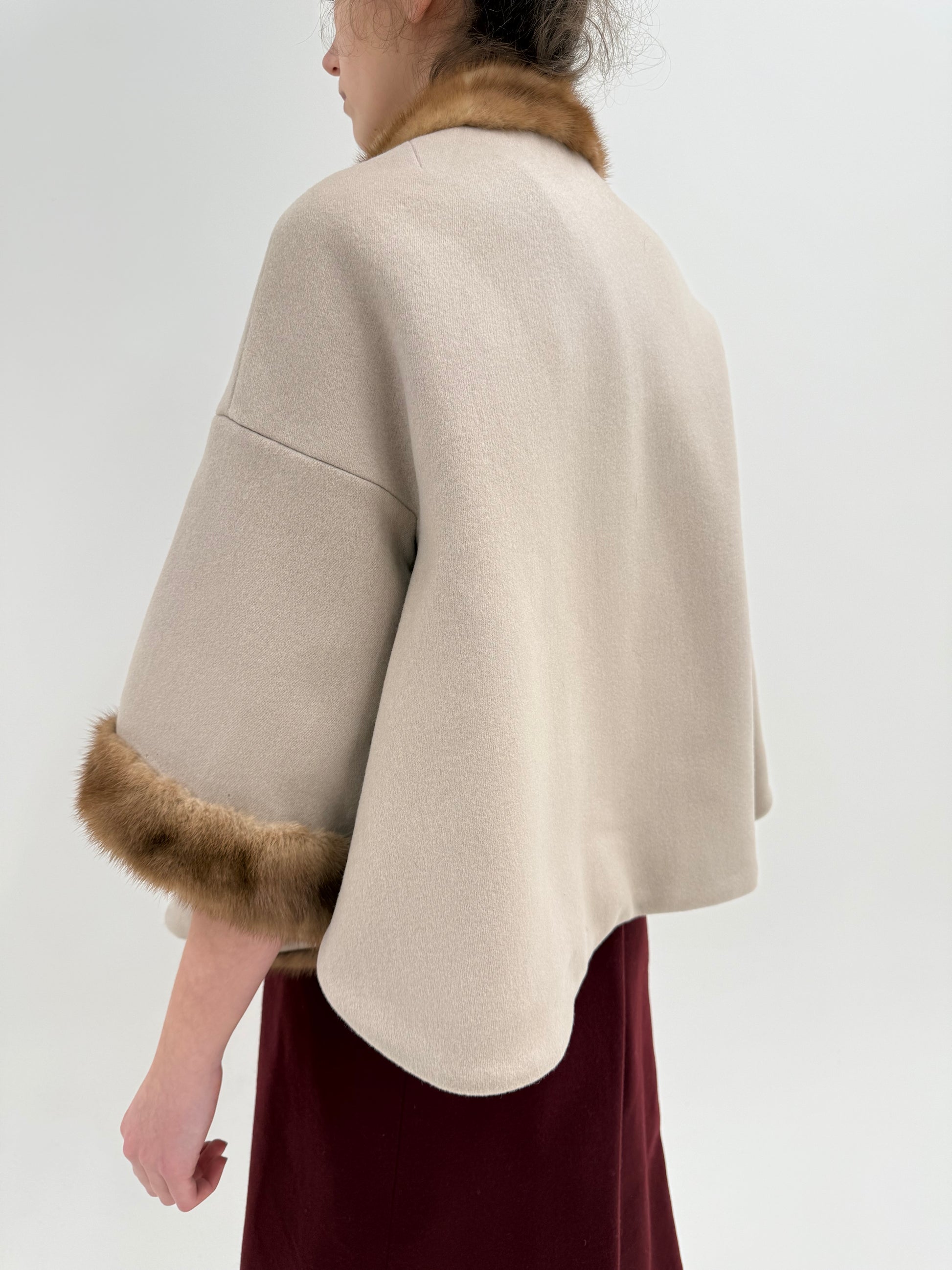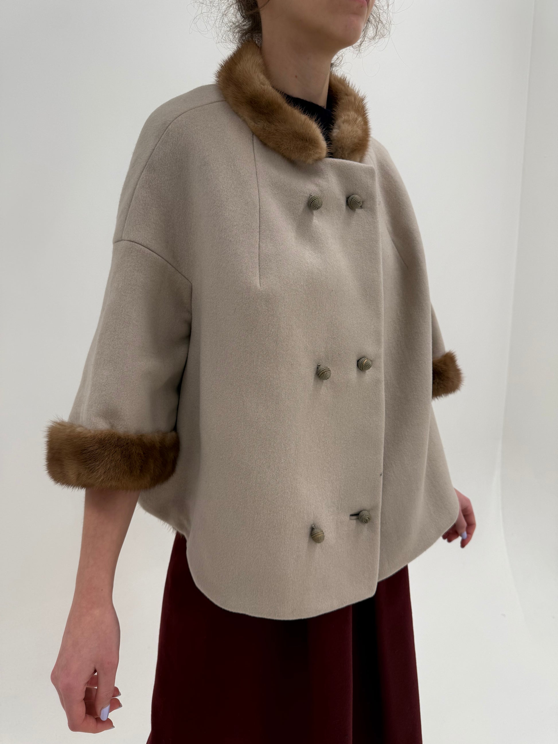 Jacheta tip cap mid century old vinatge din lana worsted cu blană de nurcă