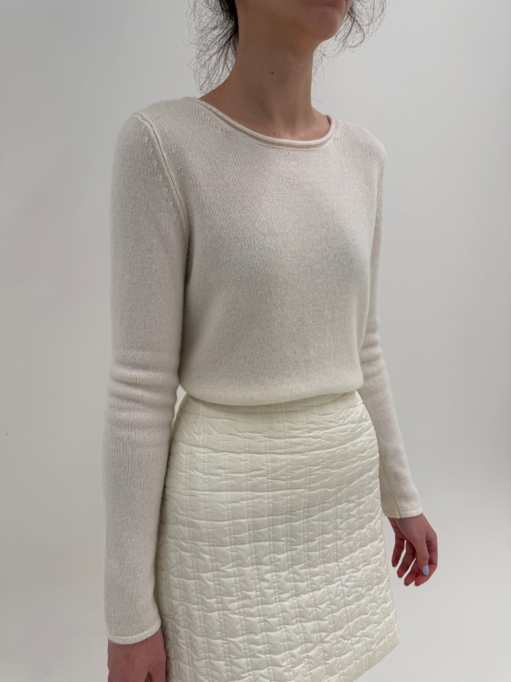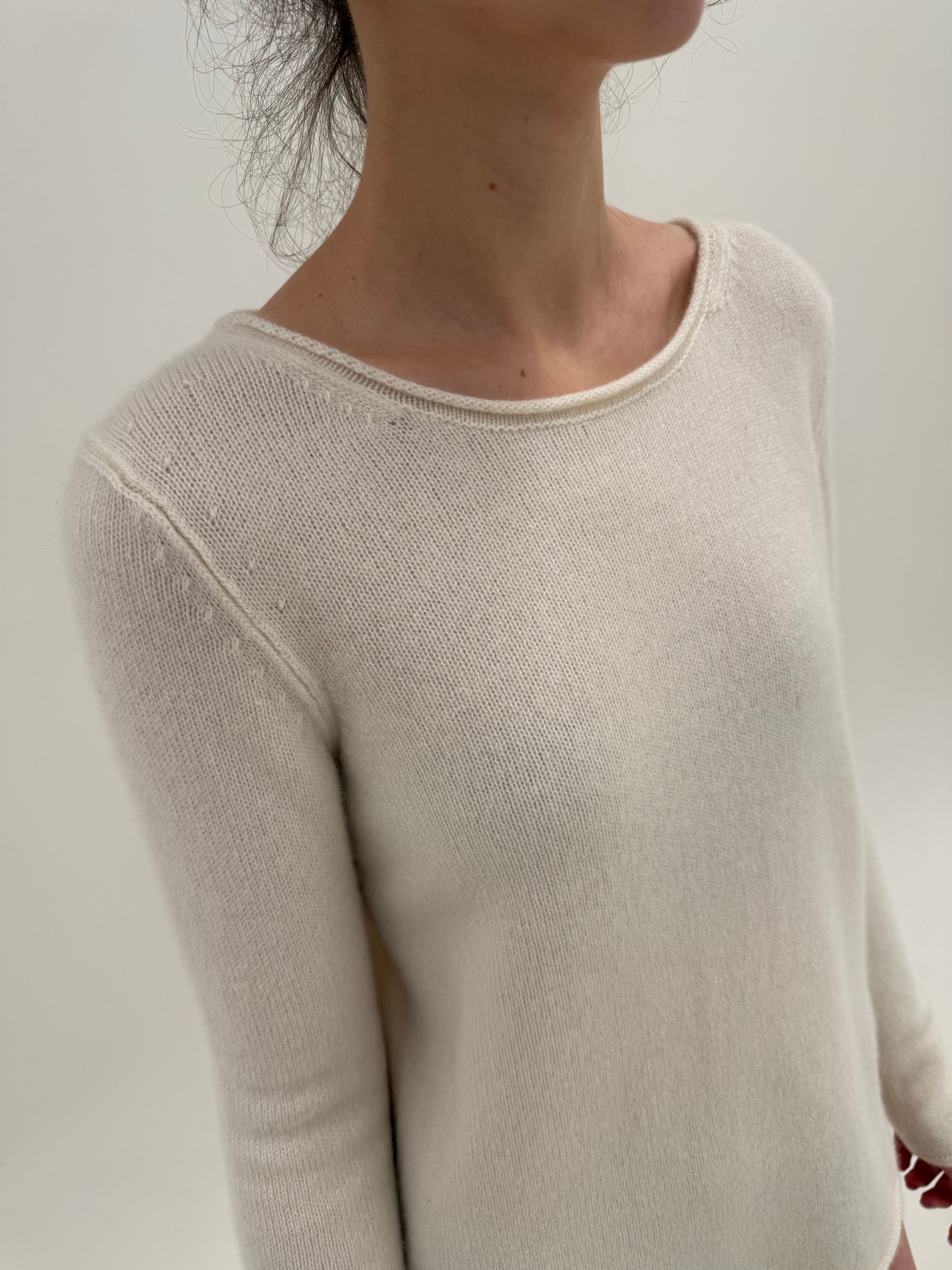 Pulover butter white din cașmir multiply cu decolteu bărcuță