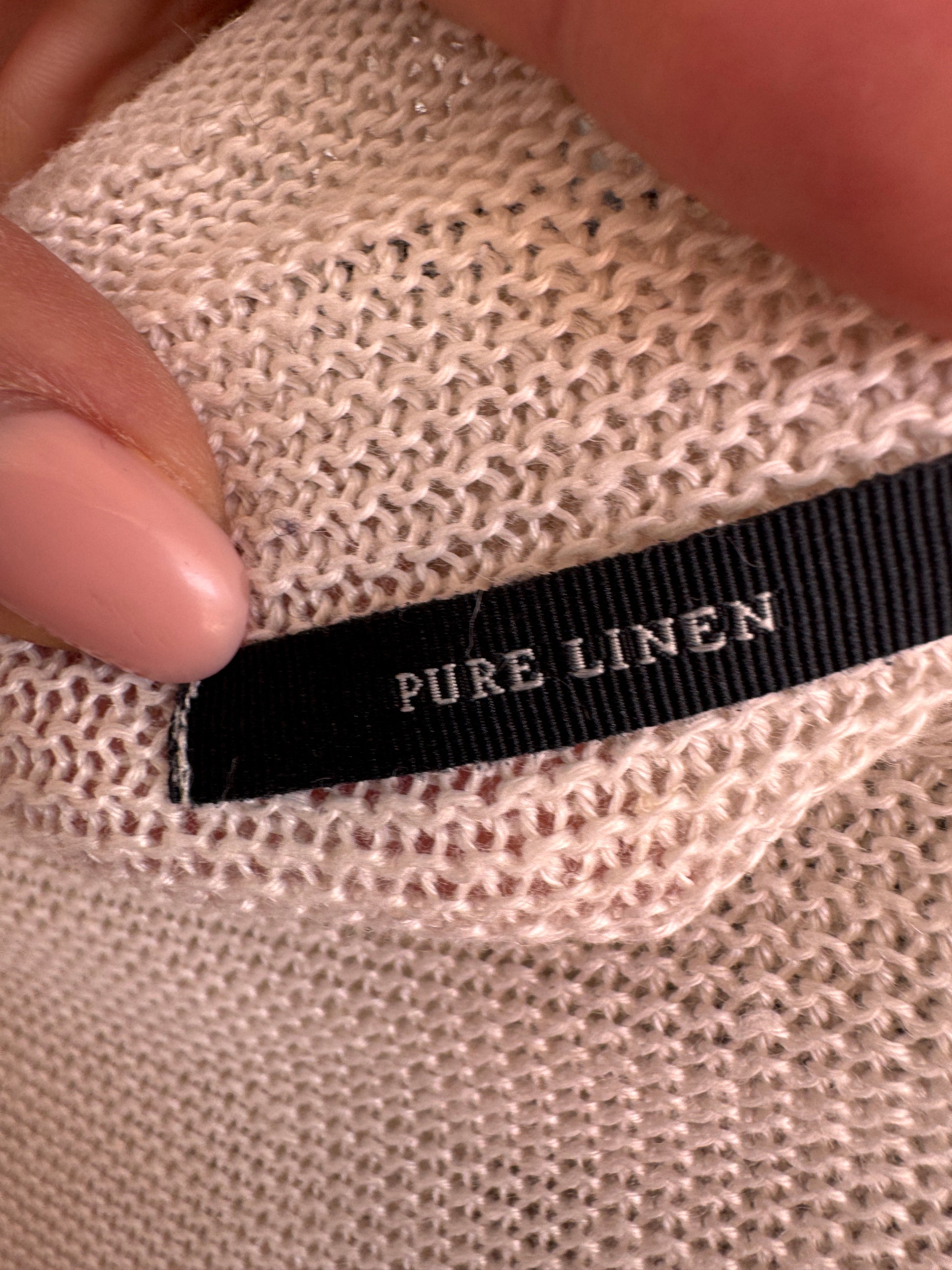 Puloveras off white cu decolteu bărcuța din tricot de in pur