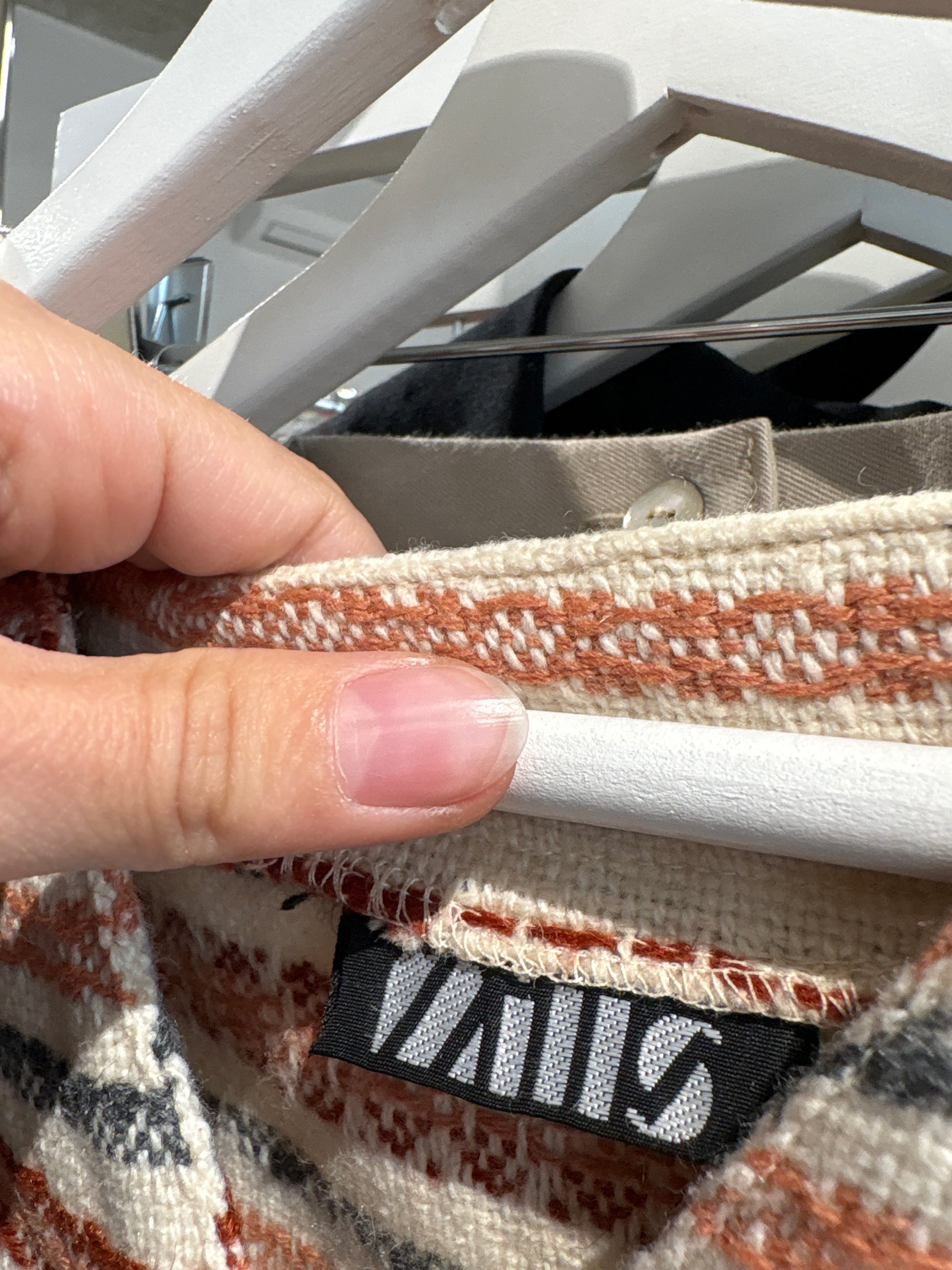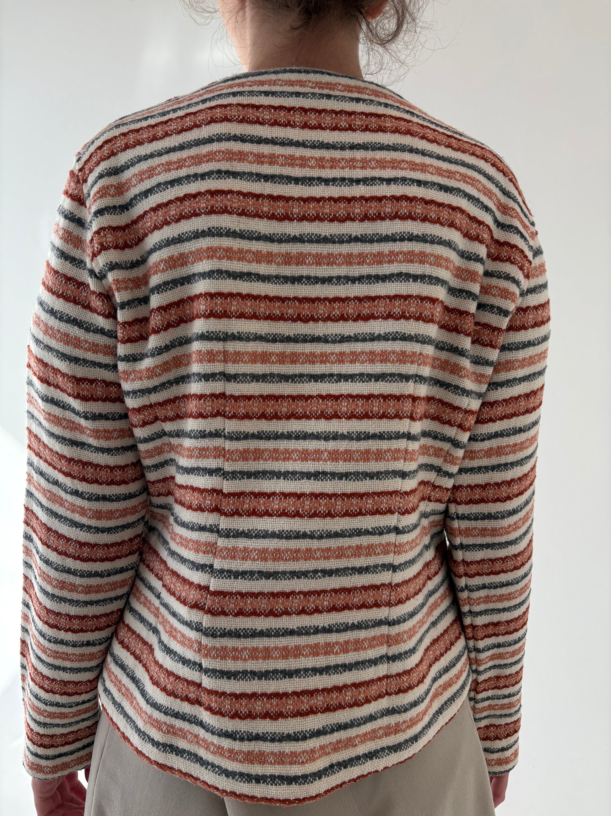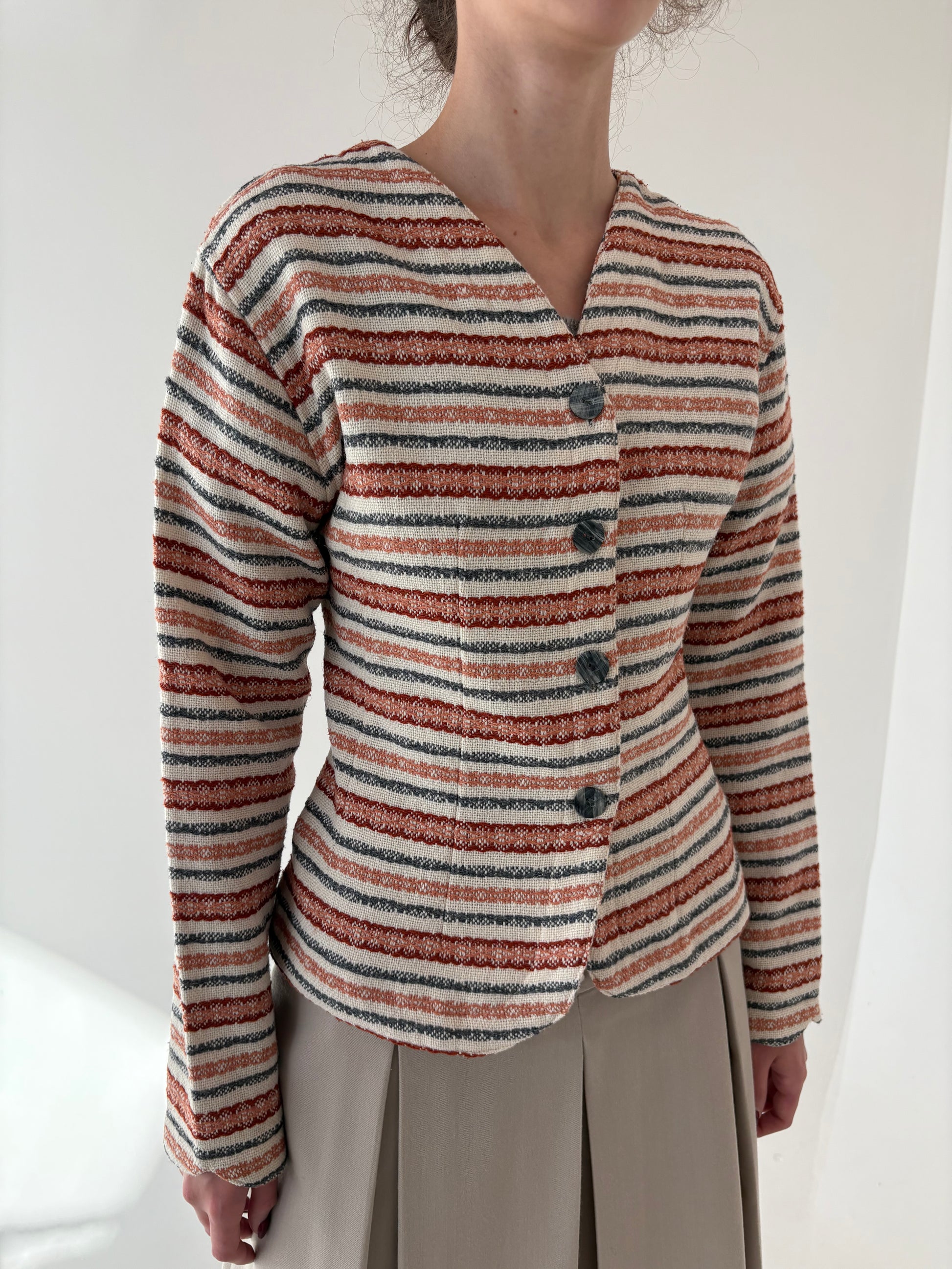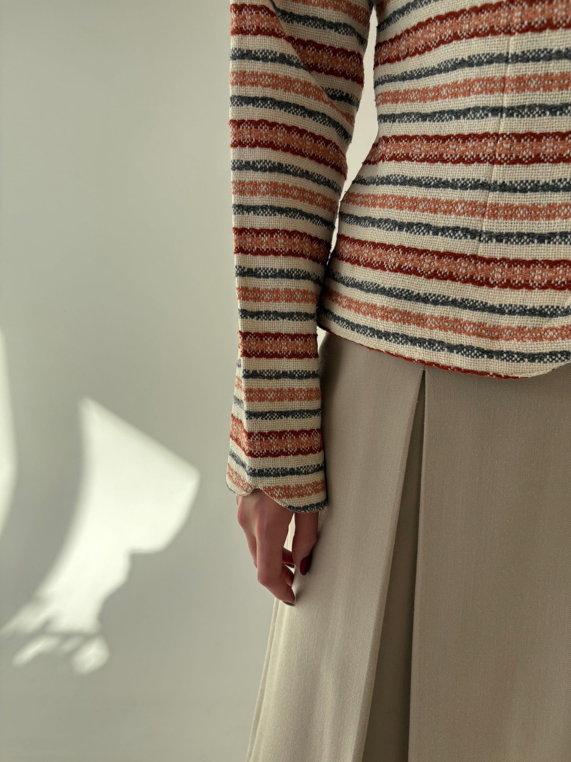 Sacou cambrat butter nude cu dungi din stofă plină de lana texturată ca o pânză