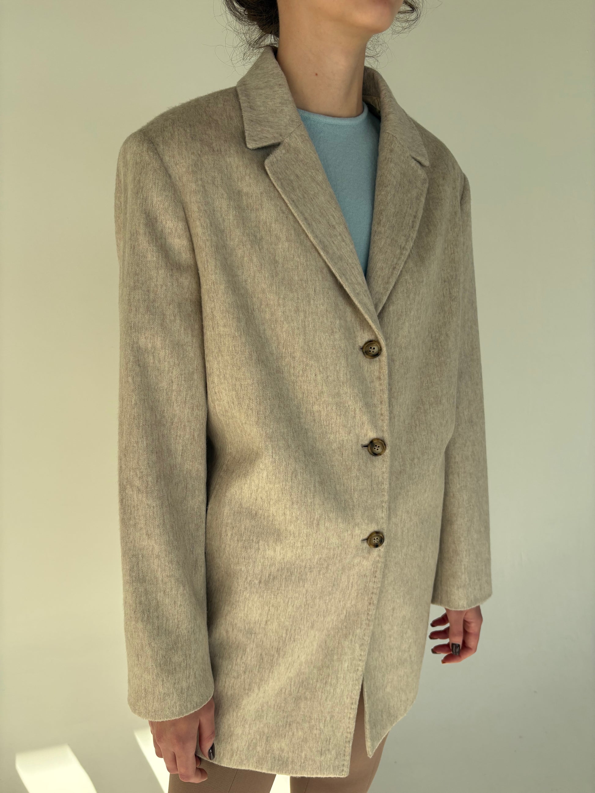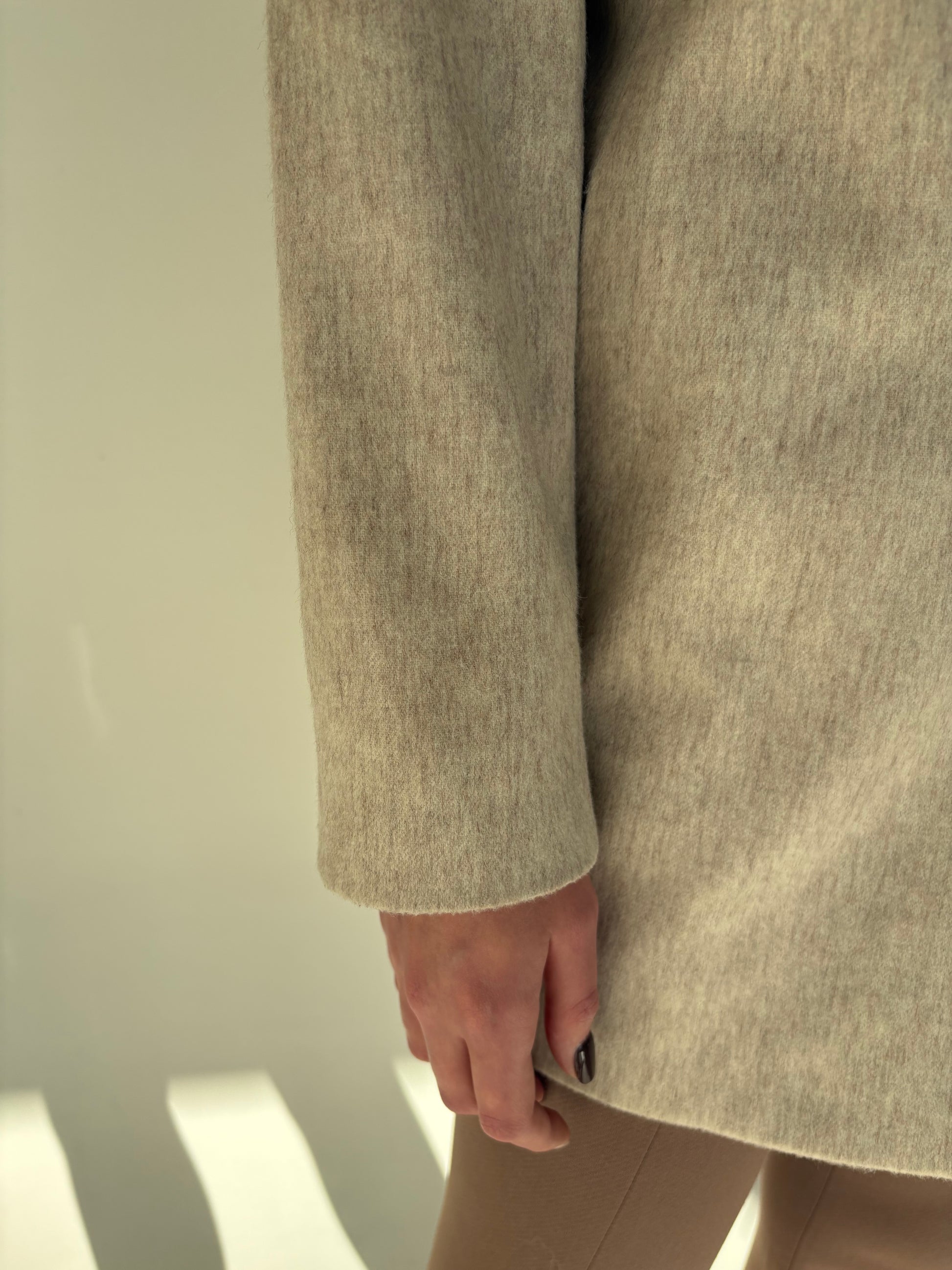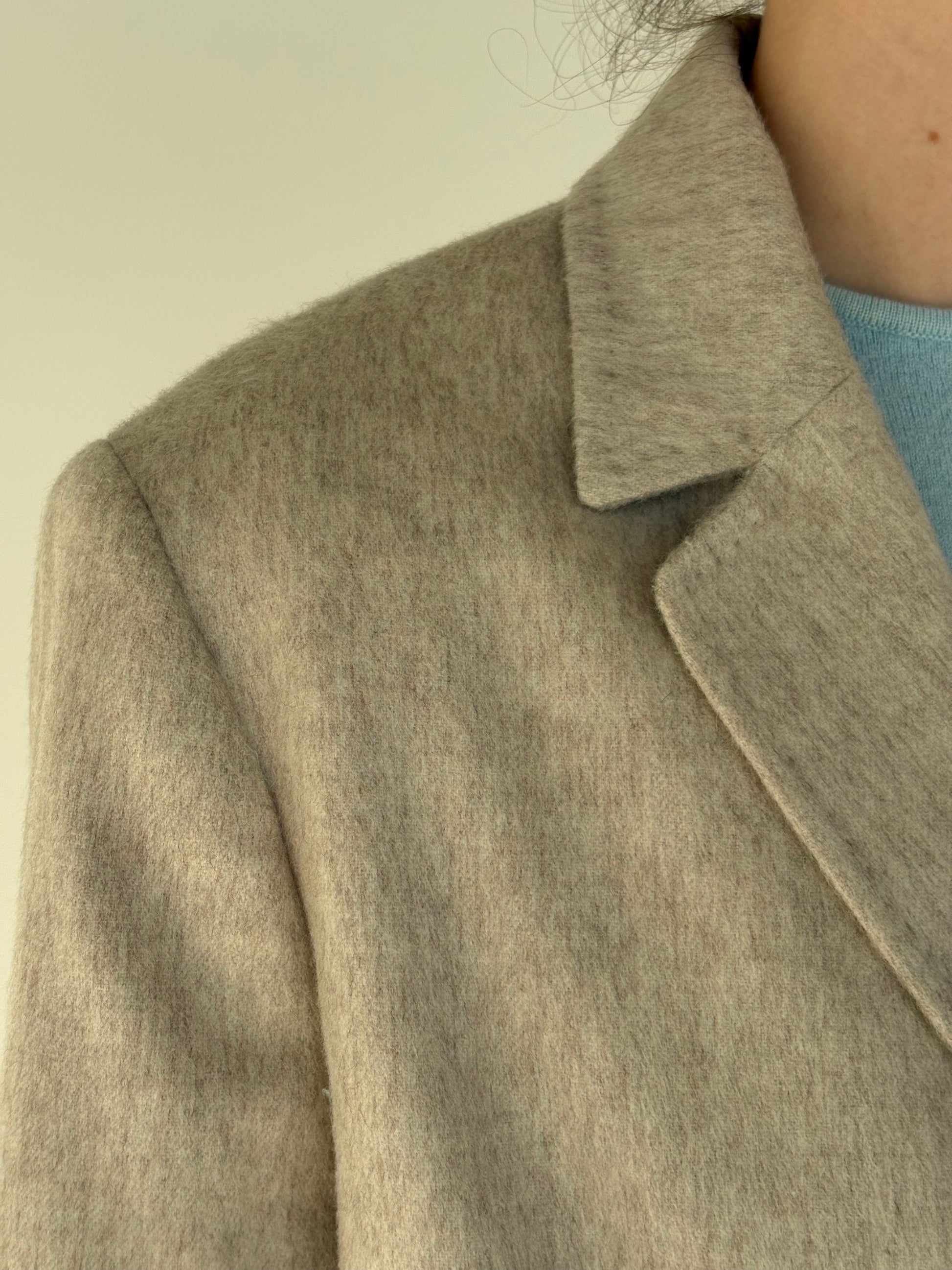 Pardesiu italian light nude din stofă excepțională de lana cu aspect ușor de blăniță
